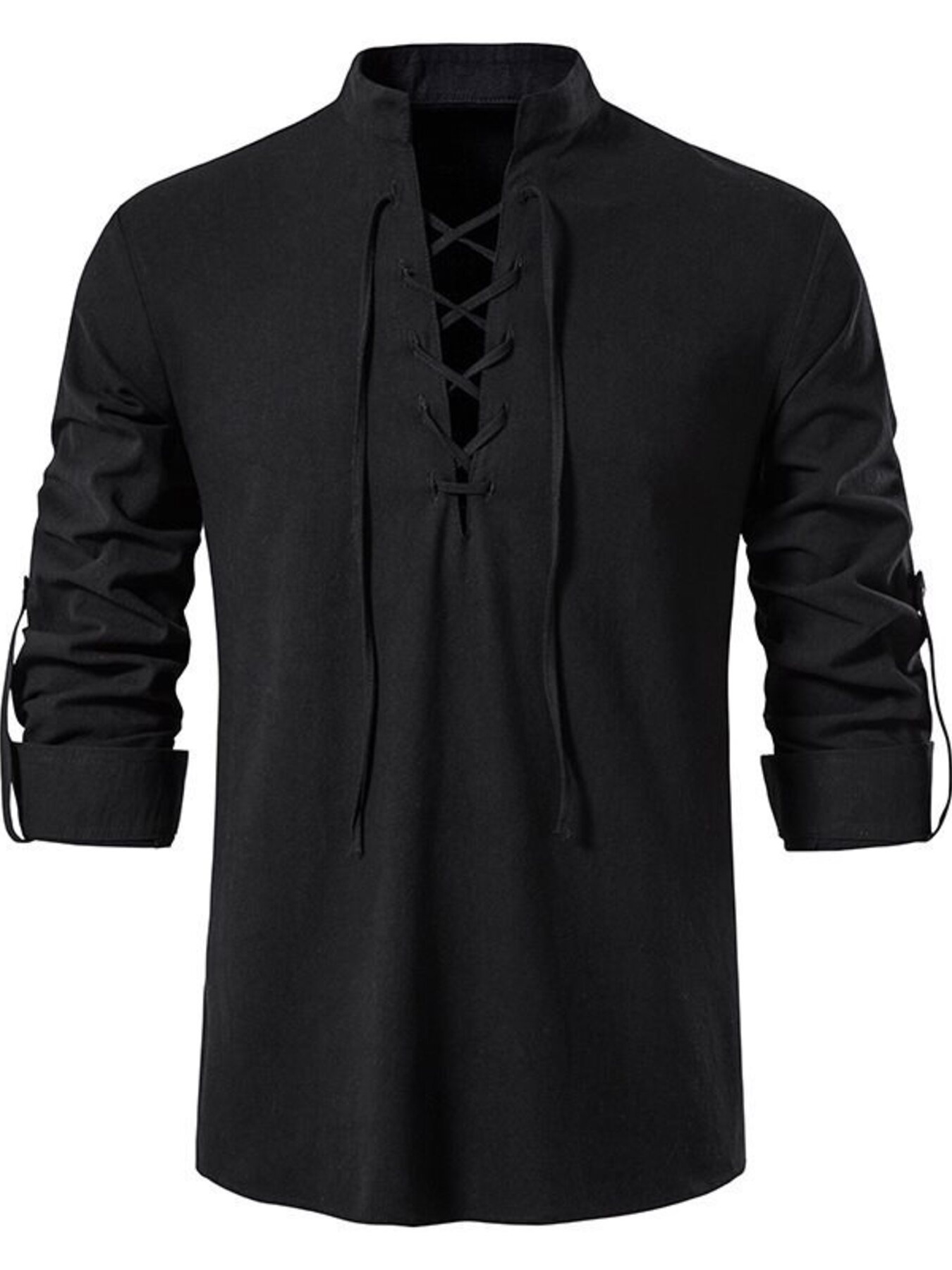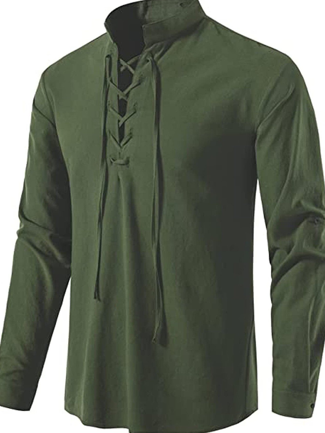 Men's Full Size Casual Lace-Up Long Sleeve Shirt Plus Size