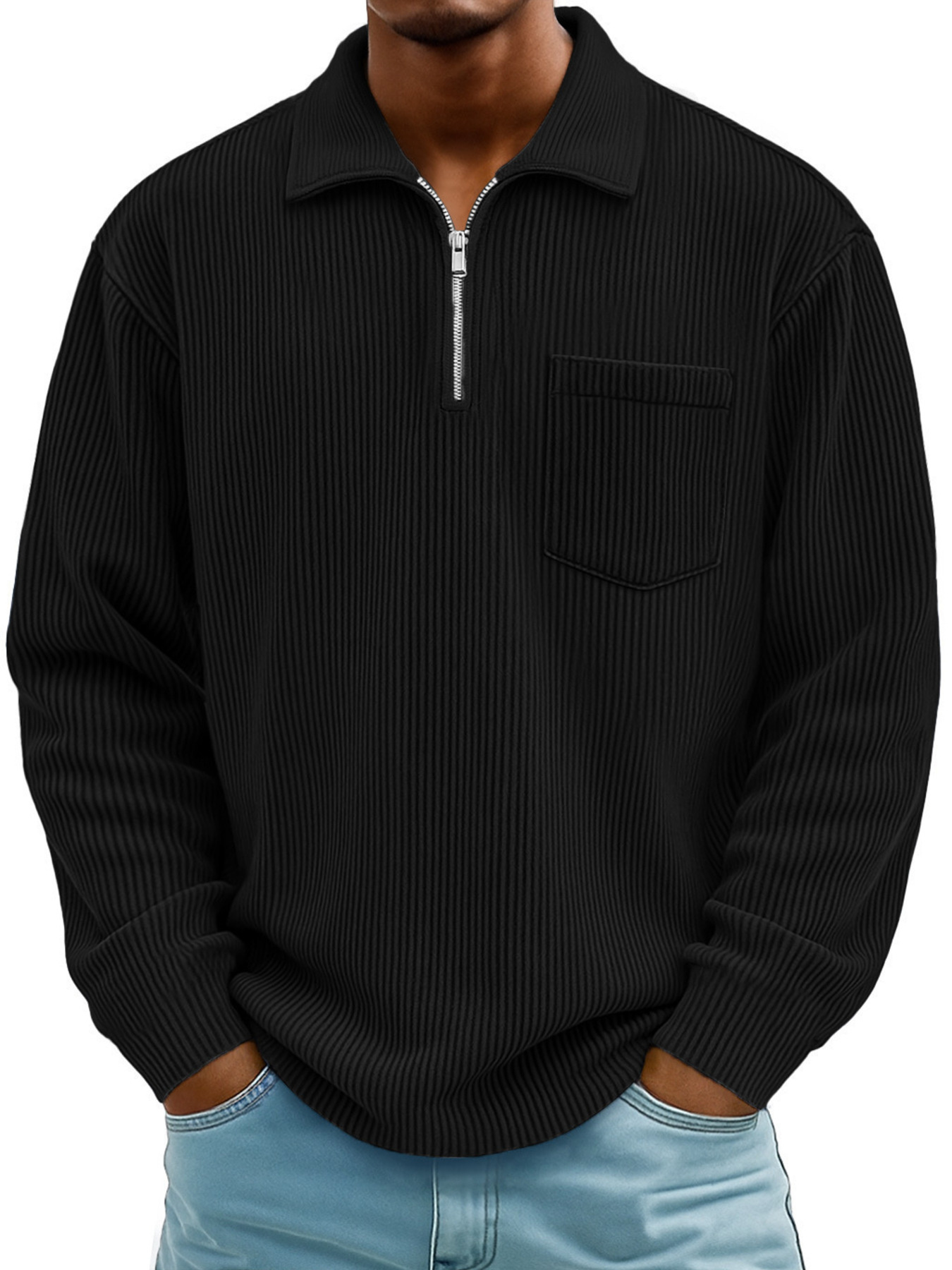 Men's Full Size Corduroy Half Zip Casual Top Plus Size