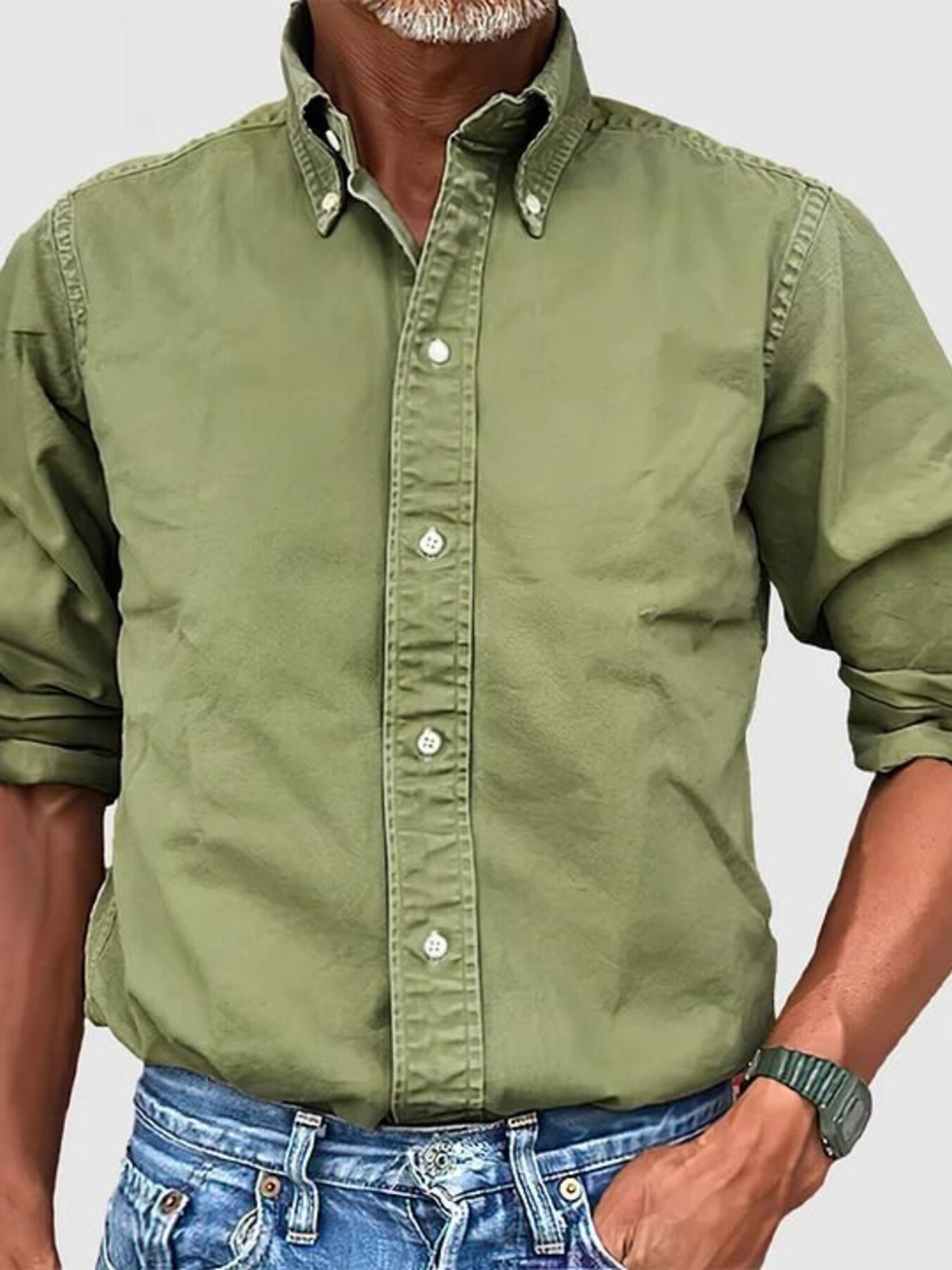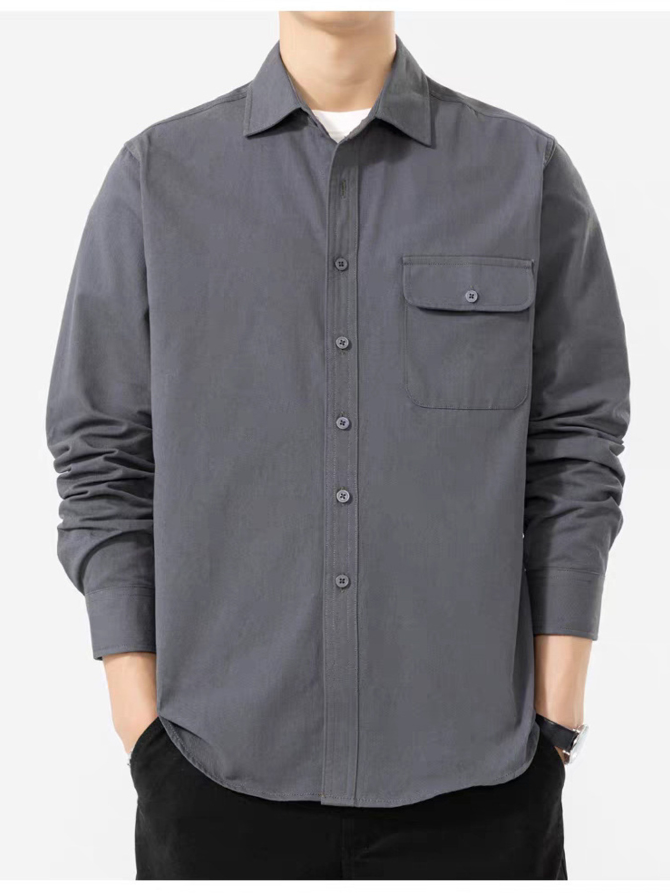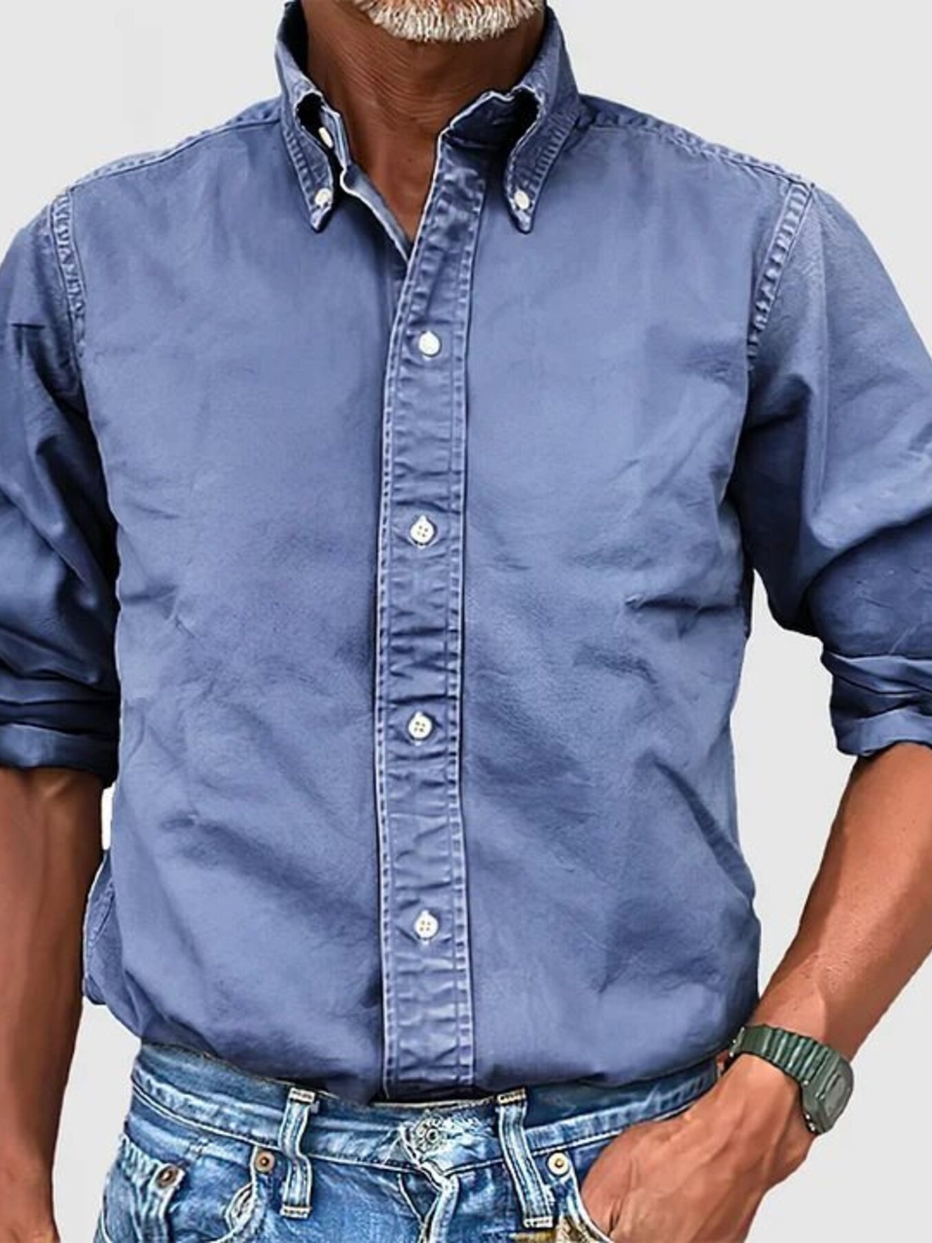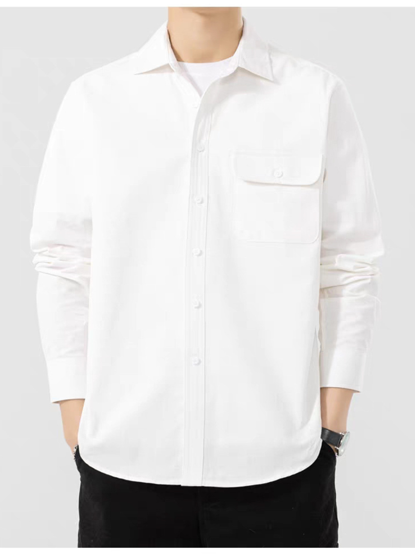 Men's Plus Size Casual Solid Color Long Sleeve Shirt