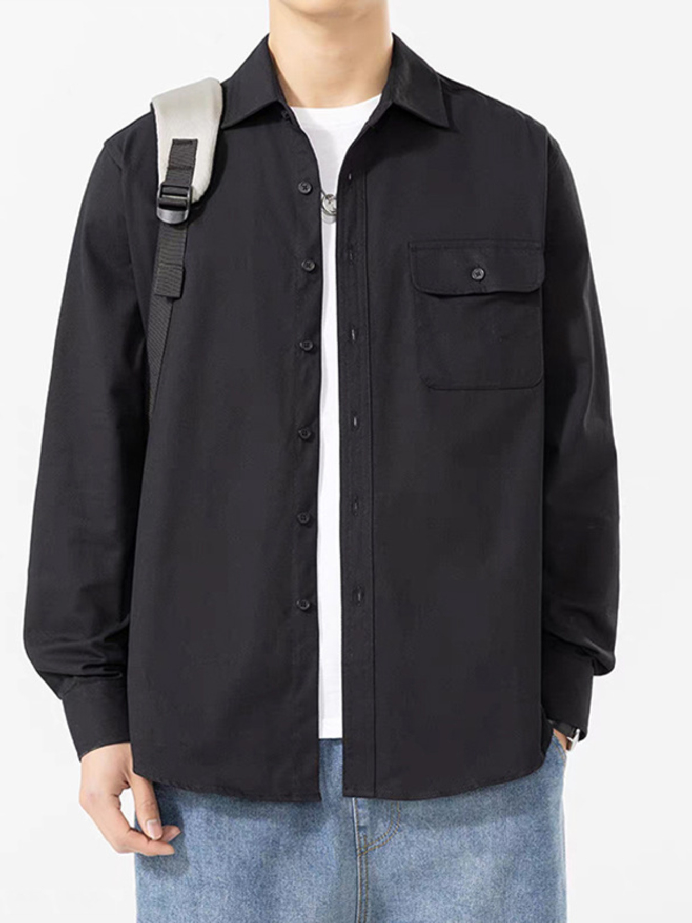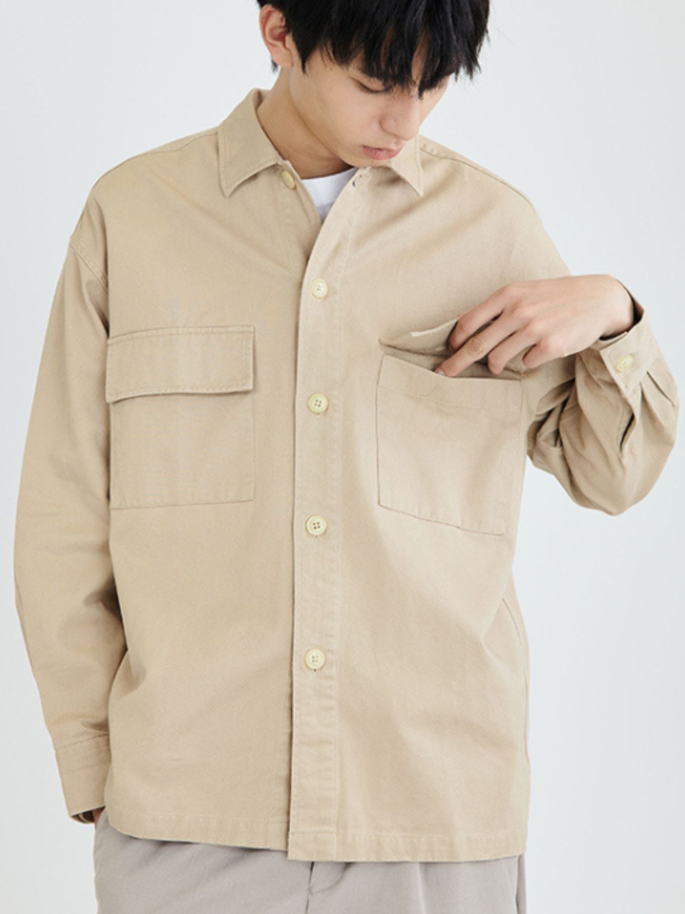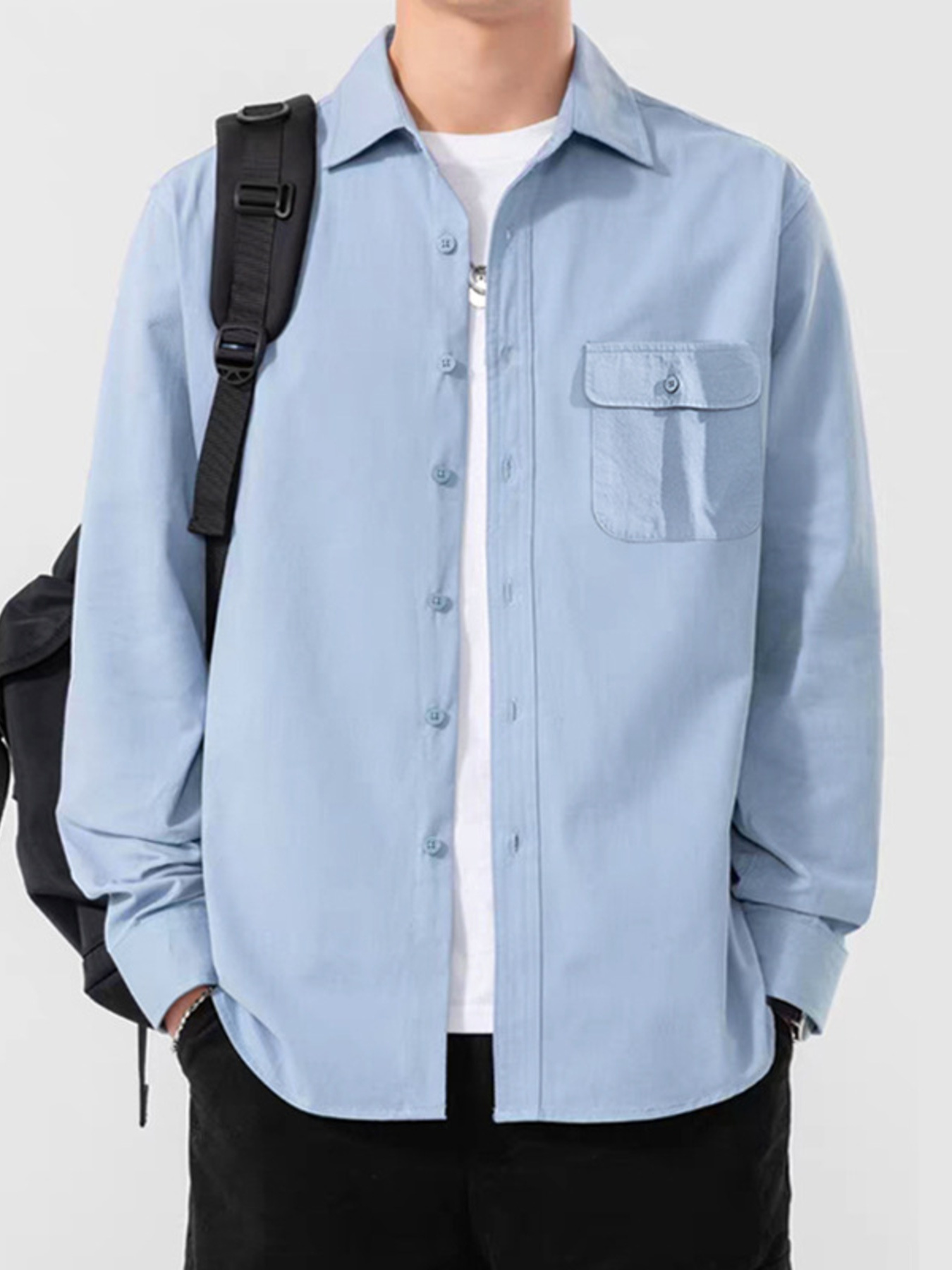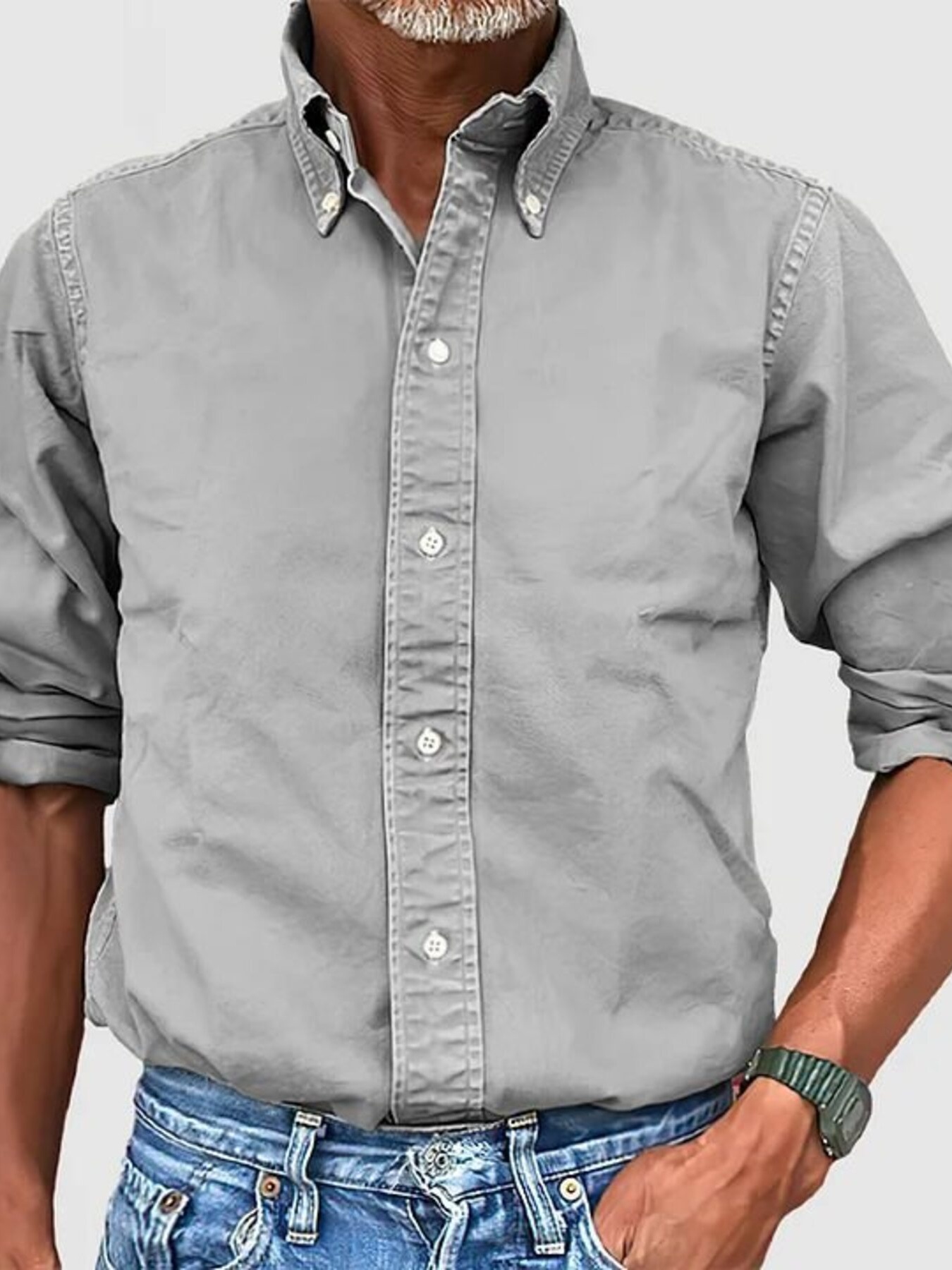 Men's Plus Size Casual Solid Color Long Sleeve Shirt