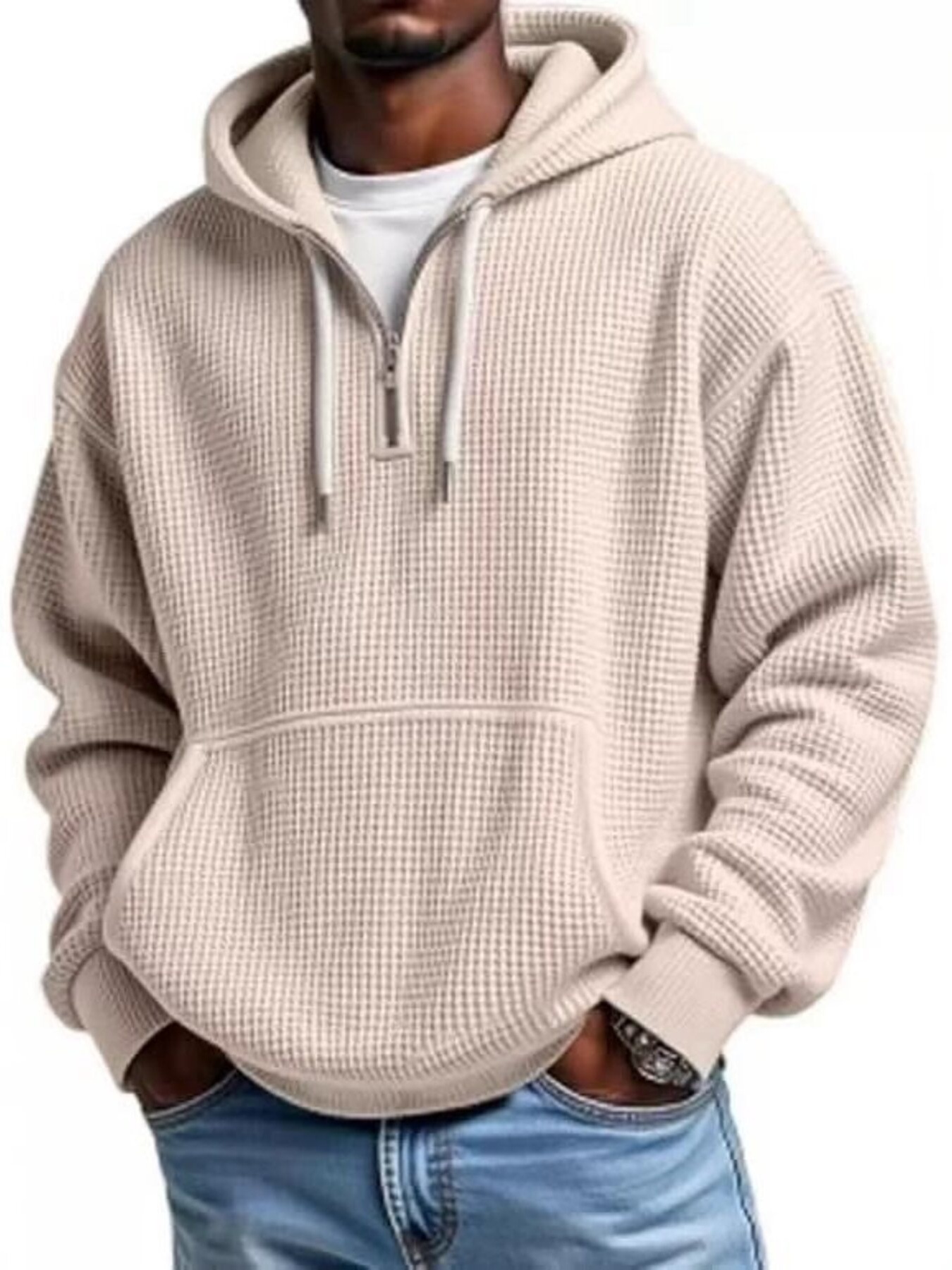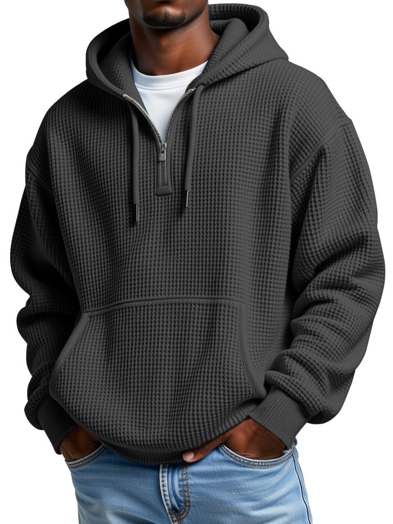 Men's Full Size Waffle Knit Quarter Zip Hoodie Plus Size