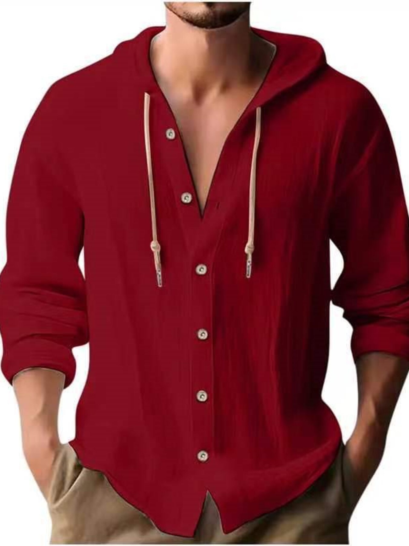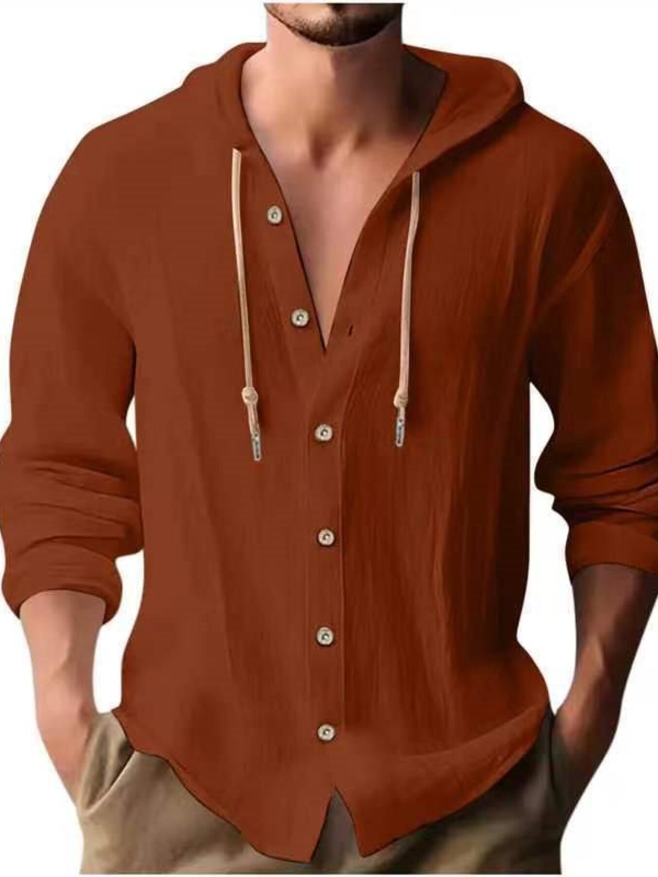Men's Full Size Casual Button-Down Hooded Top Plus Size