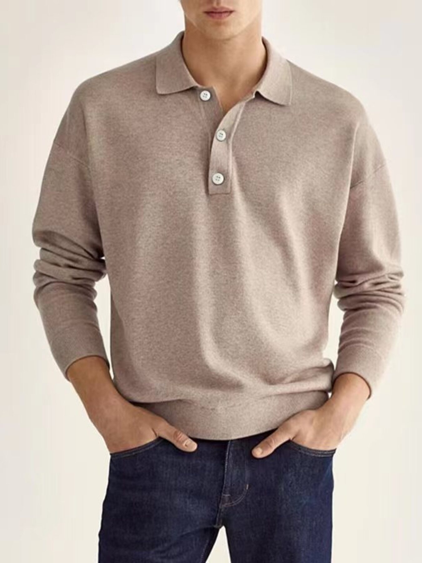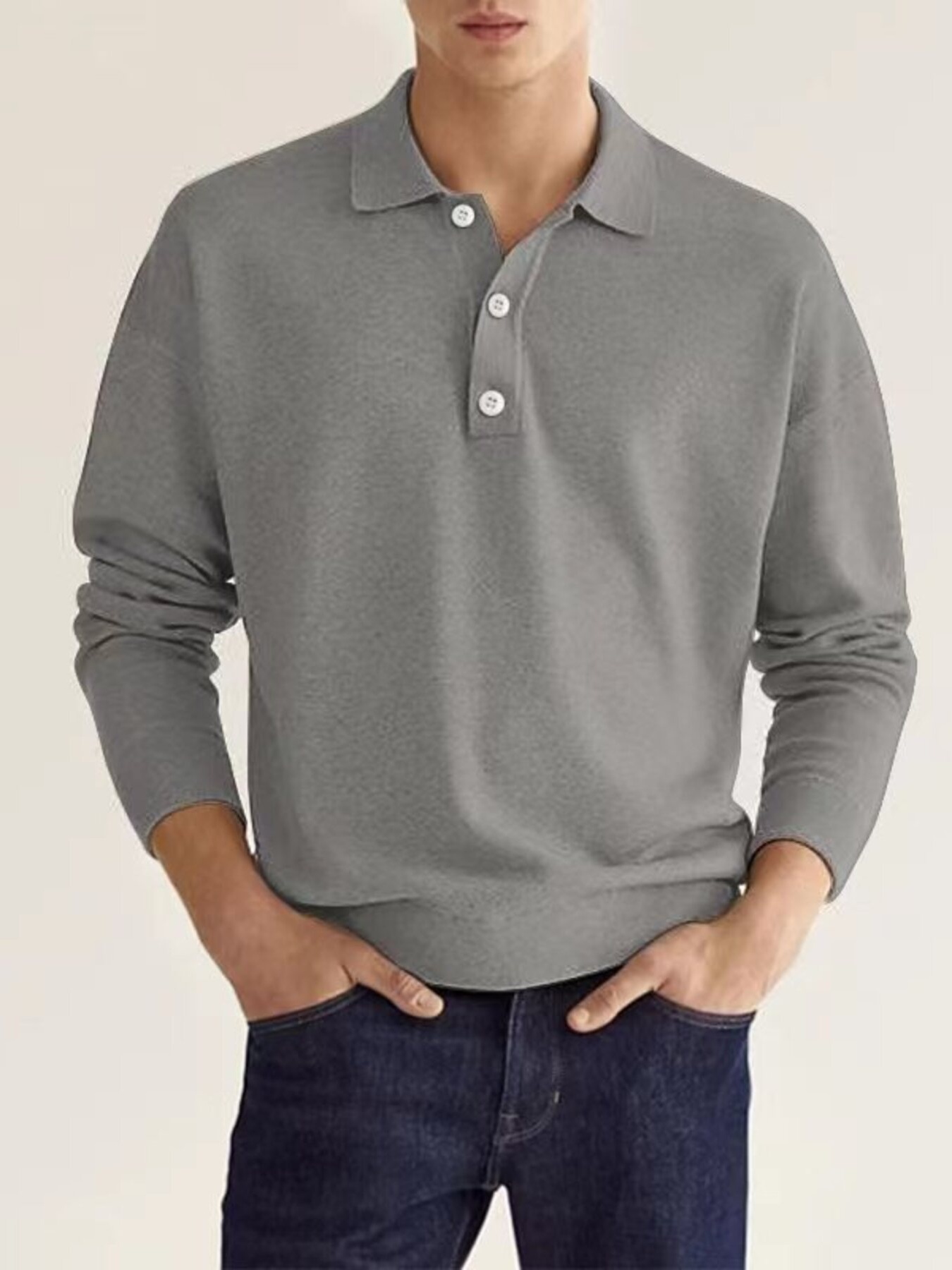 Men's Full Size Vintage Button Detail Long Sleeve Polo Plus Size