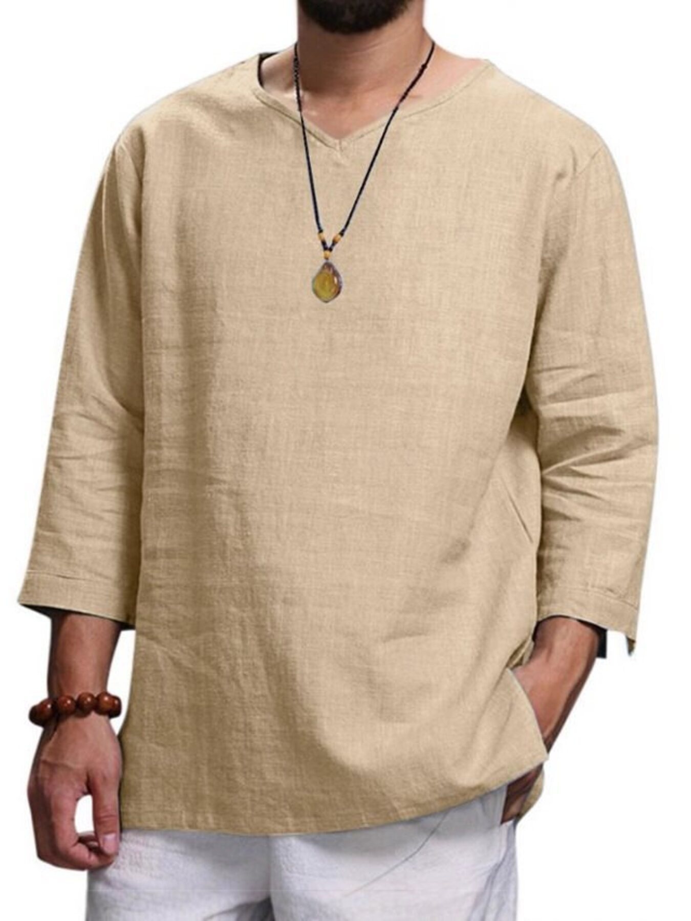 Men's Plus Size Casual Comfortable Fit 3/4 Sleeve Blouse