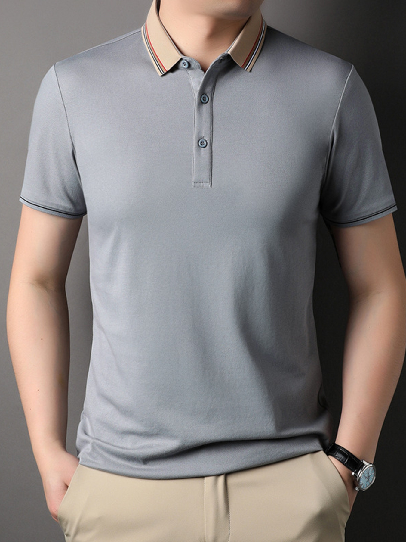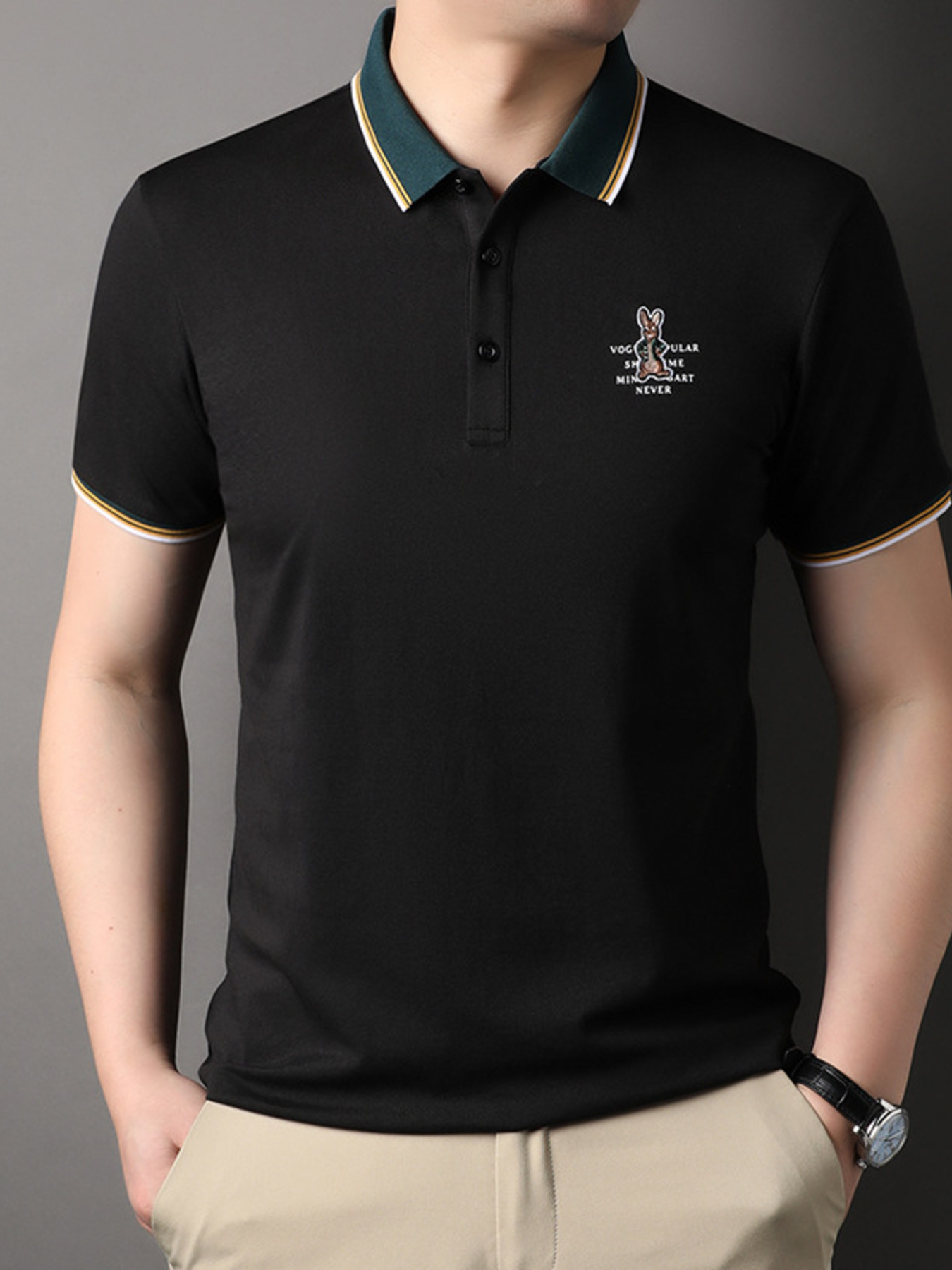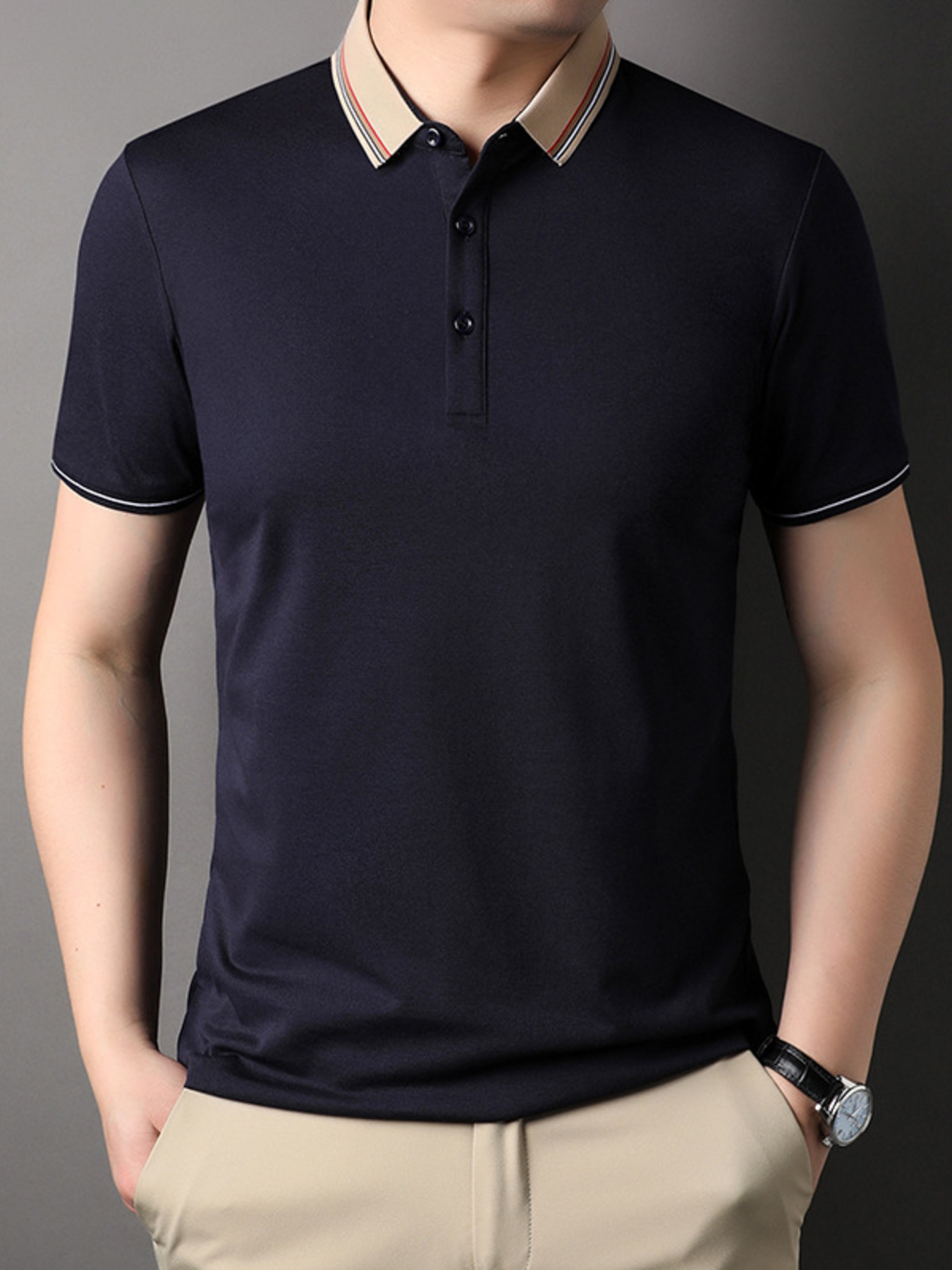 Men's Plus Size Short Sleeve Contrast Collar Polo Shirt