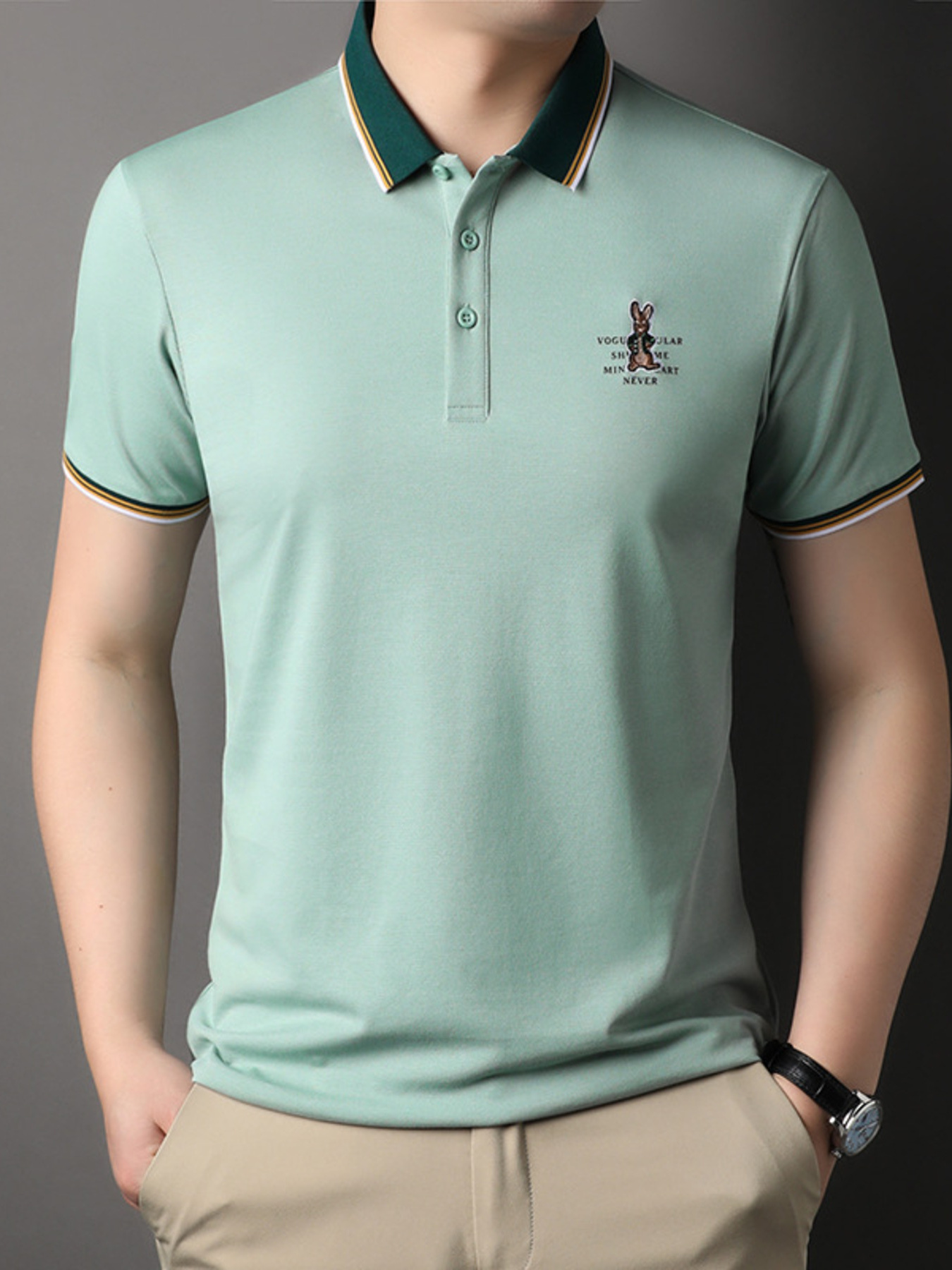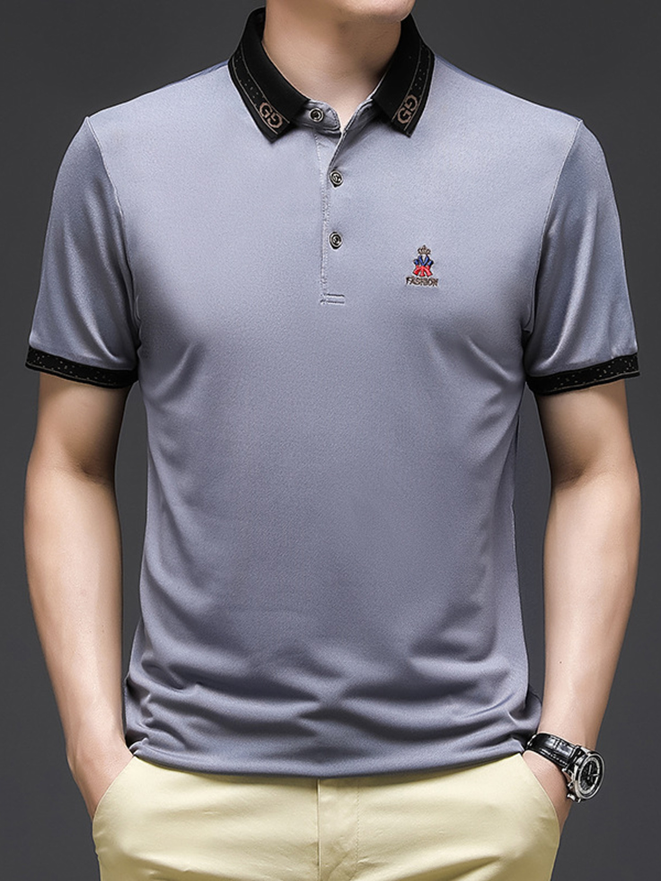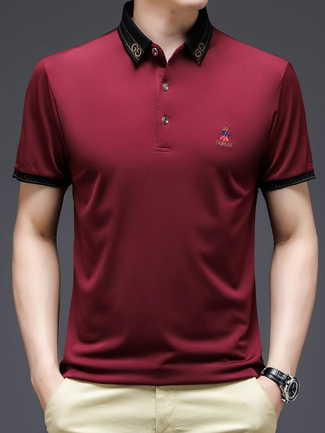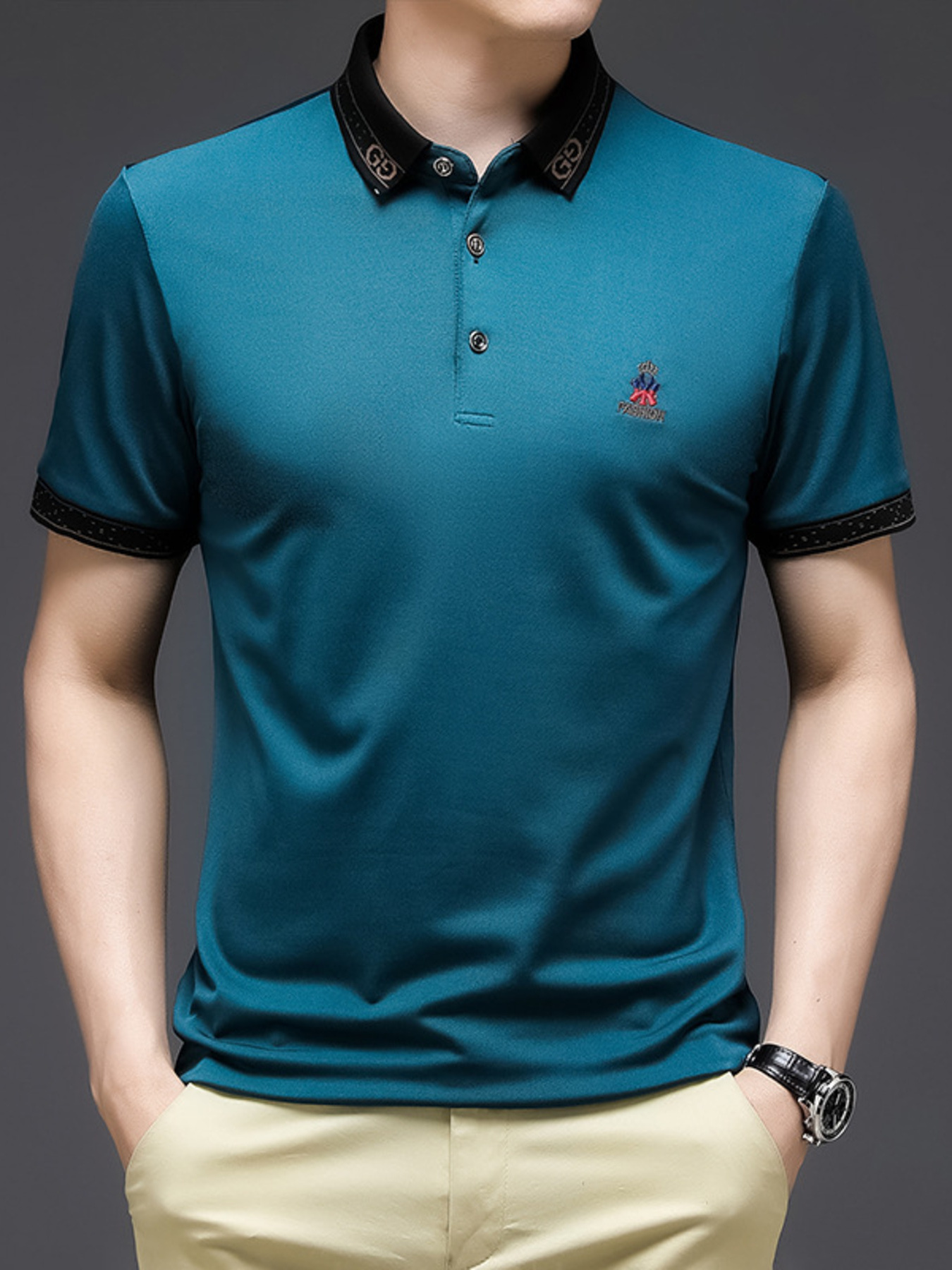 Men's Plus Size Short Sleeve Contrast Collar Polo Shirt