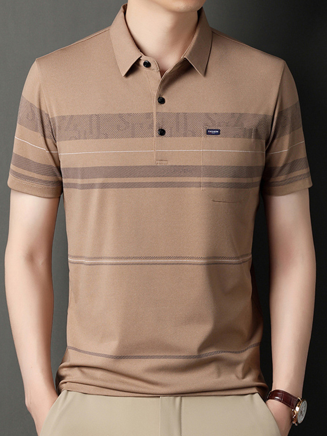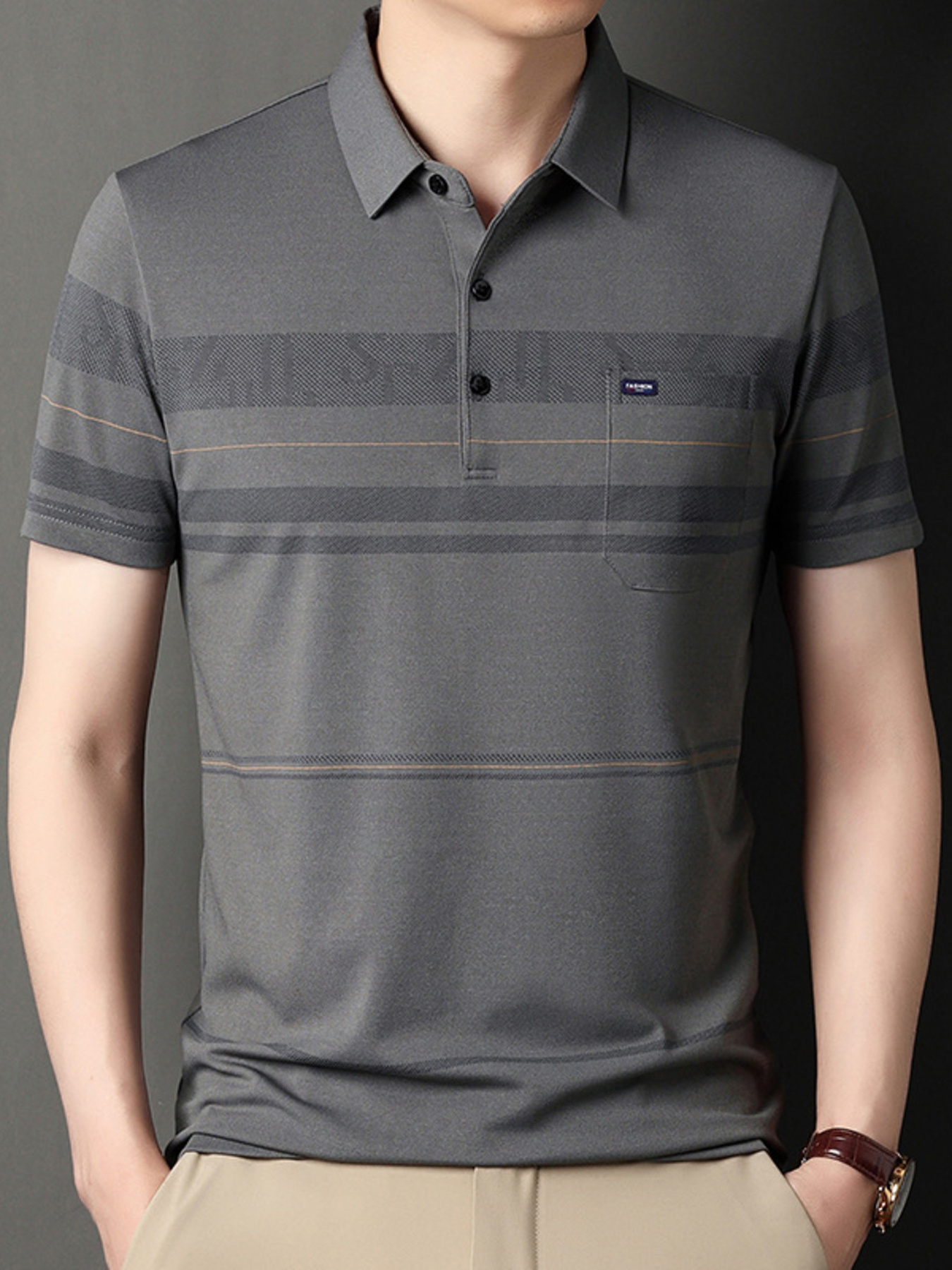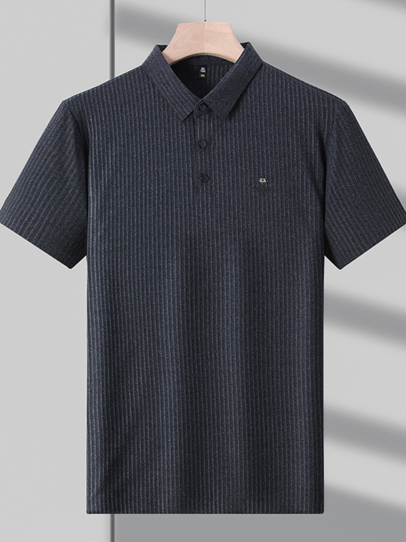 Men's Plus Size Classic Striped Business Casual Polo Shirt