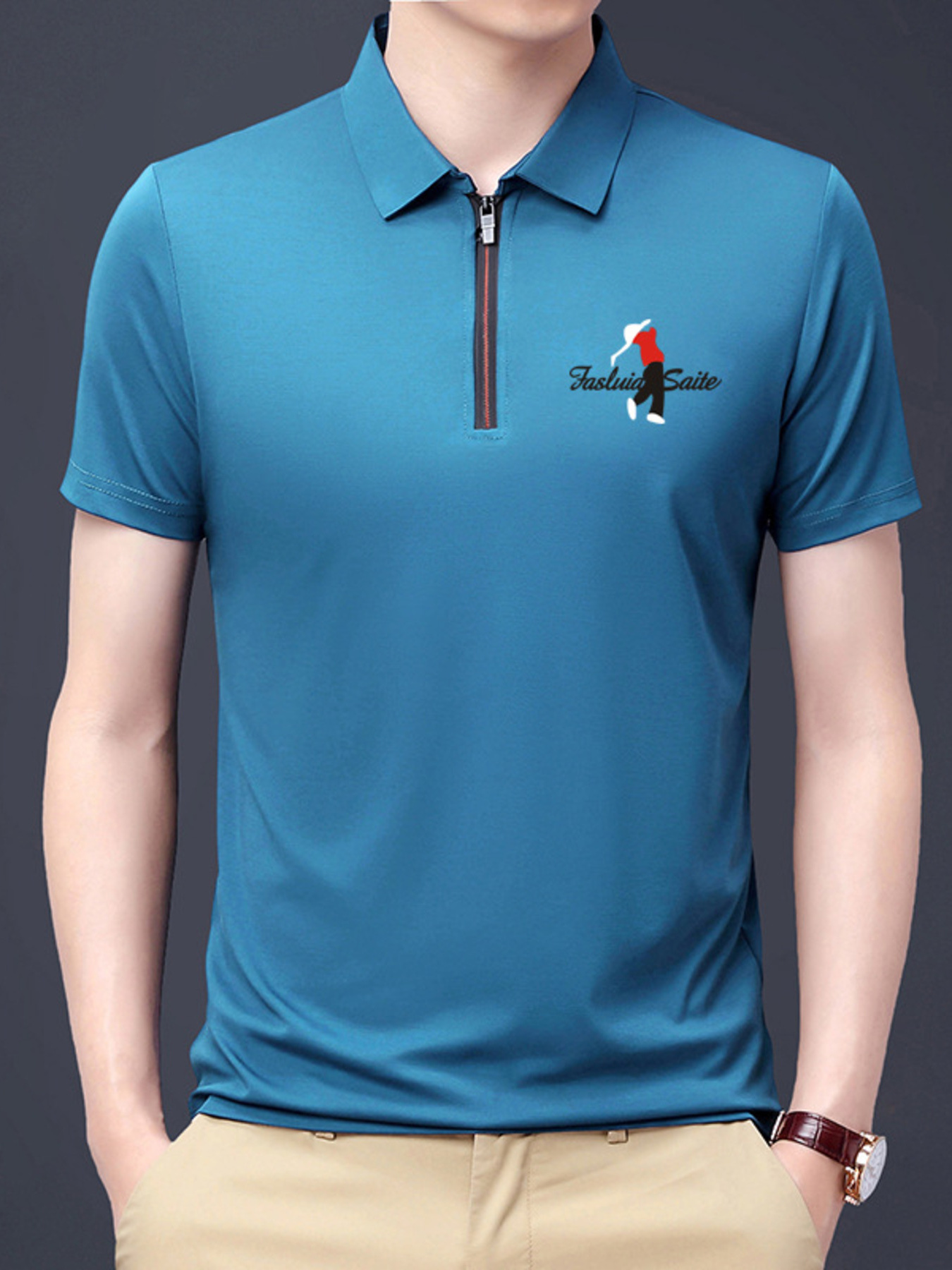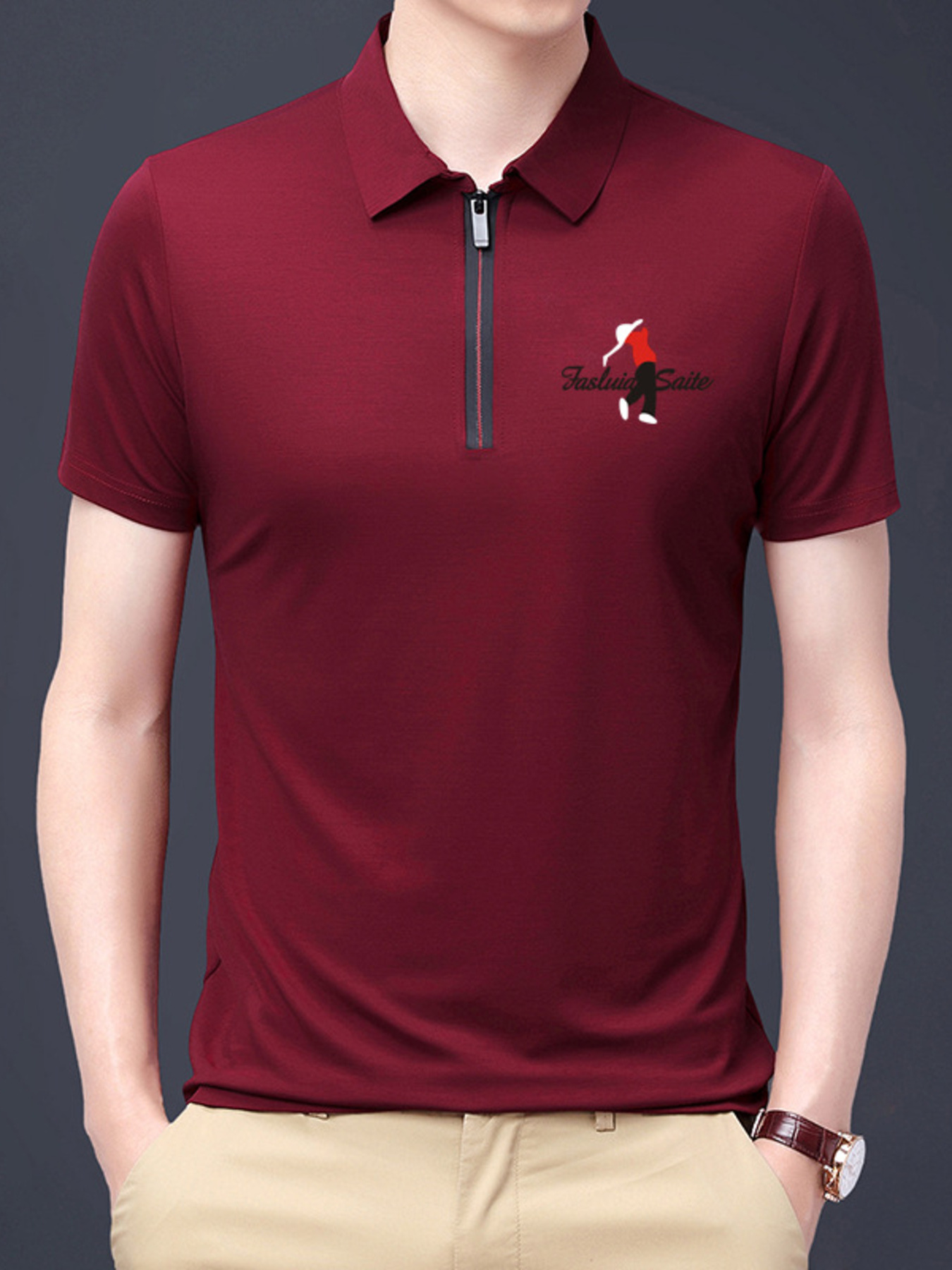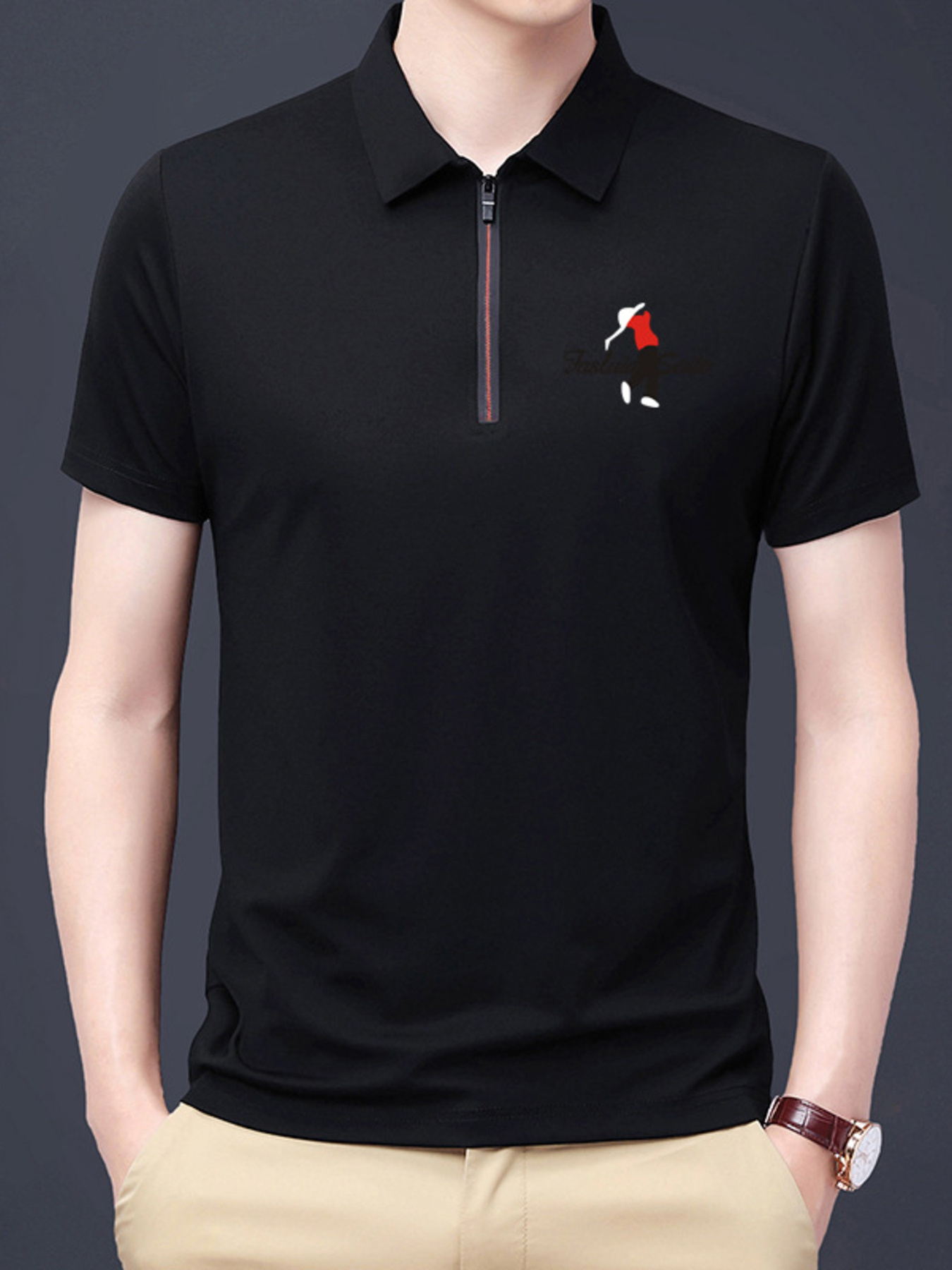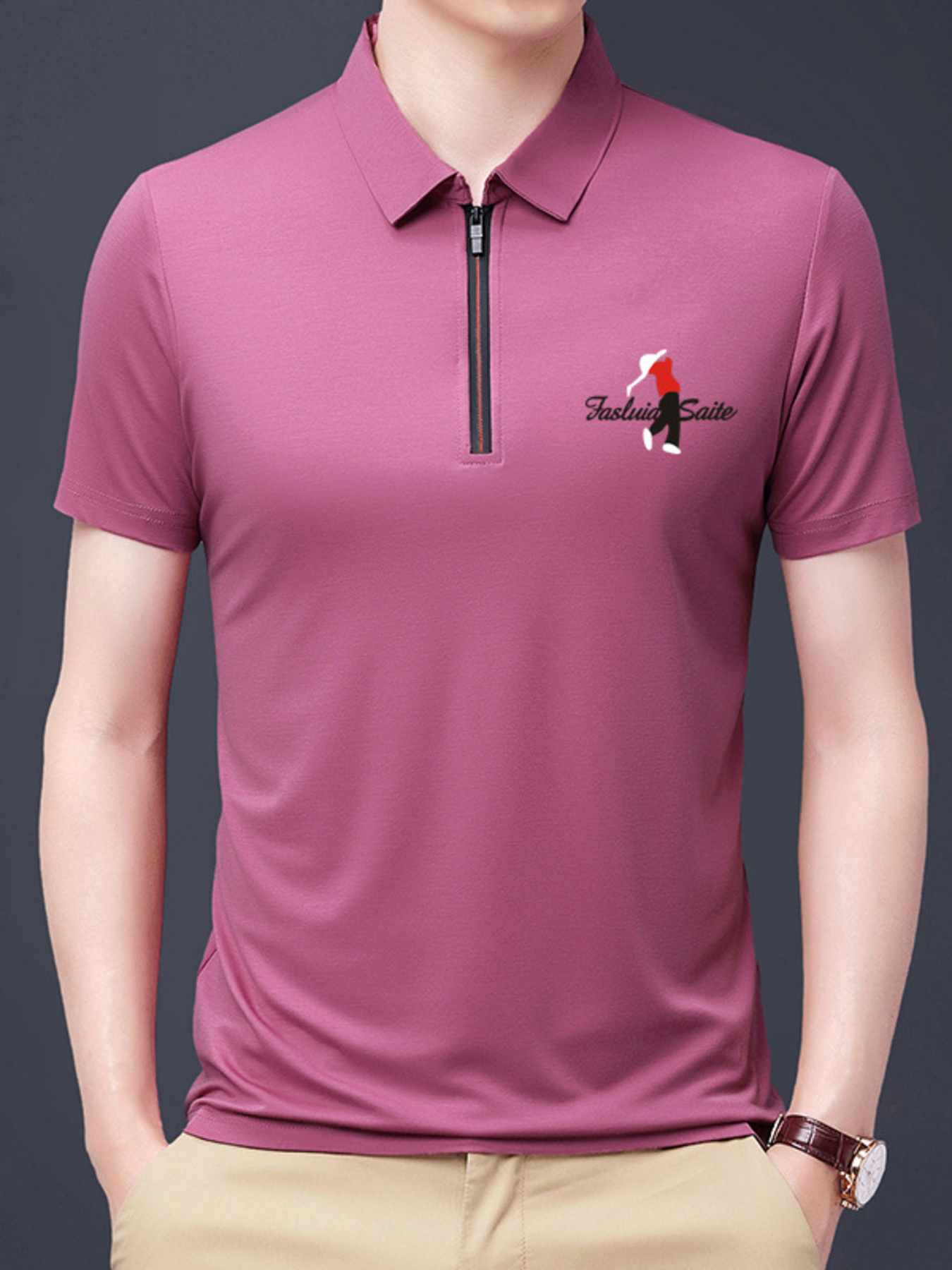 Men's Plus Size Zip Collar Short Sleeve Polo Shirt
