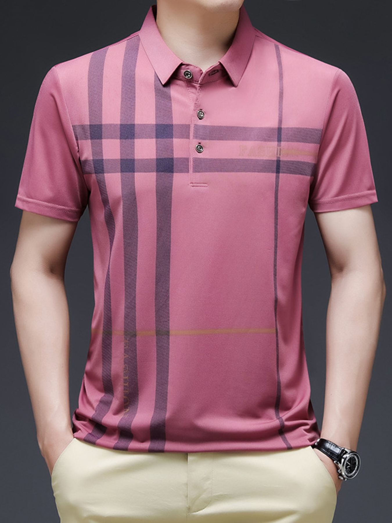 Men's Plus Size Plaid Pattern Short Sleeve Polo Shirt