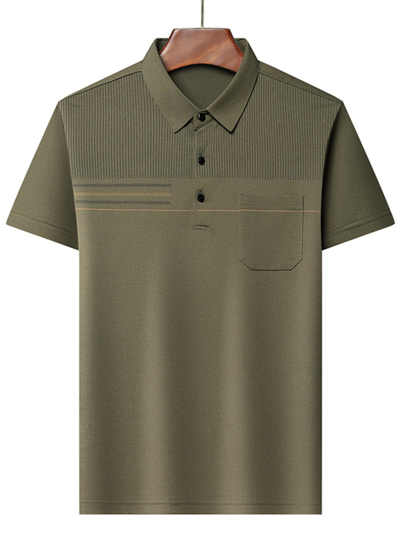 Men's Plus Size Striped Collar Short Sleeve Casual Polo Shirt