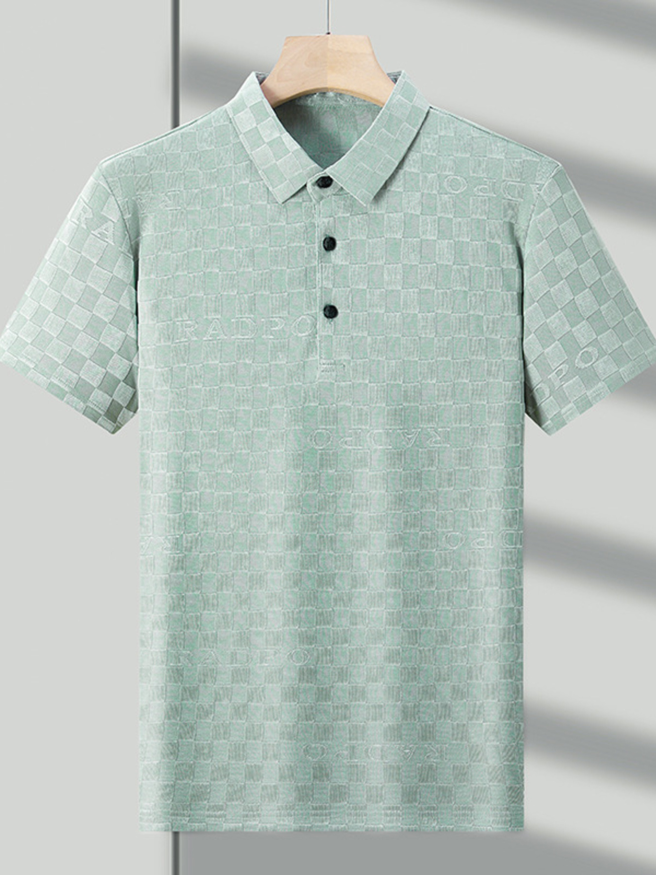 Men's Plus Size Checkered Pattern Short Sleeve Casual Polo Shirt