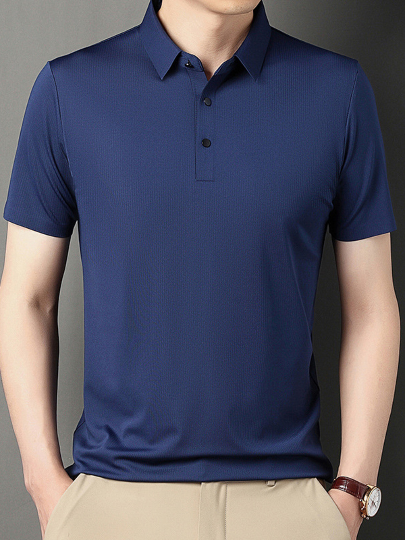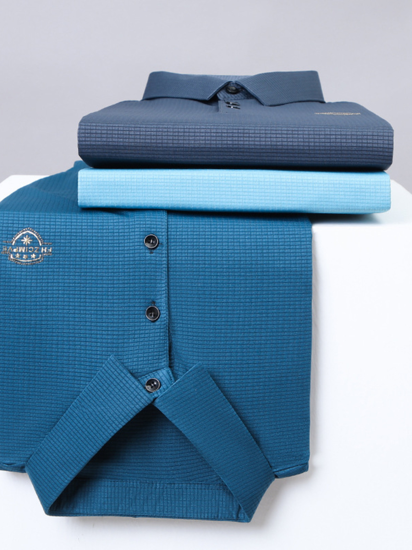 Men's Plus Size Short Sleeve Textured Business Polo Shirt