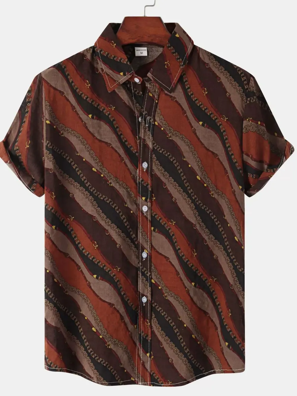 Men's Plus Size Printed Short Sleeve Casual Blouse