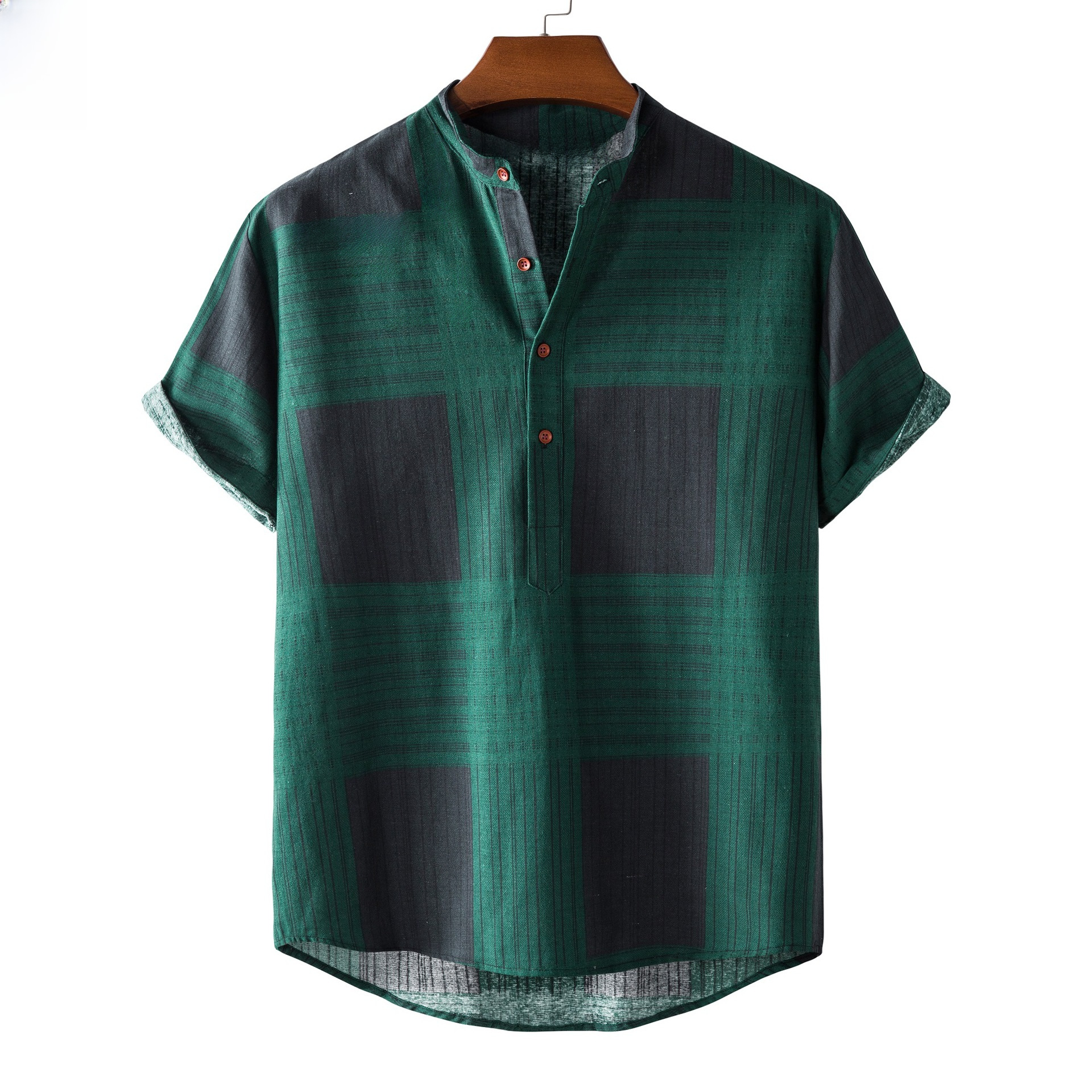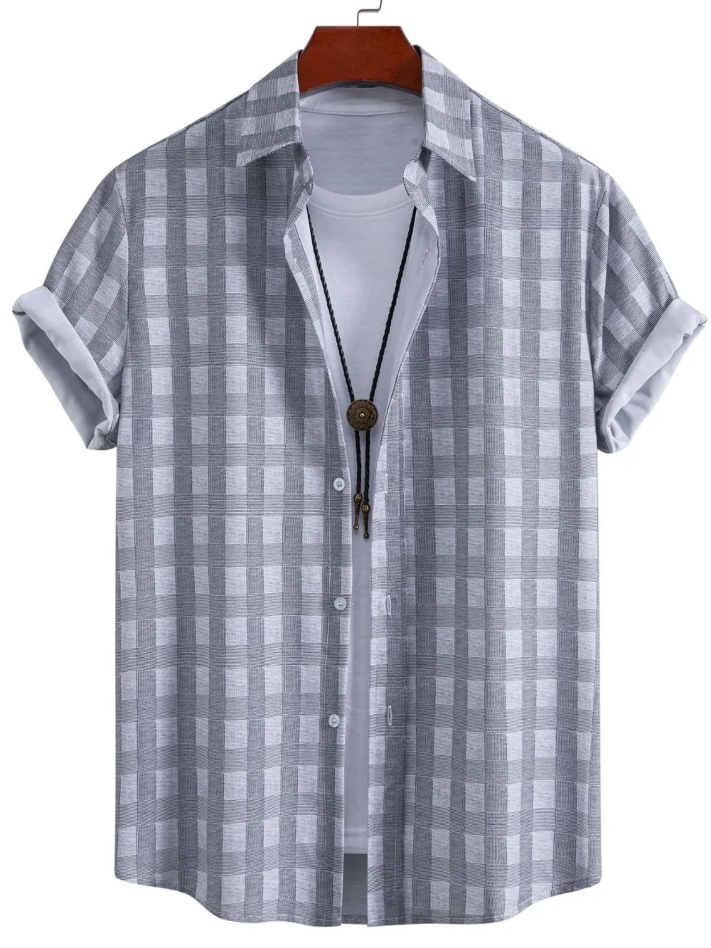 Men's Casual Plaid Short Sleeve Button Detail Shirt