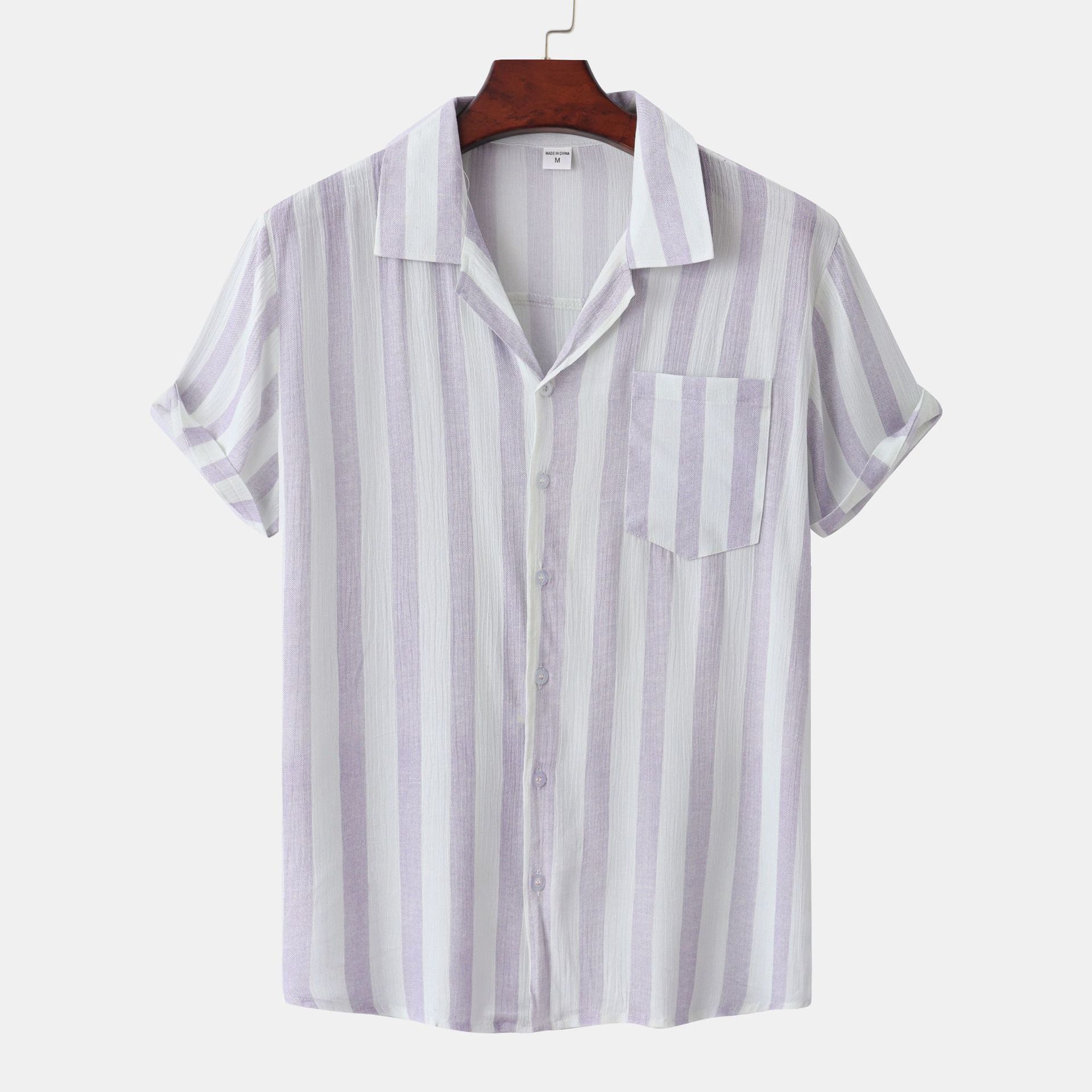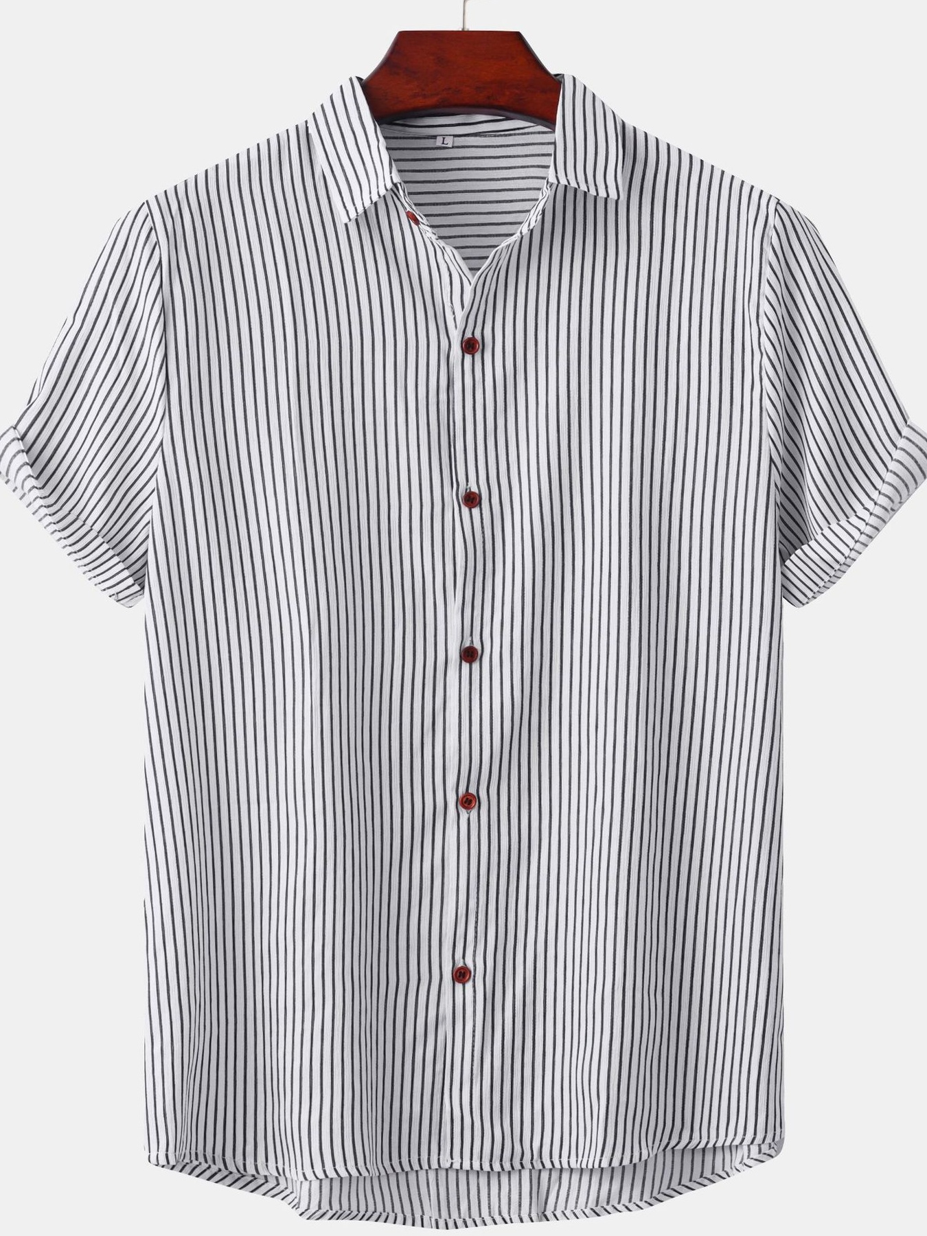 Men's Plus Size Striped Short Sleeve Button-Down Shirt
