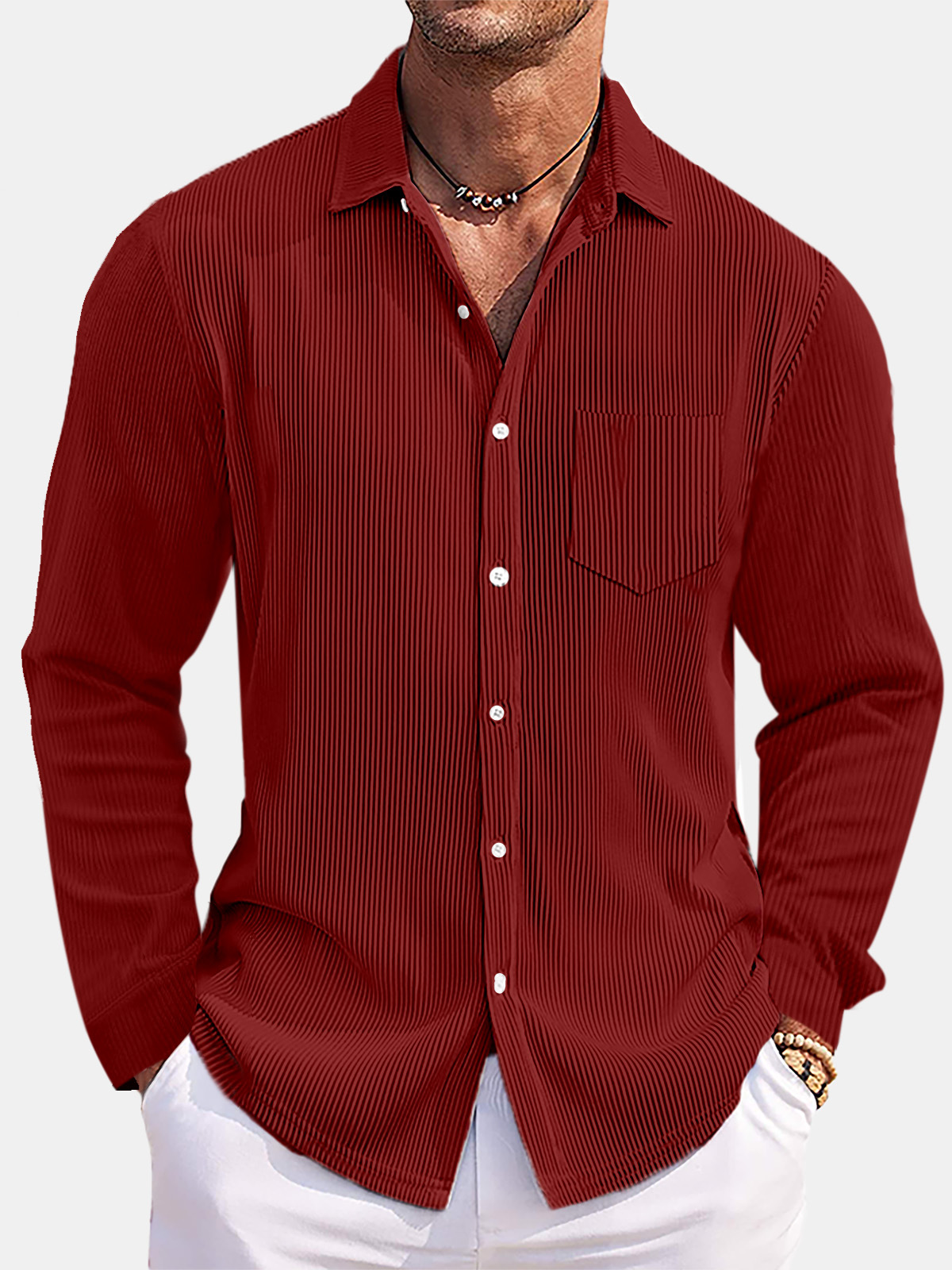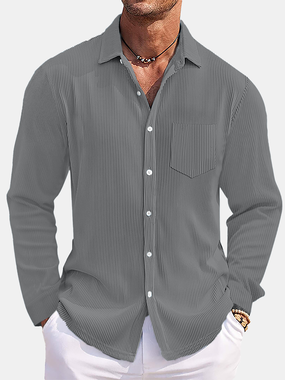 Men's Full Size Textured Button-Down Corduroy Shirt Plus Size