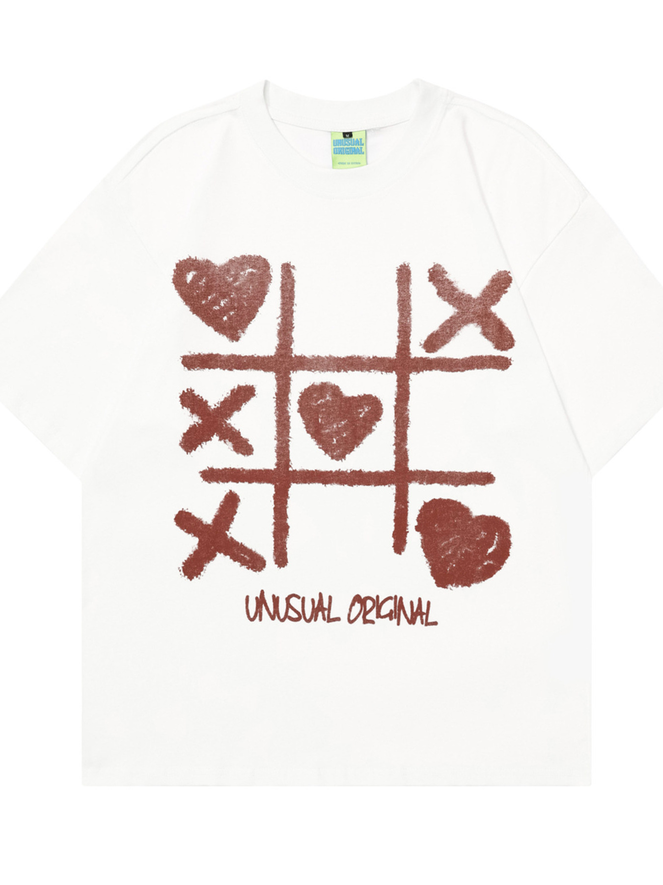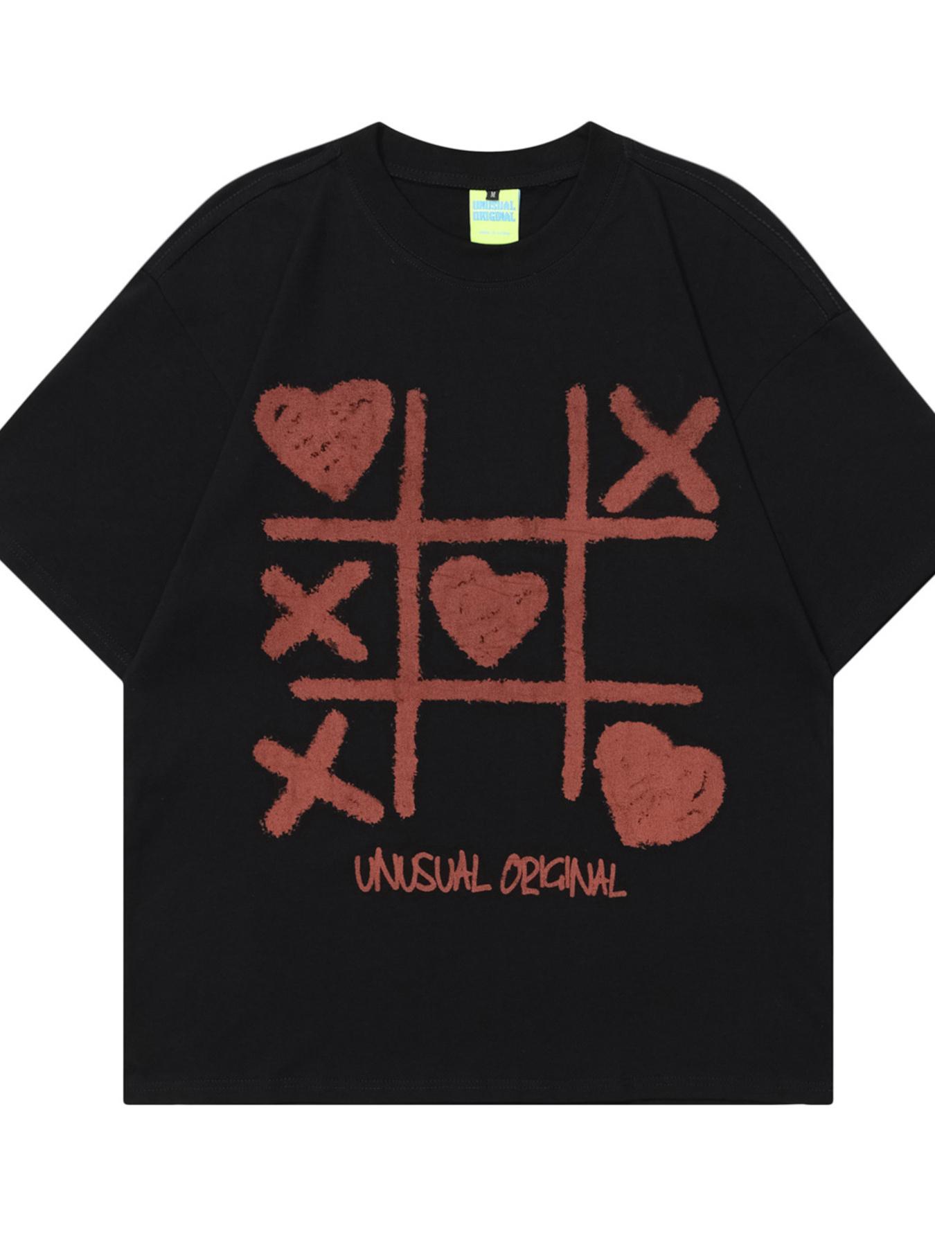 Men's Tic Tac Toe Heart Pattern Round Neck T-Shirt