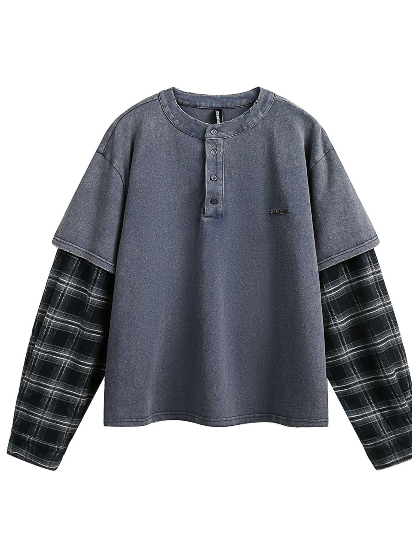 Men's Plaid Long Sleeve Henley Sweatshirt