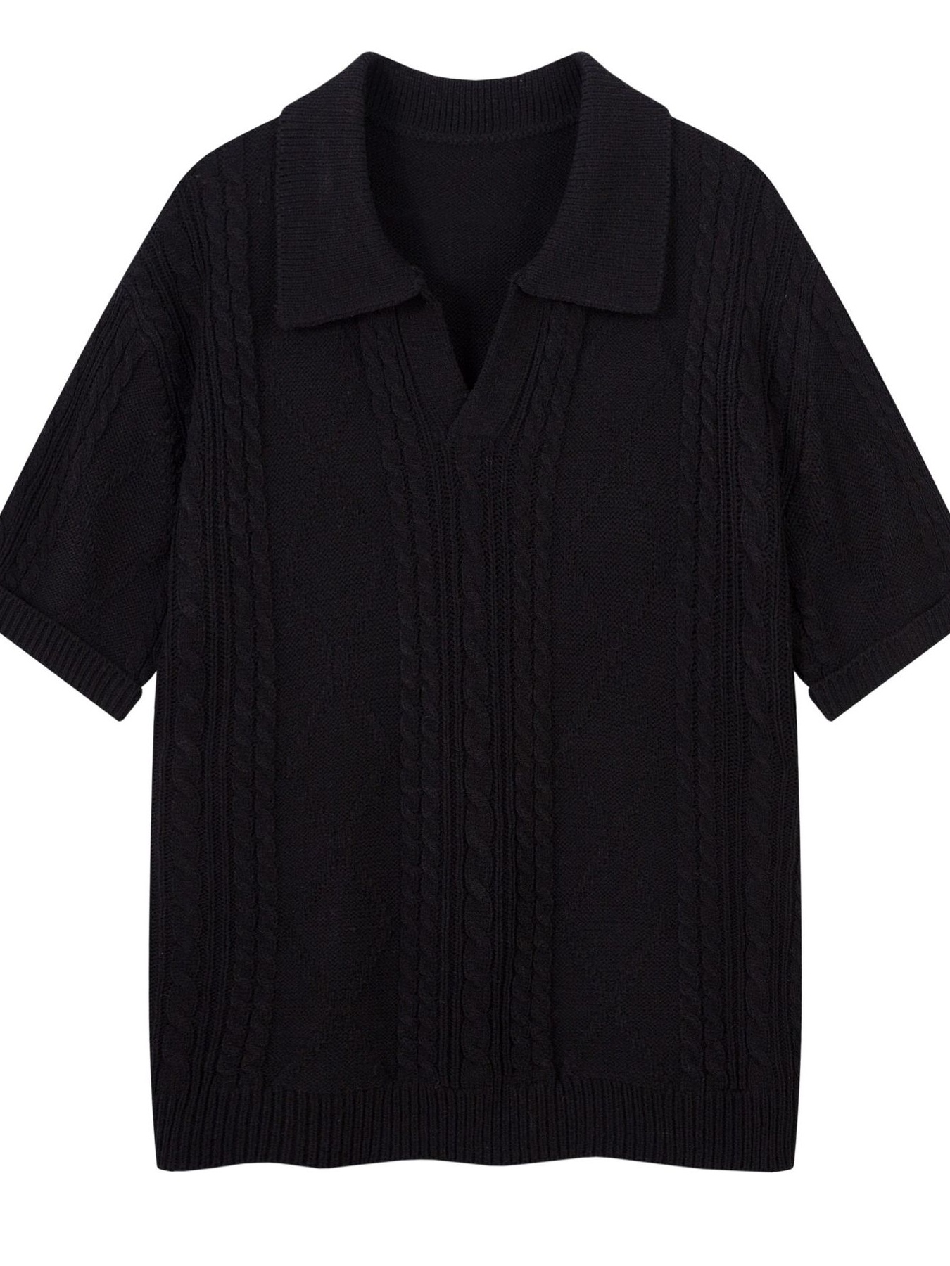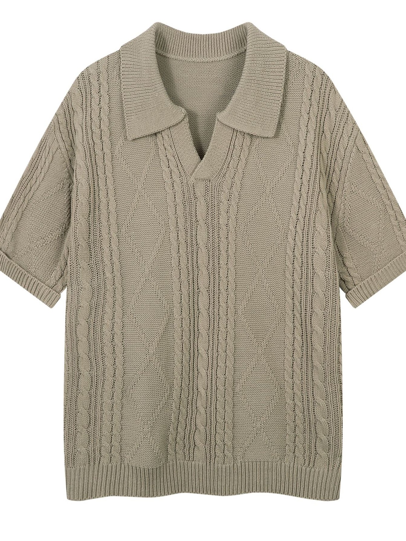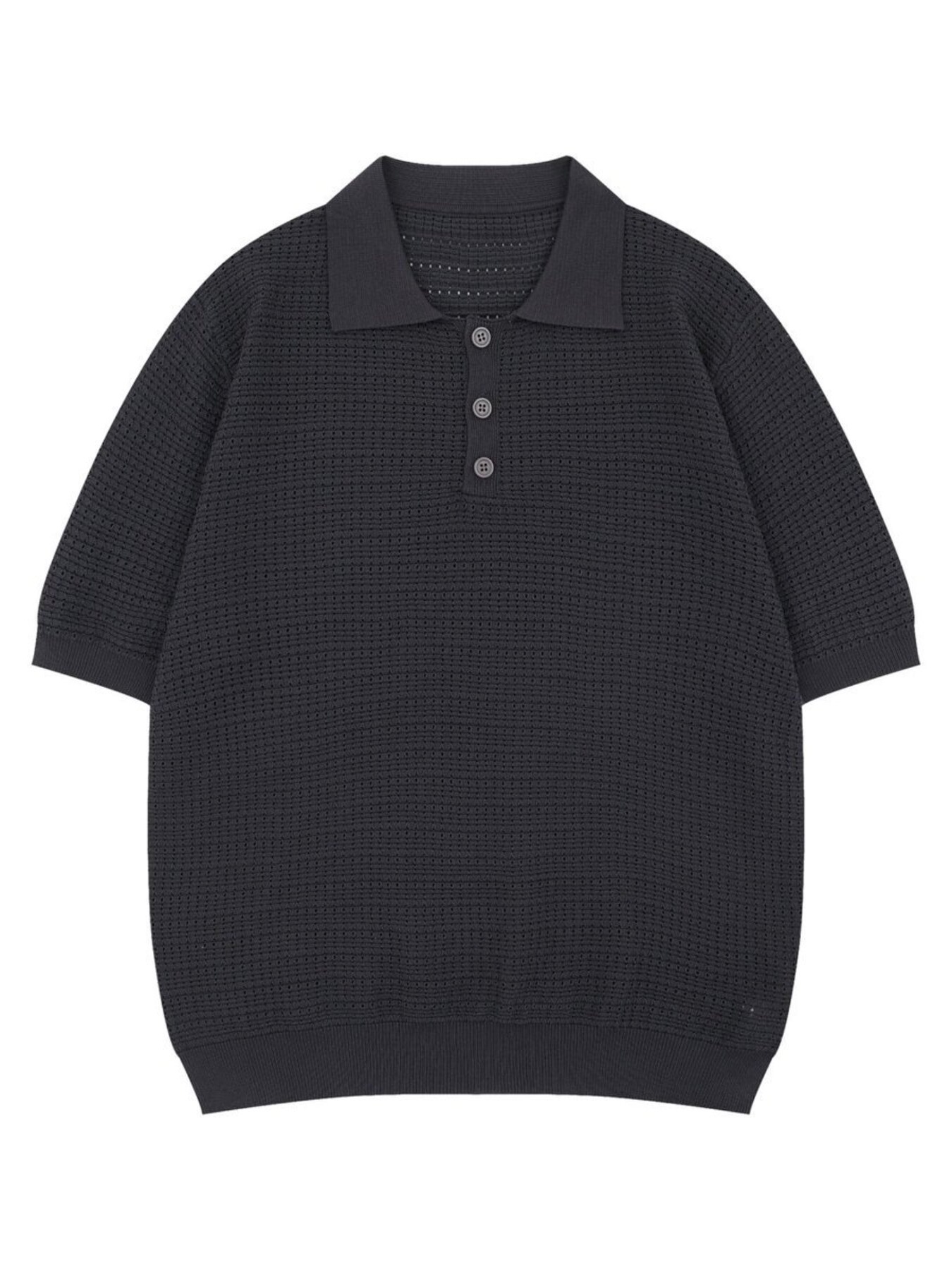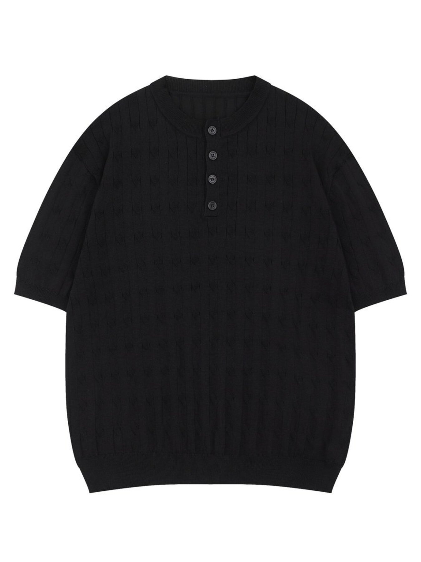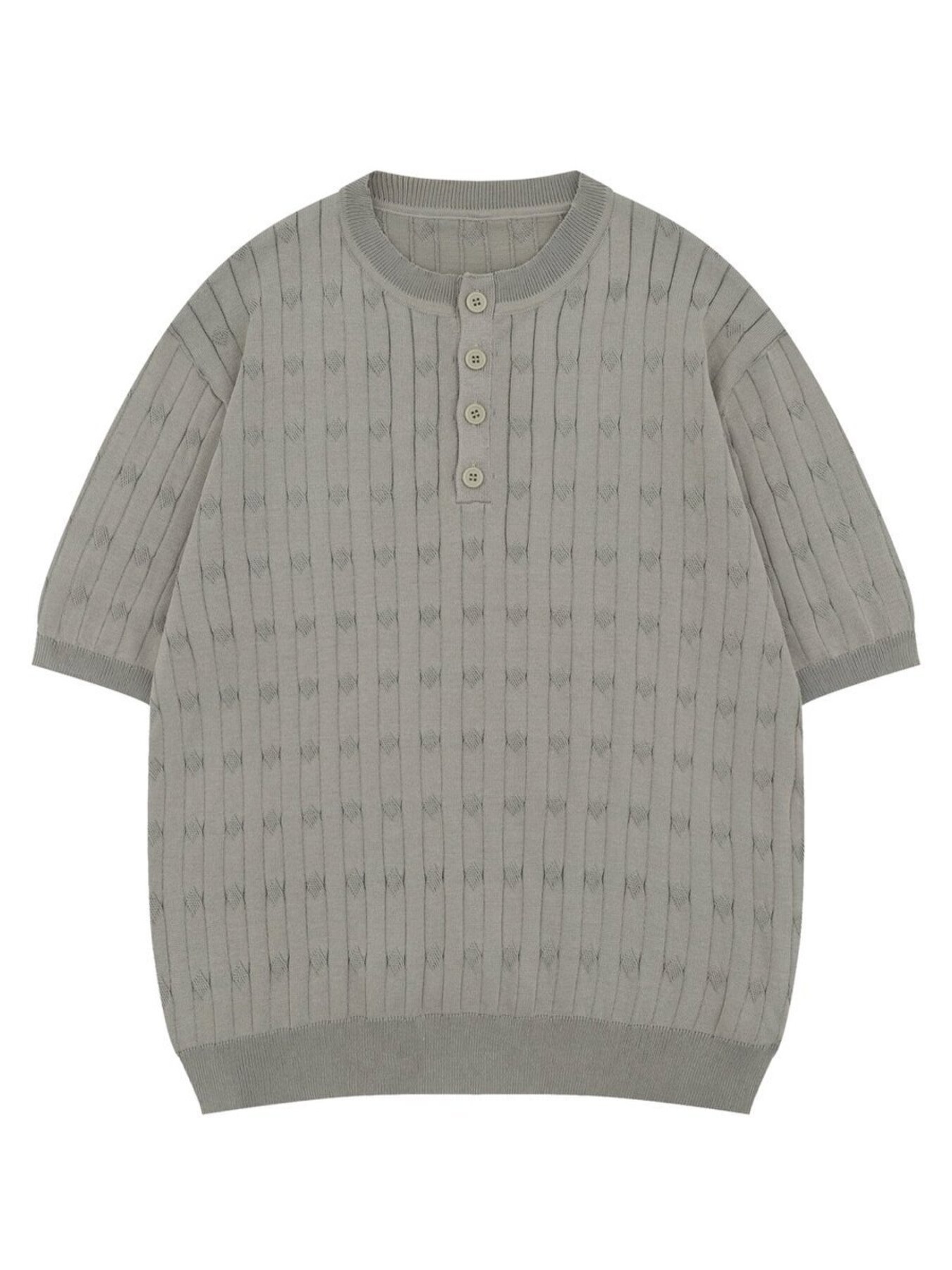 Men's Casual Knit Button Henley T-Shirt with Textured Pattern