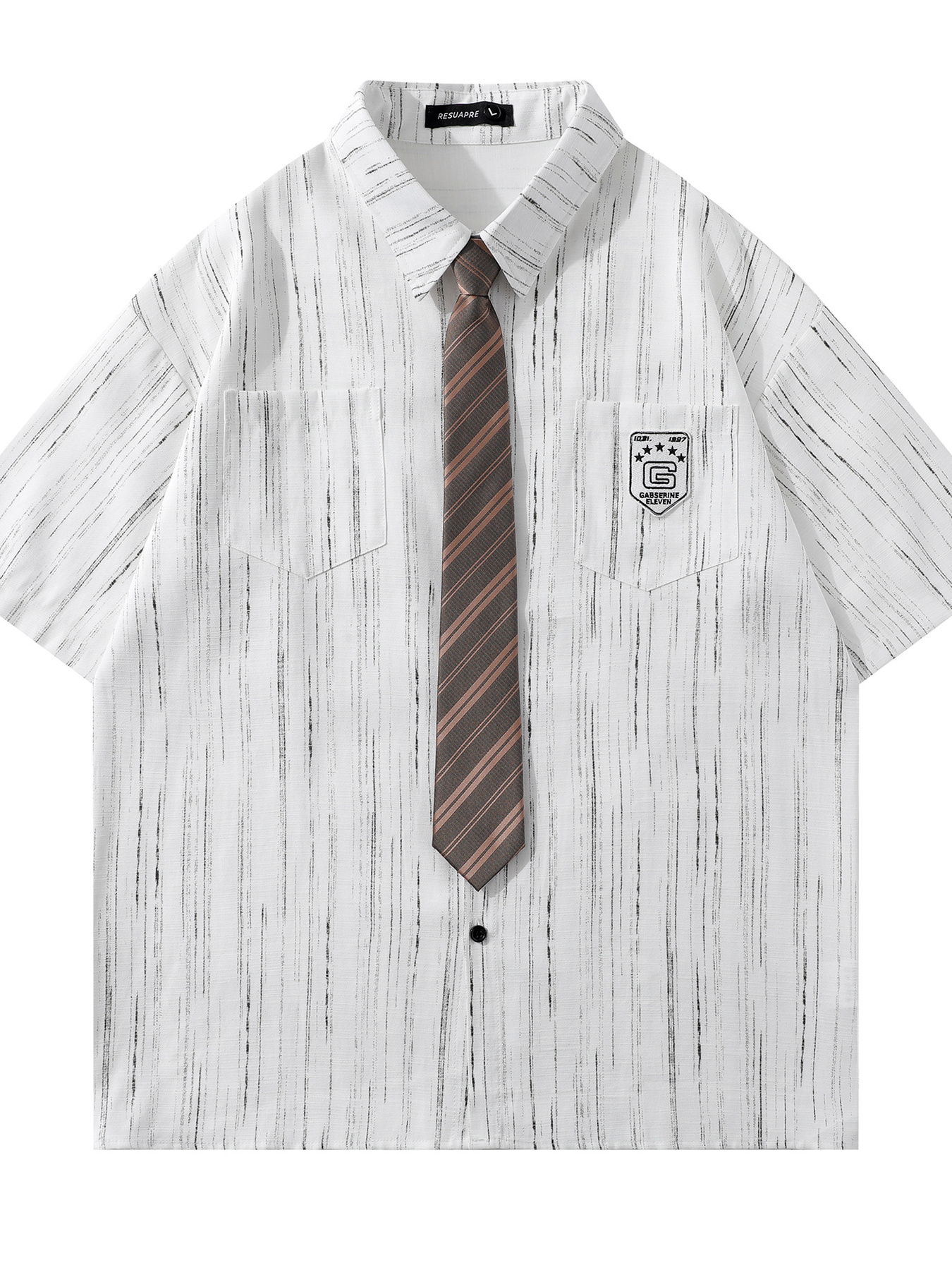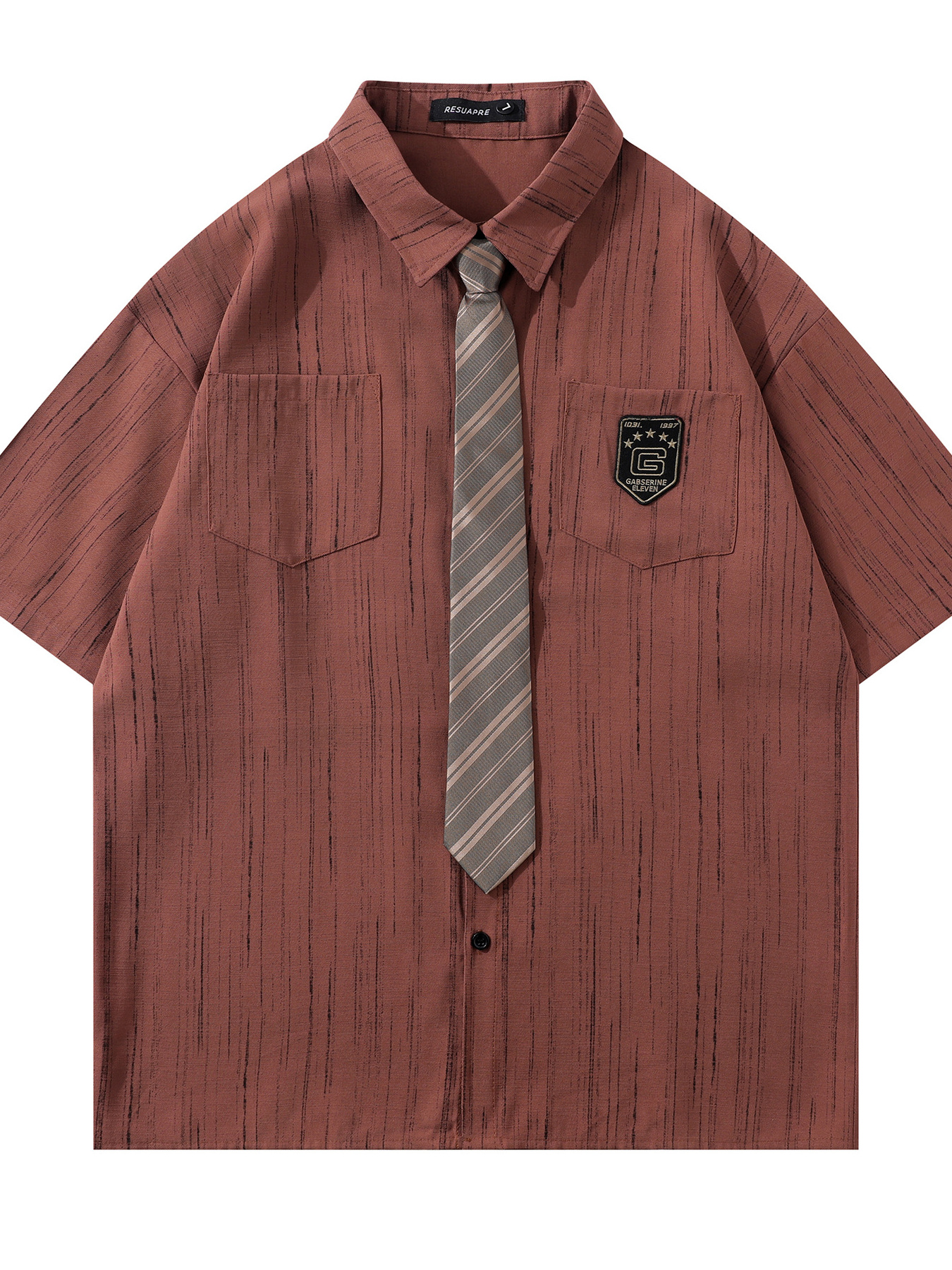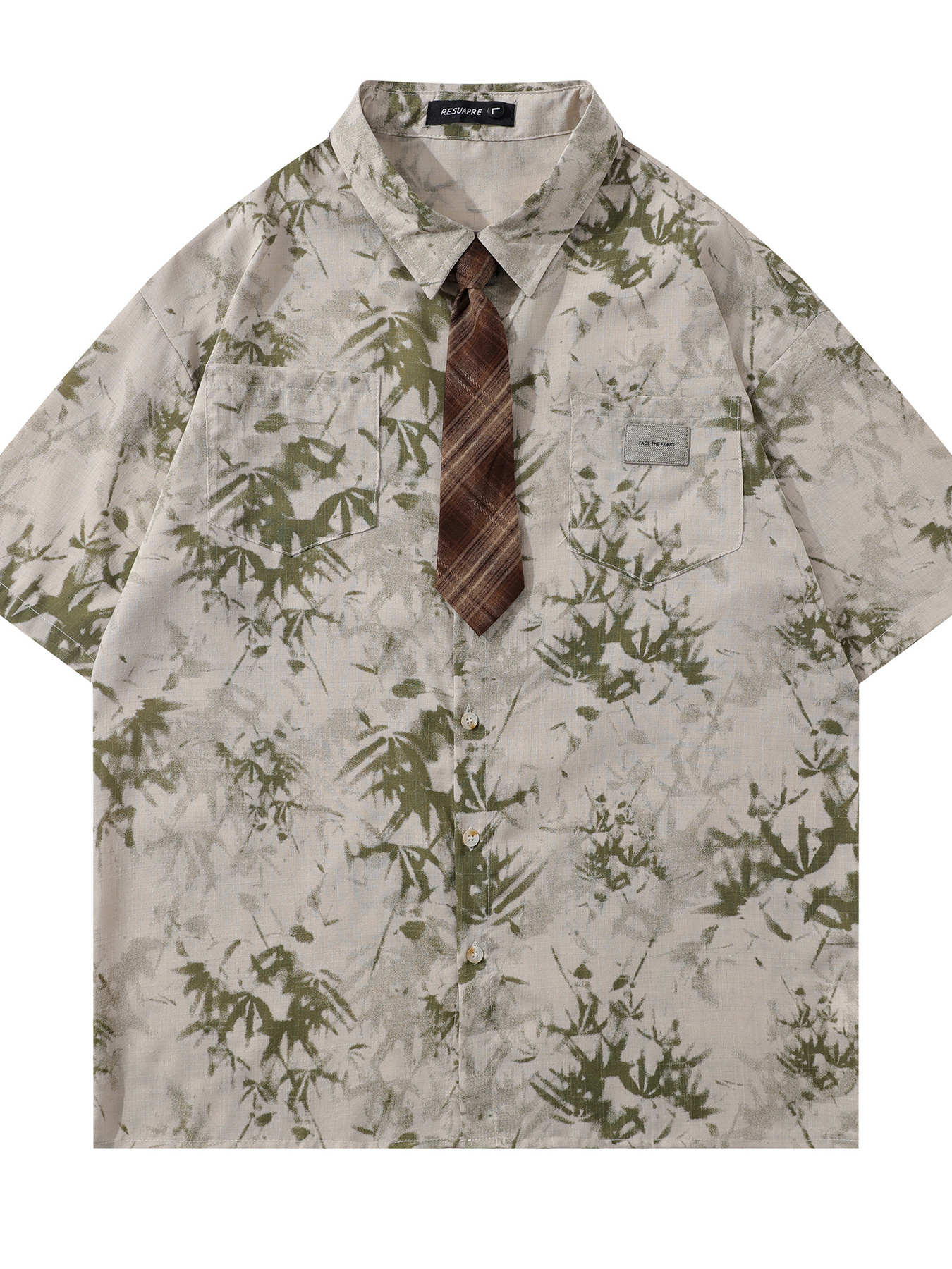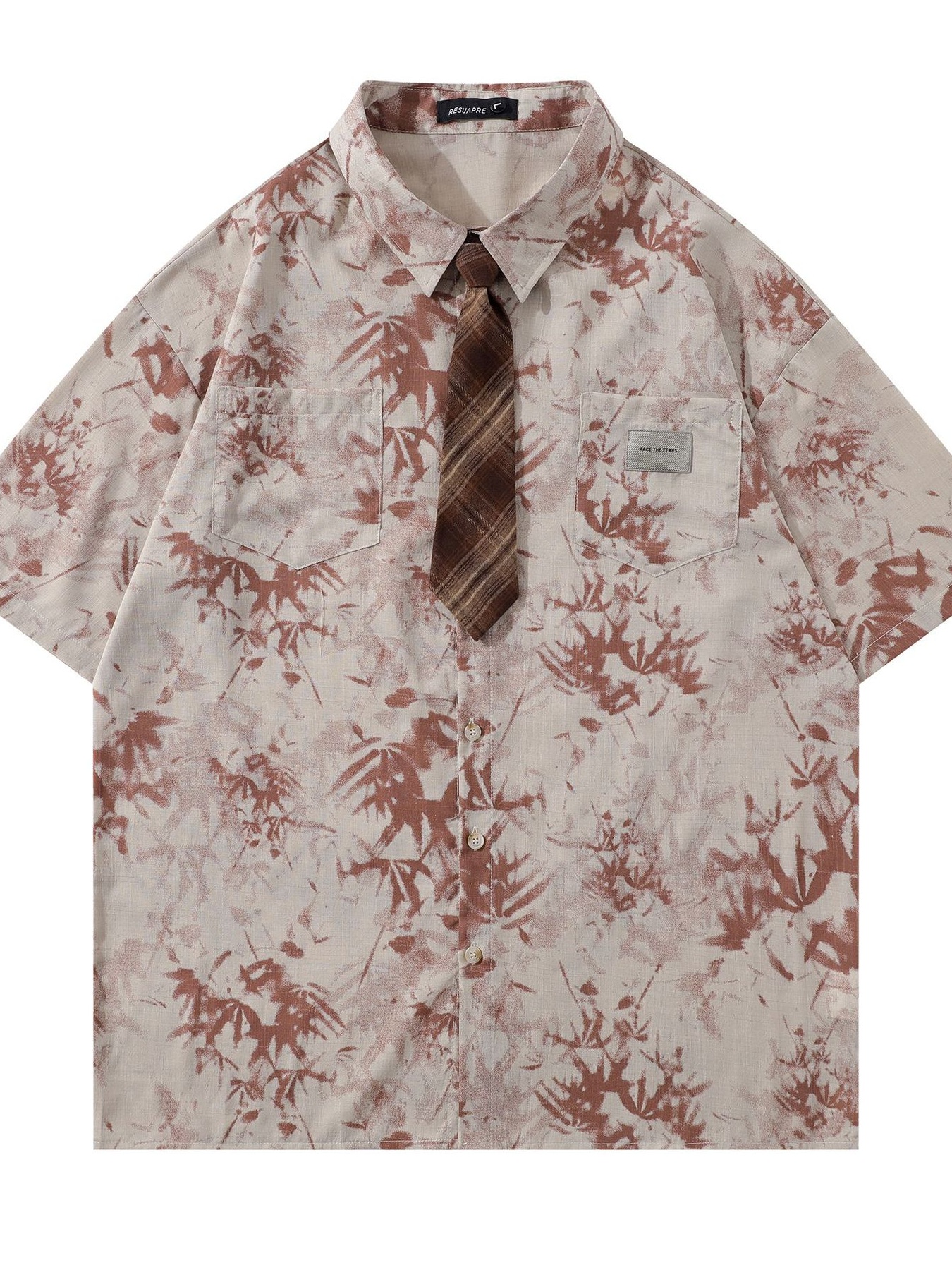 Men's Printed Short Sleeve Shirt with Paisley Tie