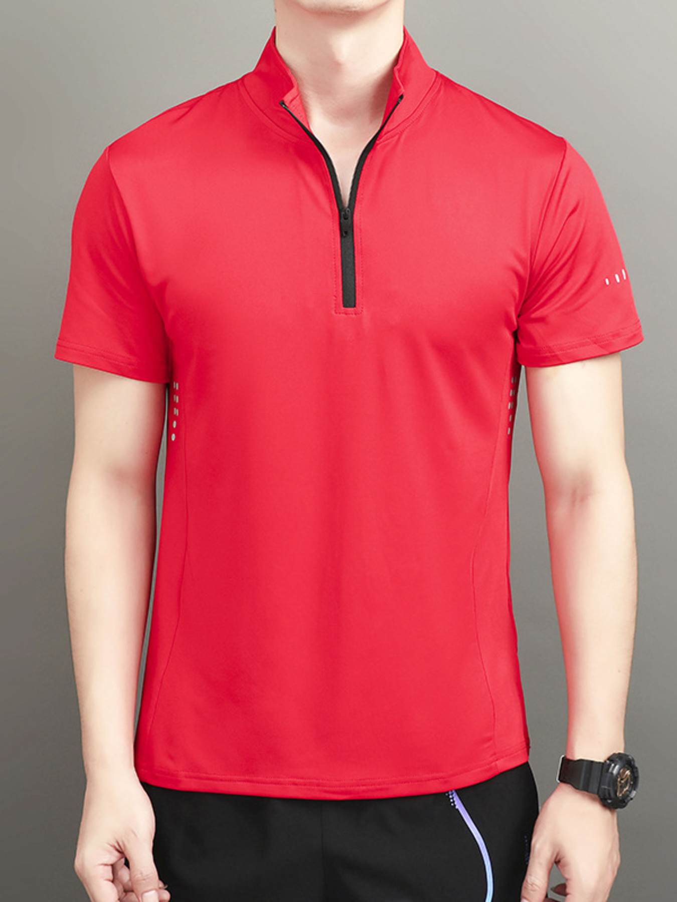 Men's Plus Size Quarter-Zip Short Sleeve Top