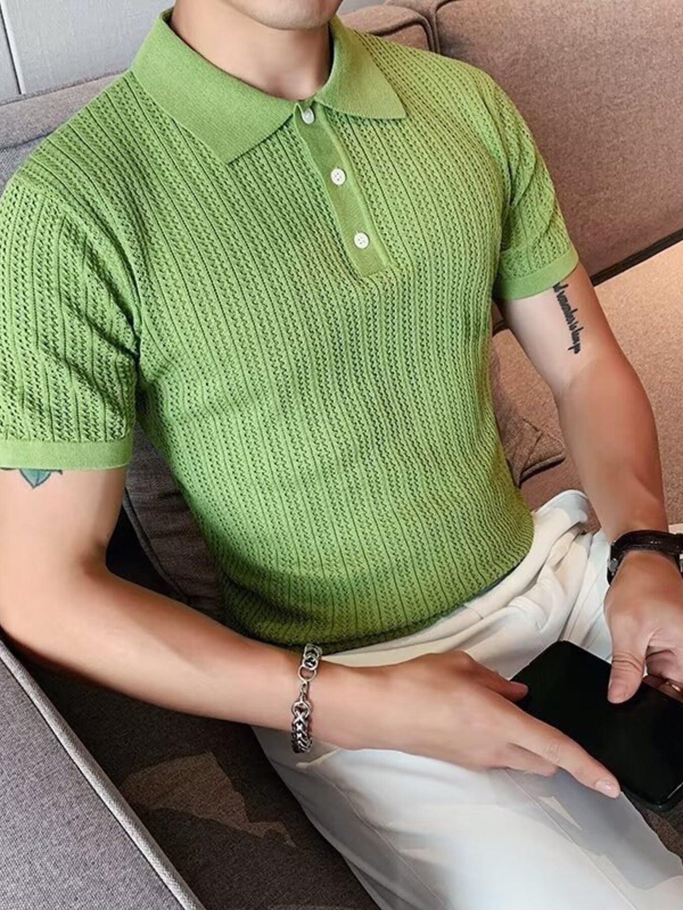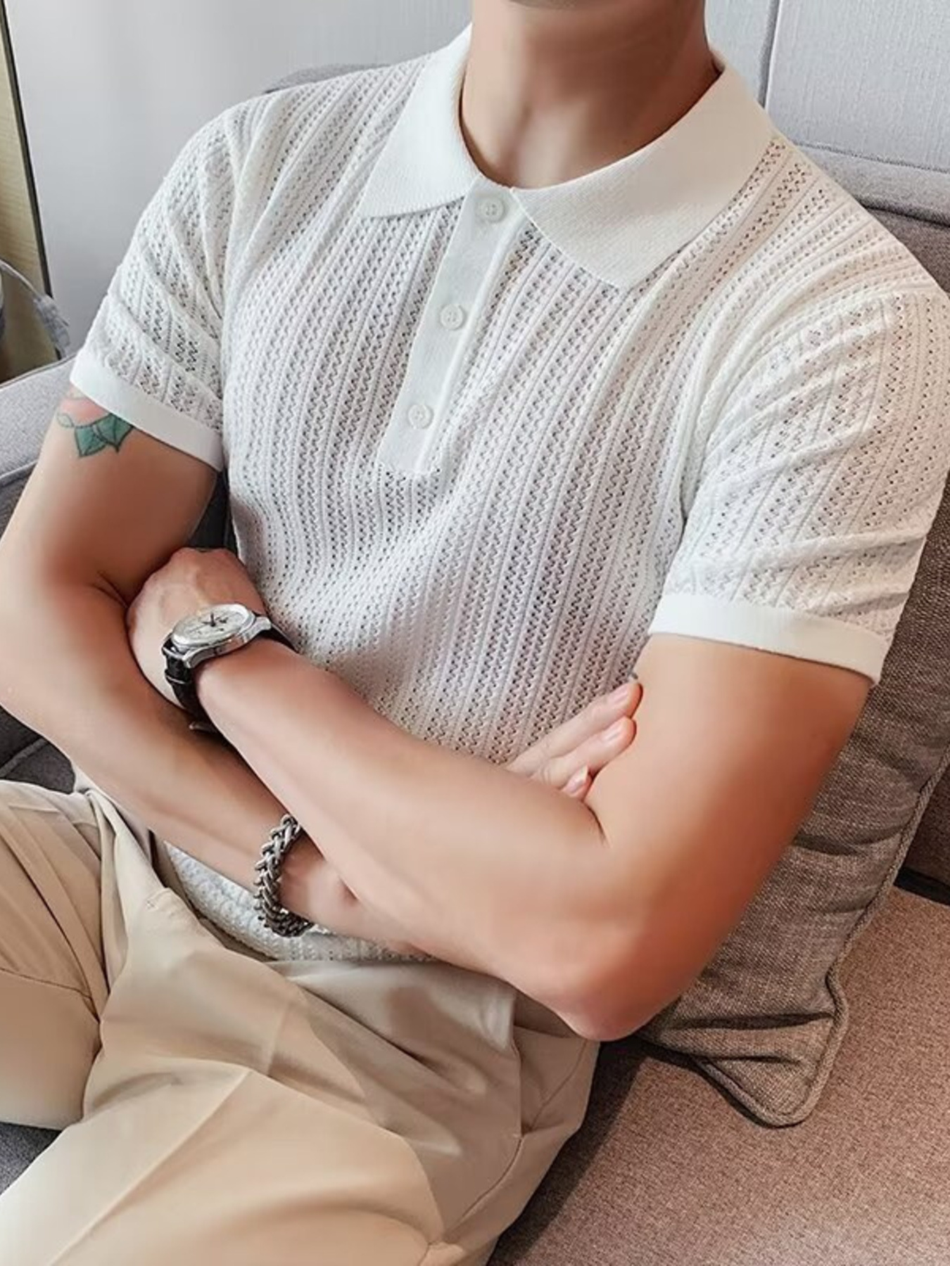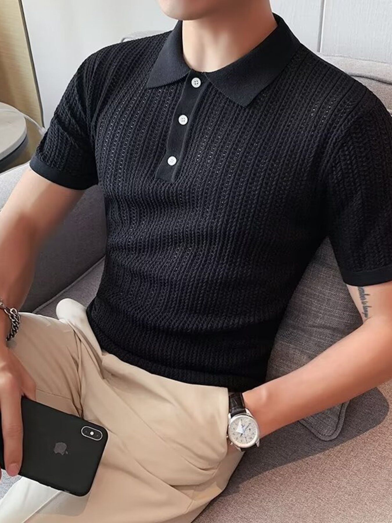 Men's Button Detail Short Sleeve Polo