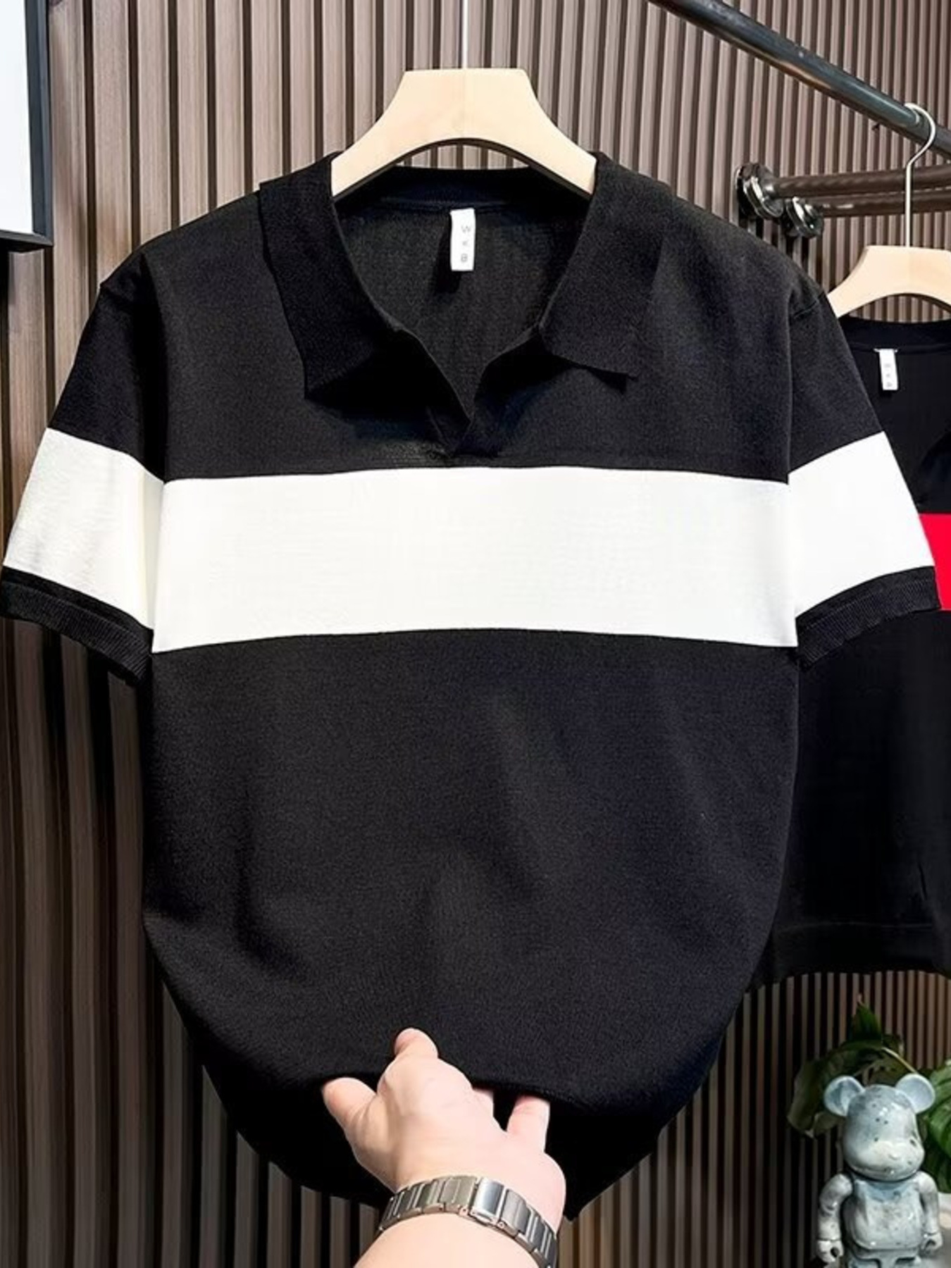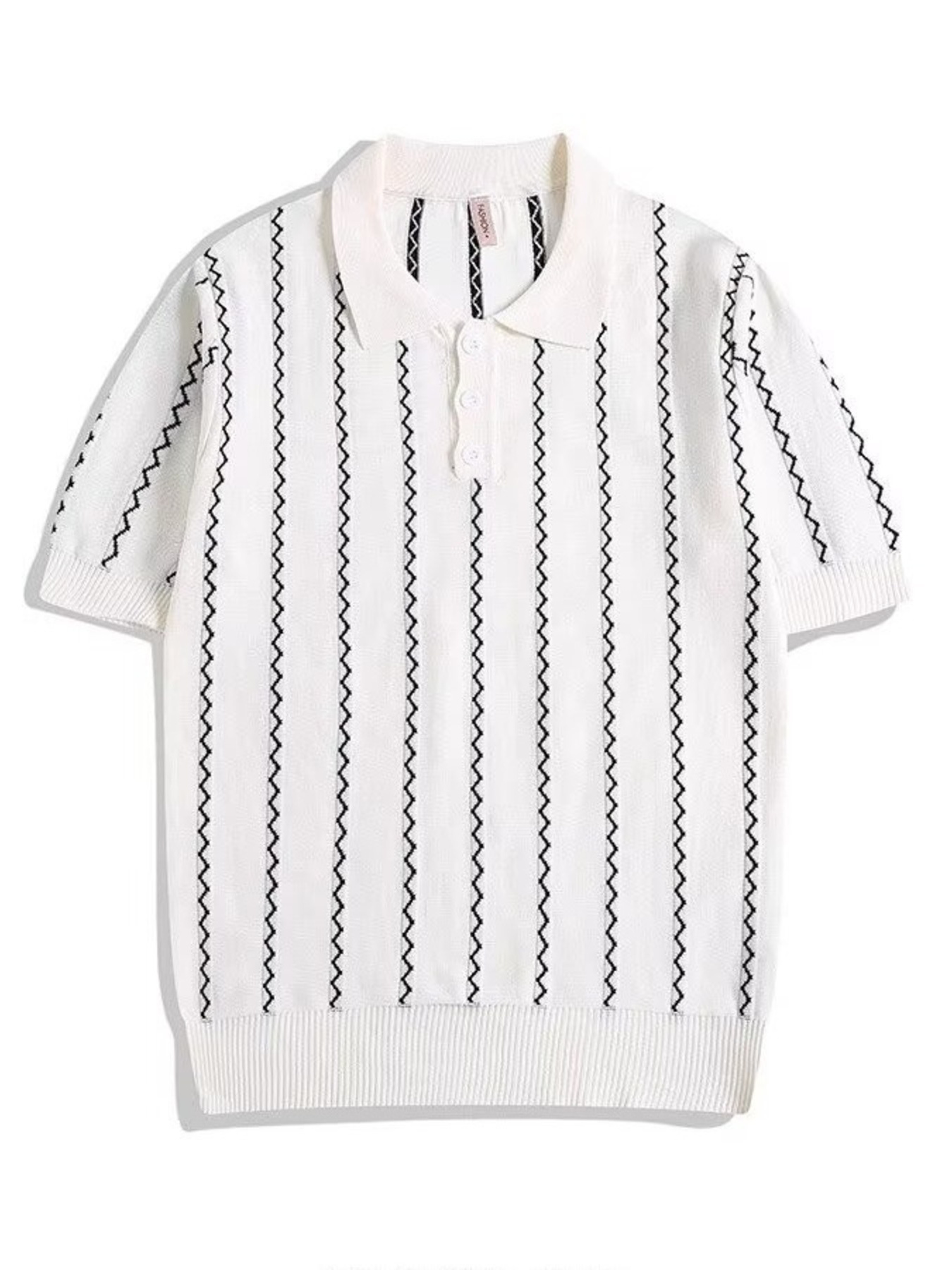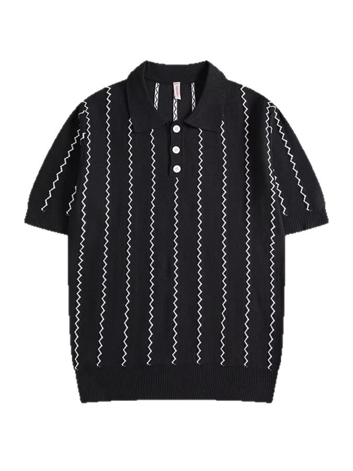 Men's Full Size Zigzag Striped Knit Polo Plus Size