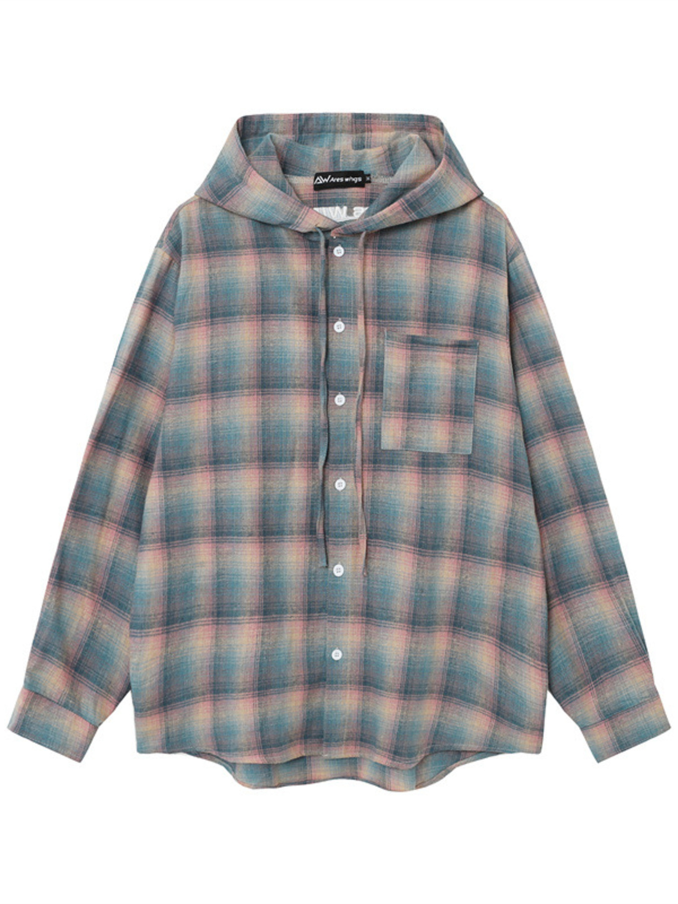 Men's Drawstring Plaid Button Up Hooded Shirt