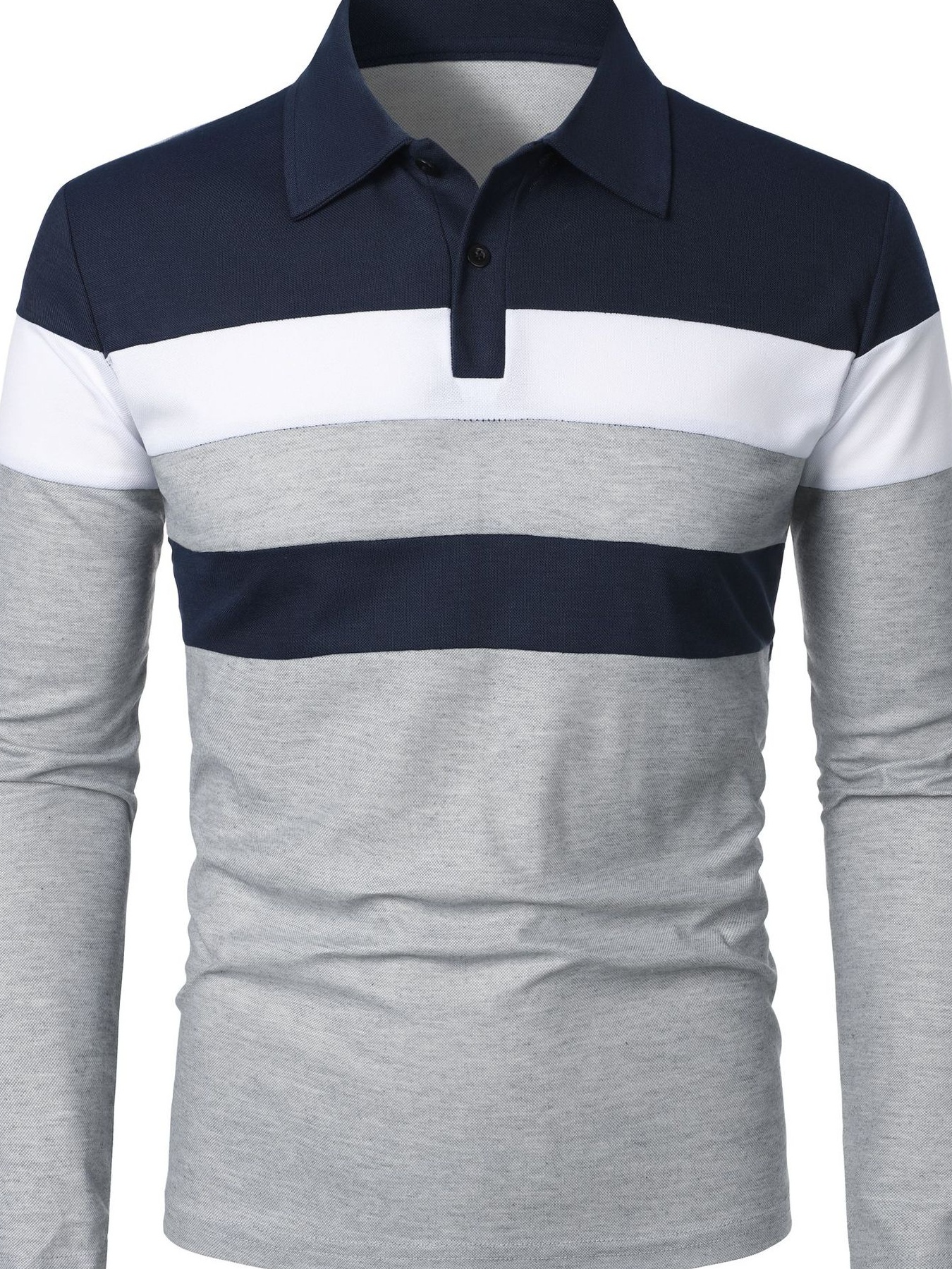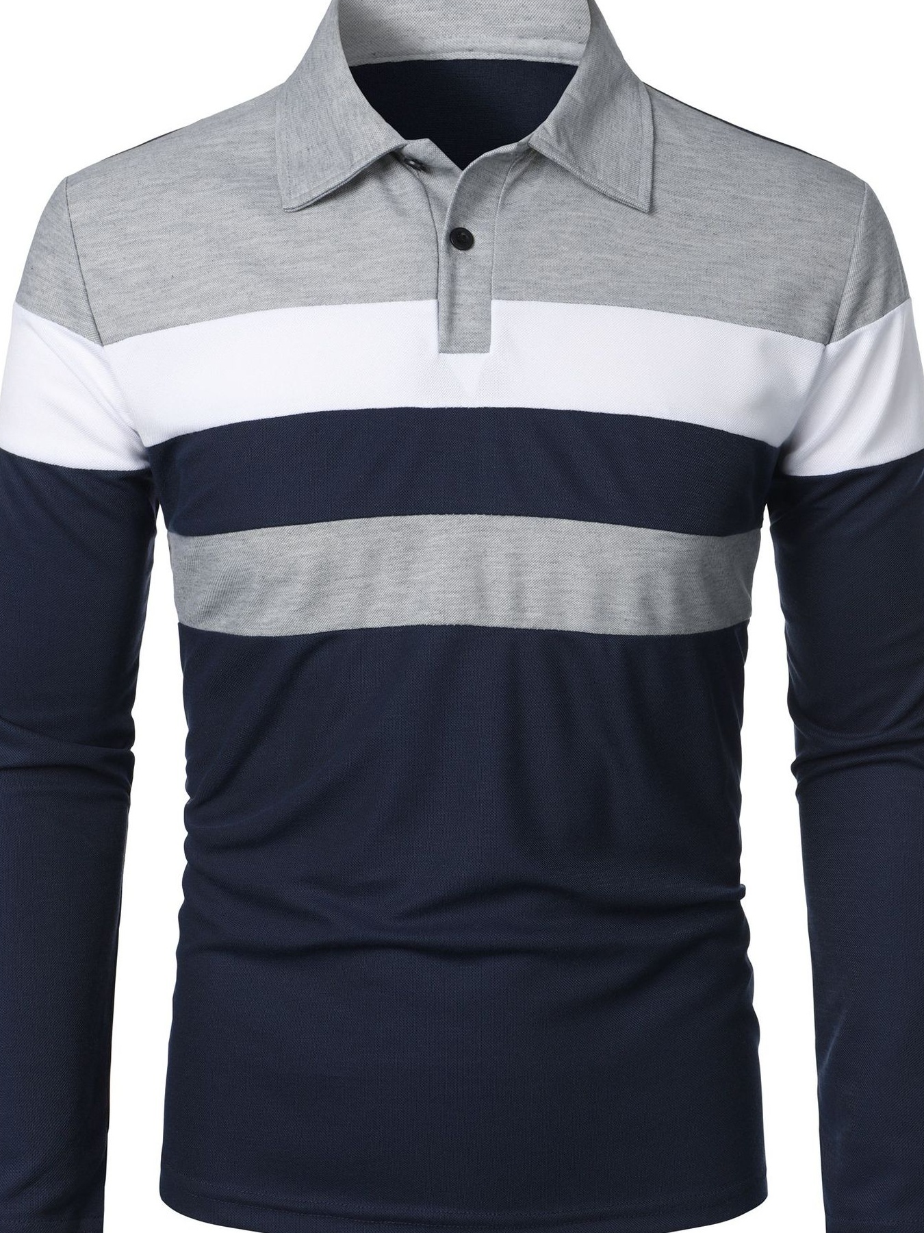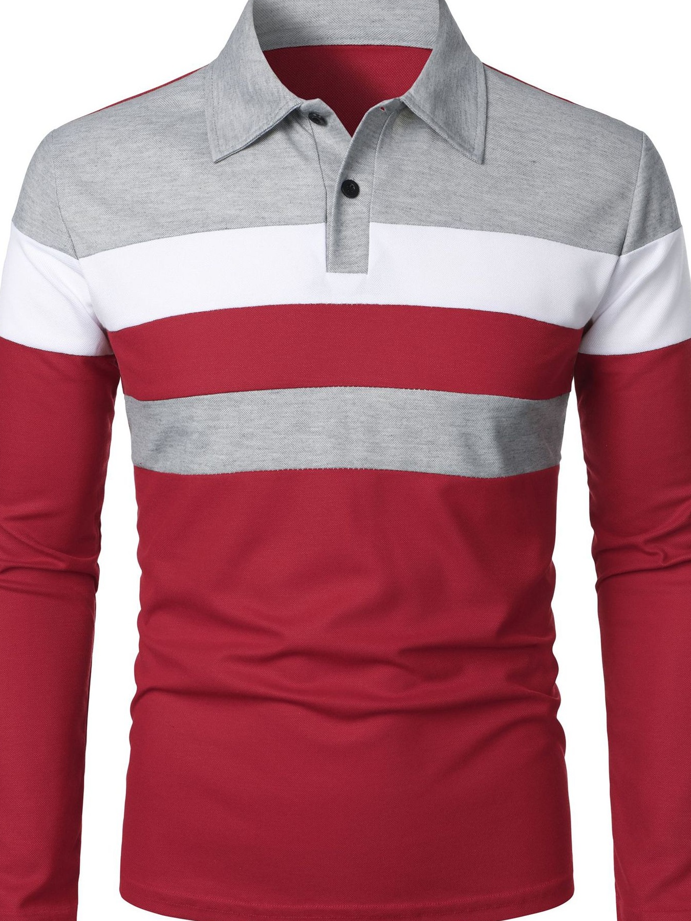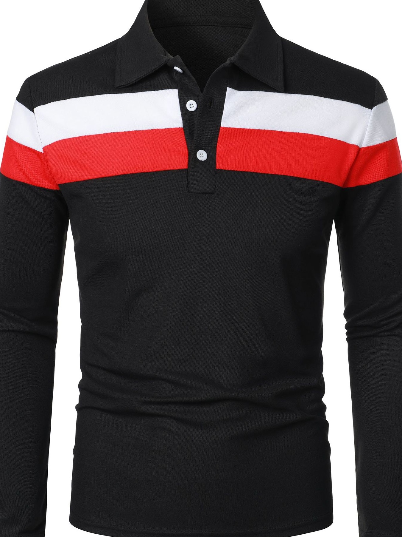 Men's Full Size Color Block Long Sleeve Polo Plus Size