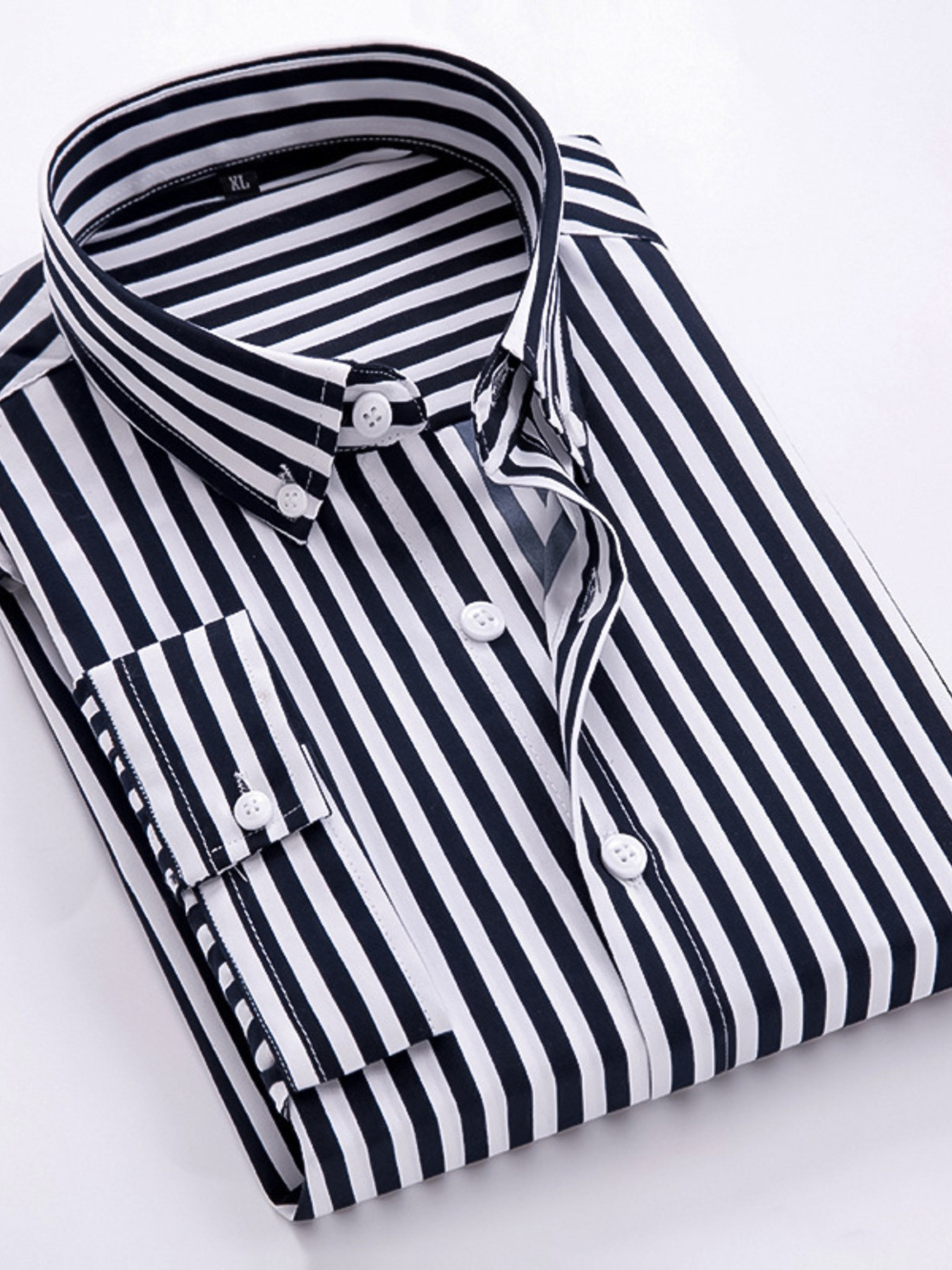 Men's Plus Size Striped Button Up Long Sleeve Shirt