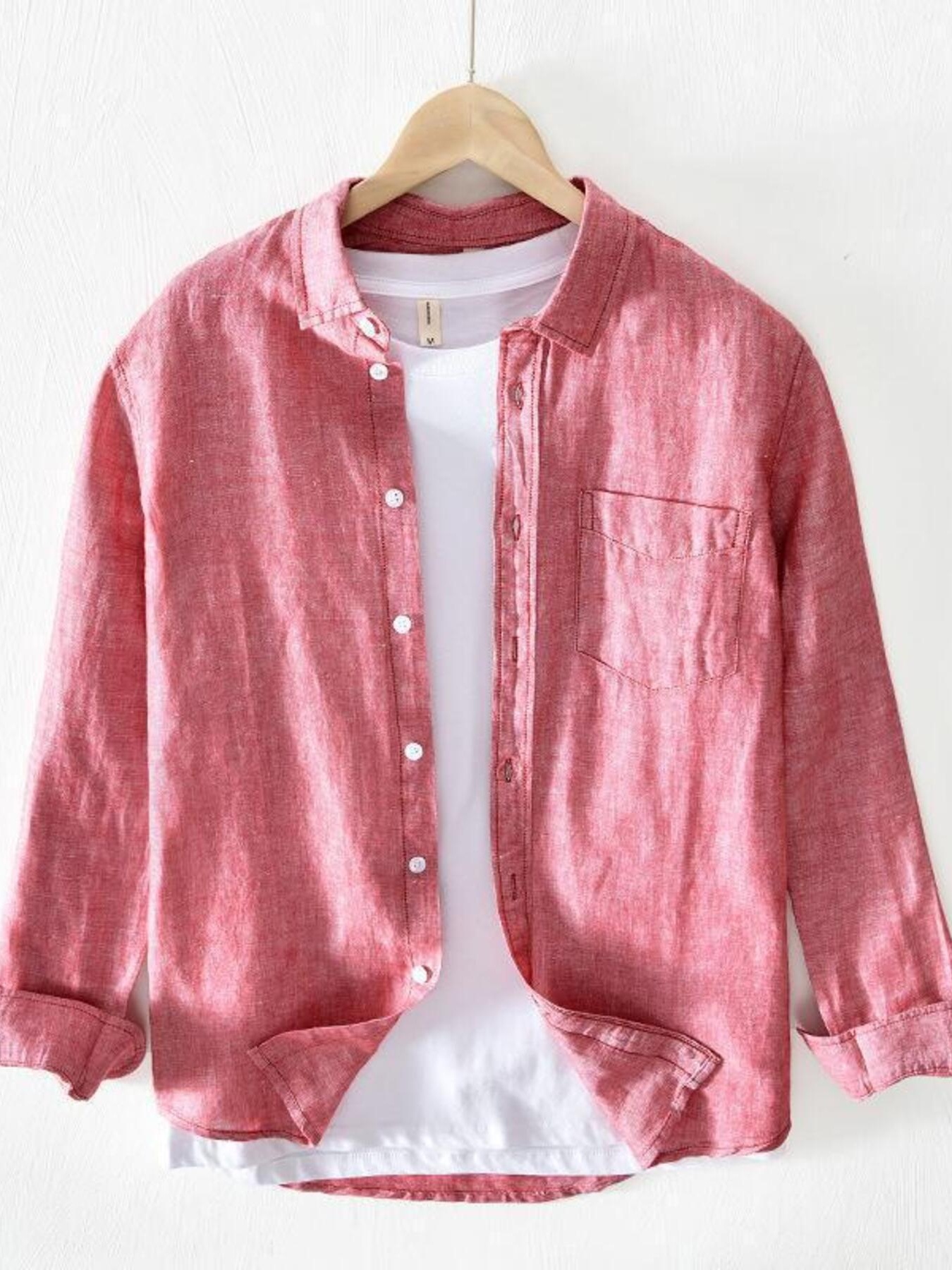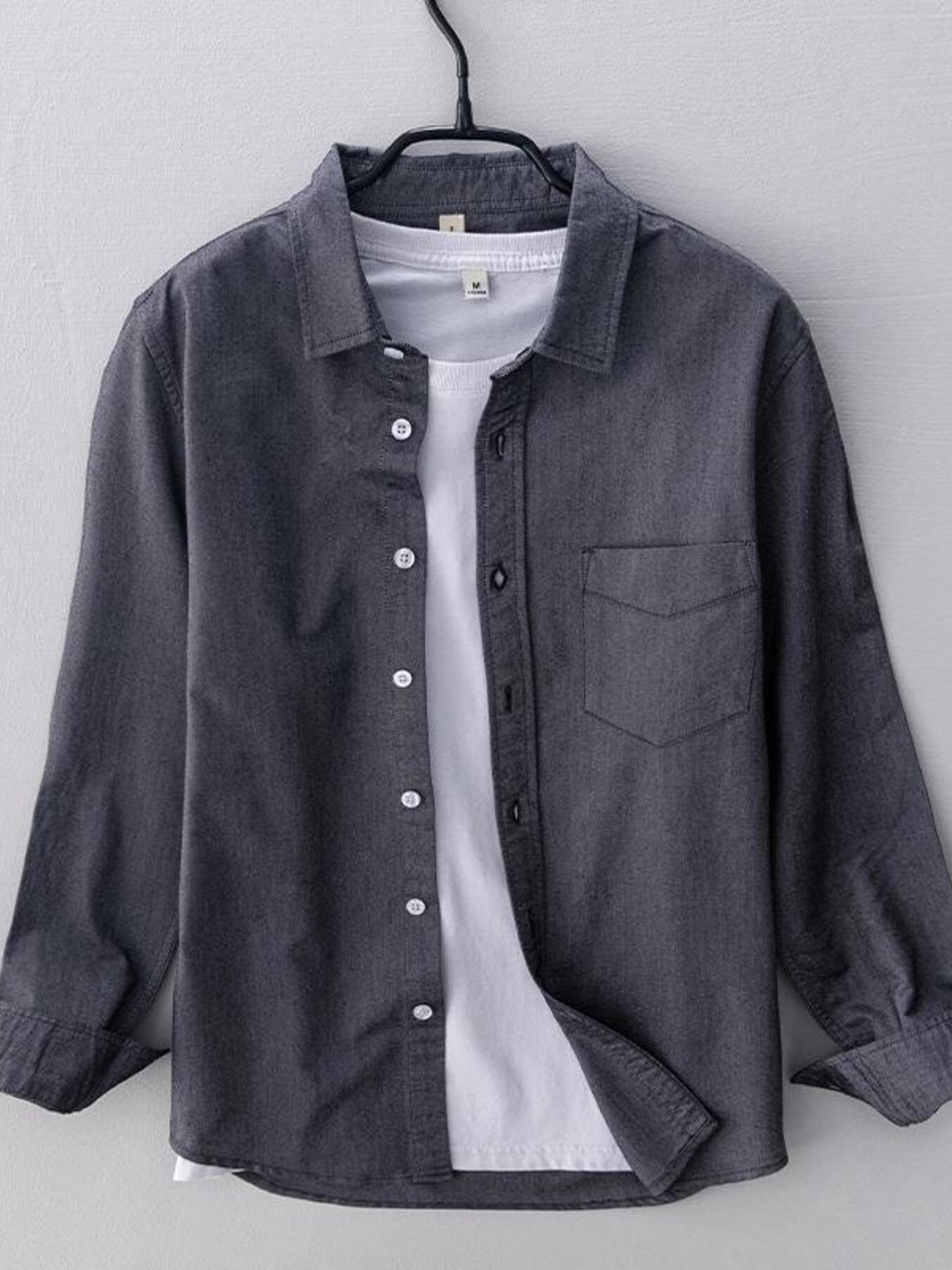Men's Plus Size Button-Up Shirt with Chest Pocket
