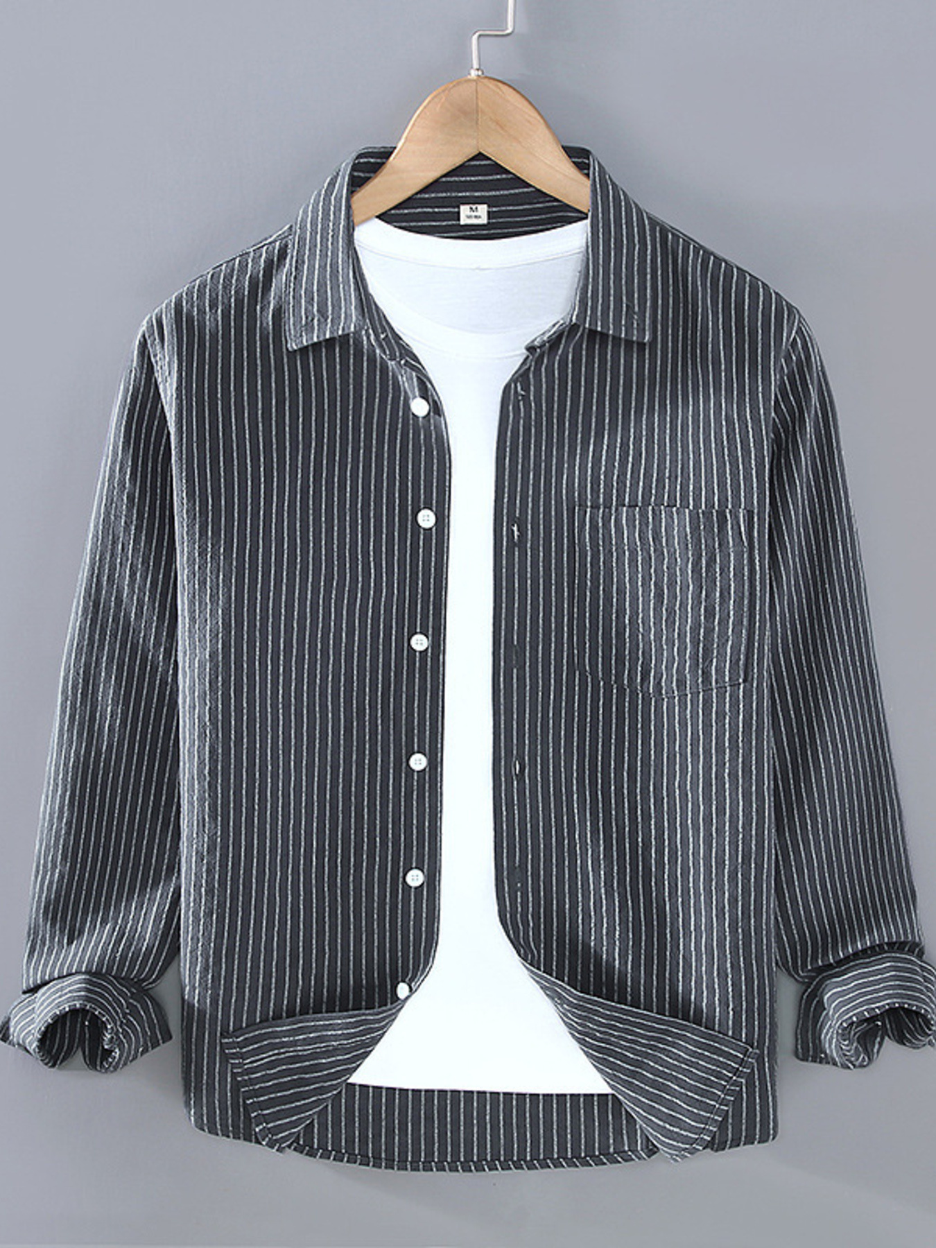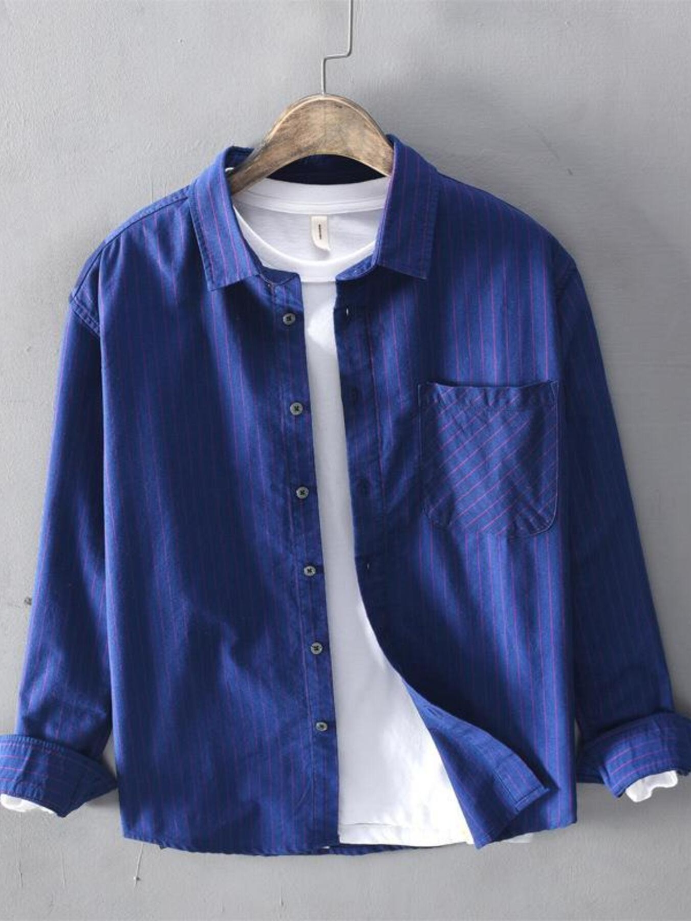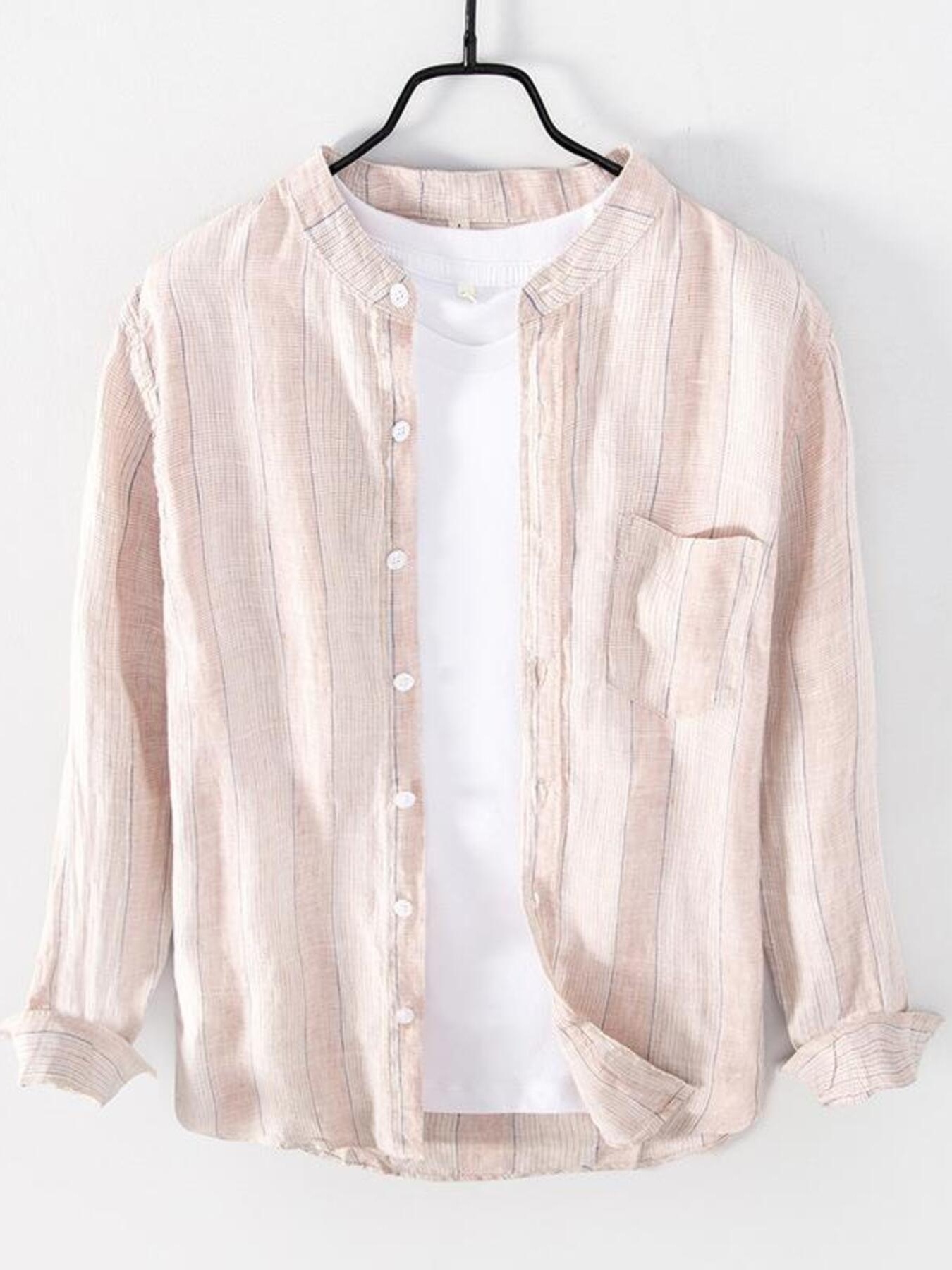 Men's Plus Size Button Up Striped Long Sleeve Shirt