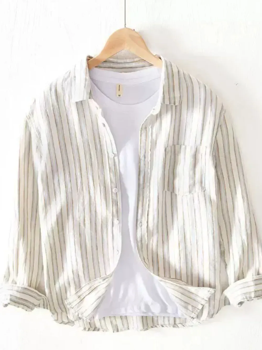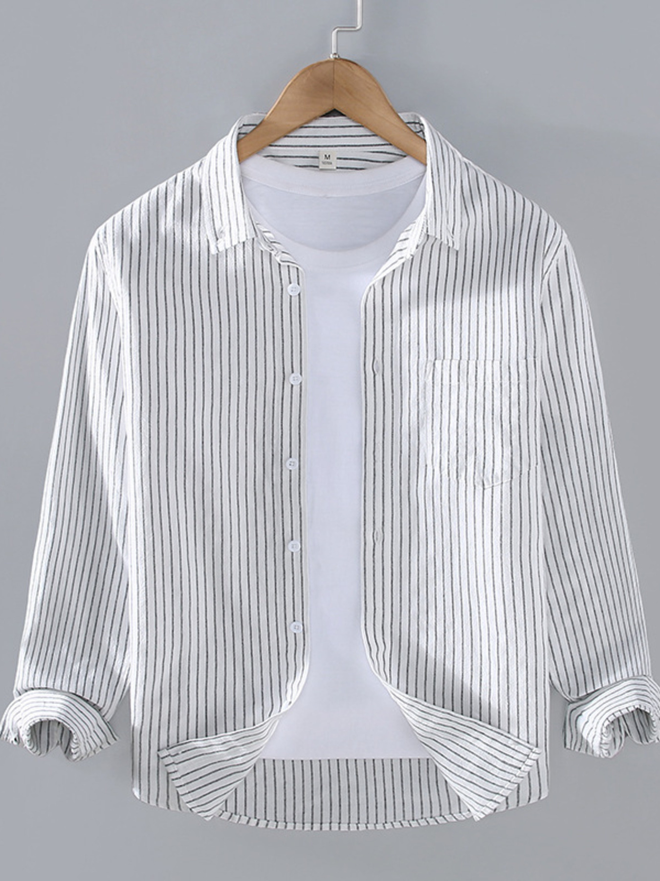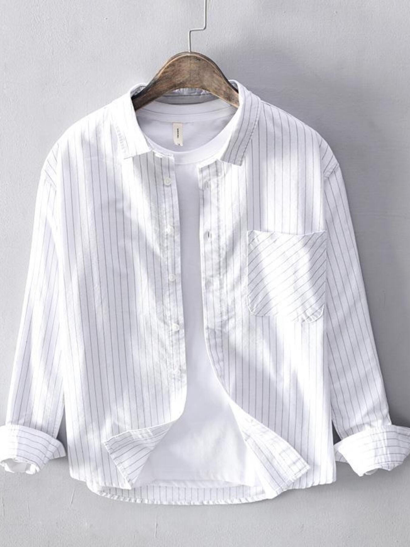 Men's Plus Size Button Up Striped Long Sleeve Shirt