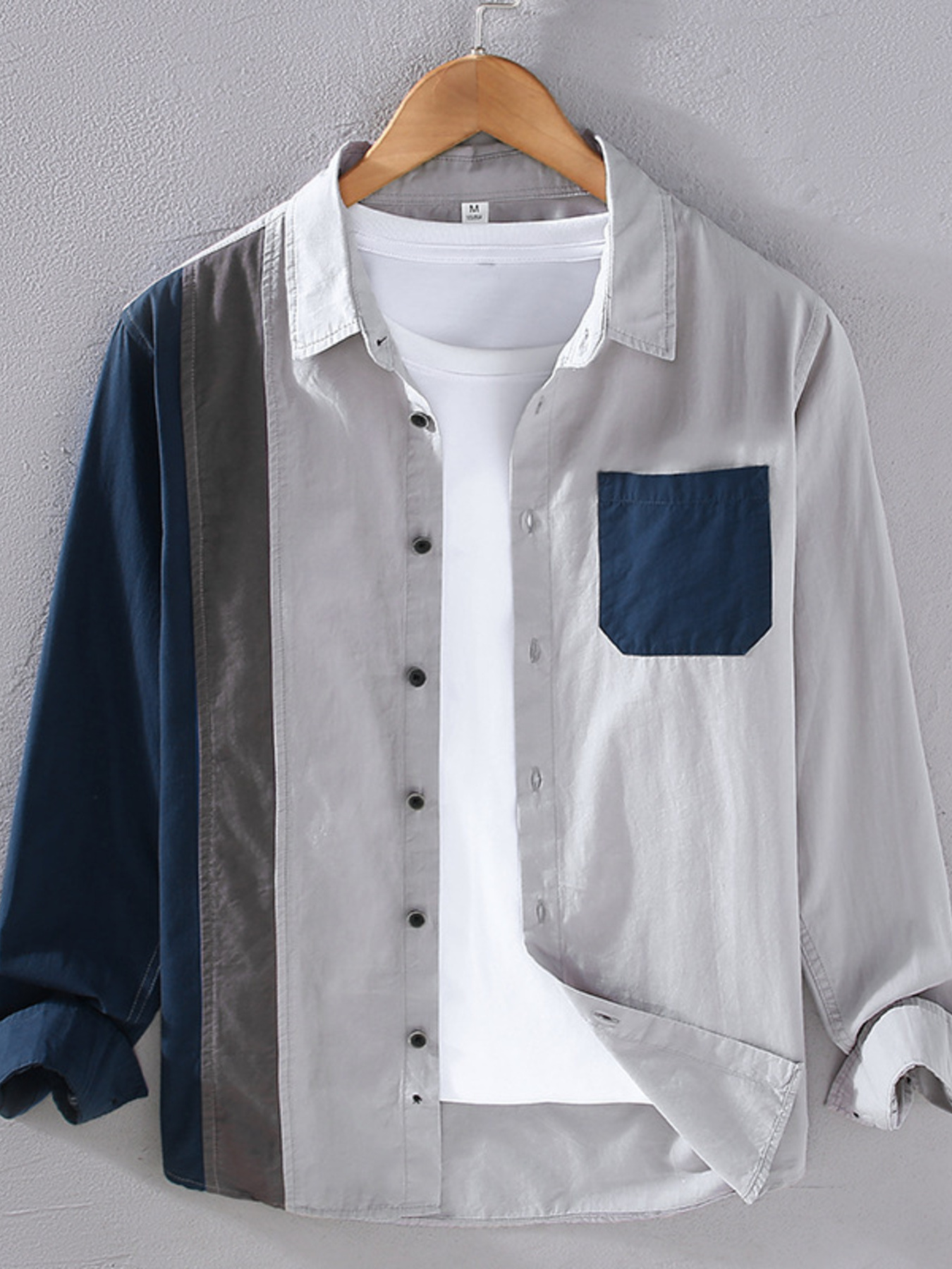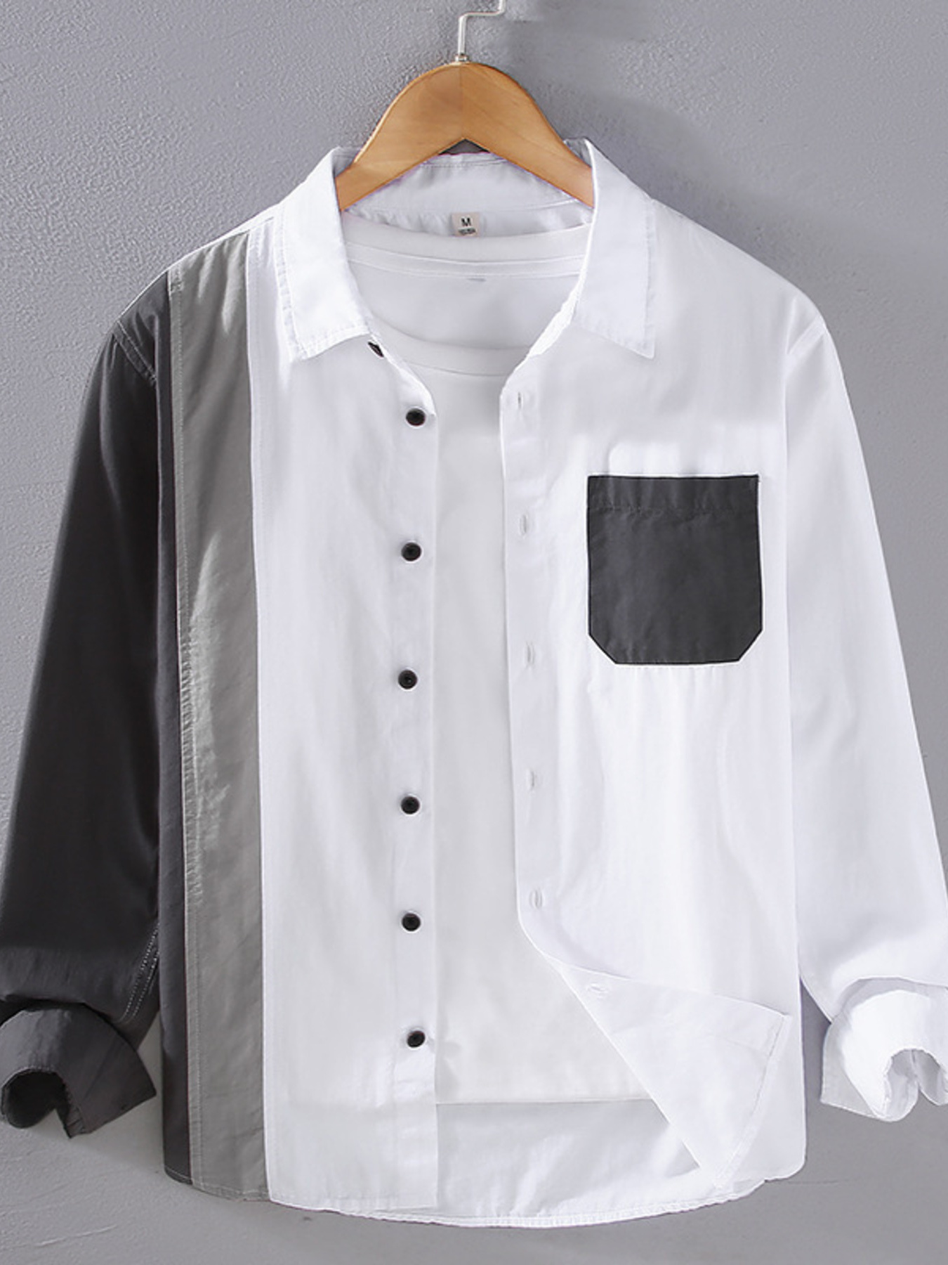 Men's Plus Size Color Block Long Sleeve Shirt