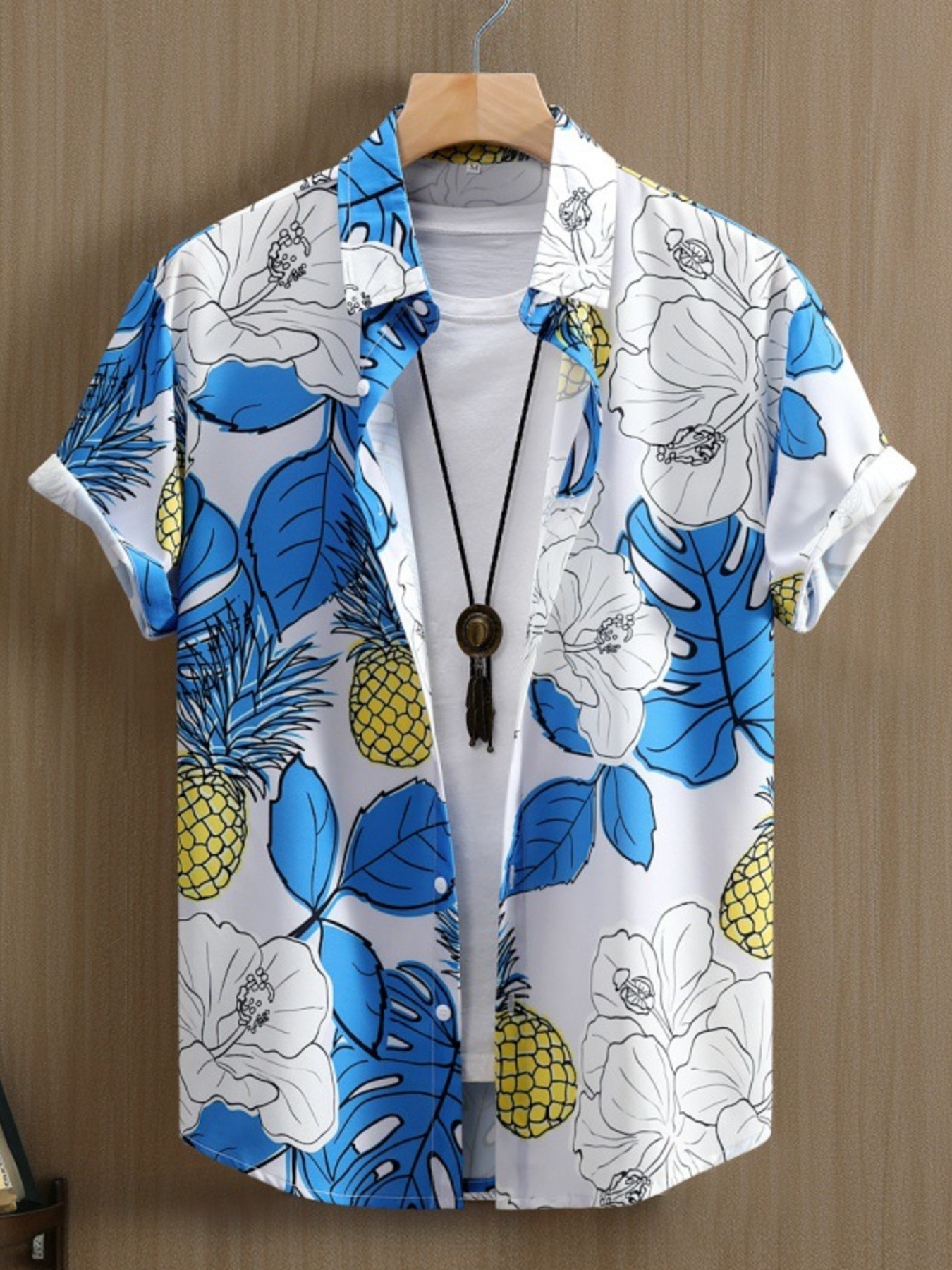 Men's Floral Print Button Up Short Sleeve Shirt