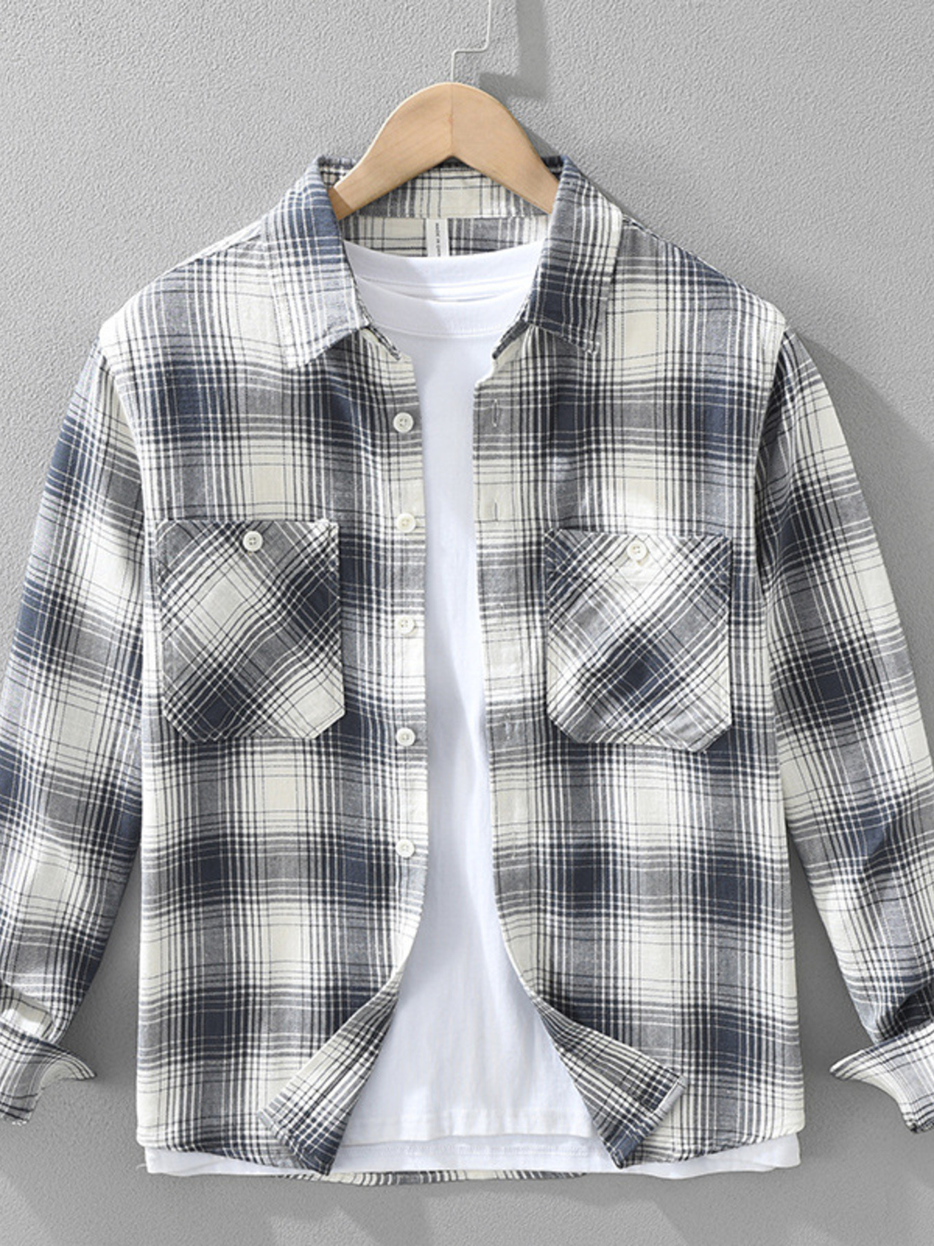 Men's Plus Size Plaid Flannel Shirt with Chest Pockets