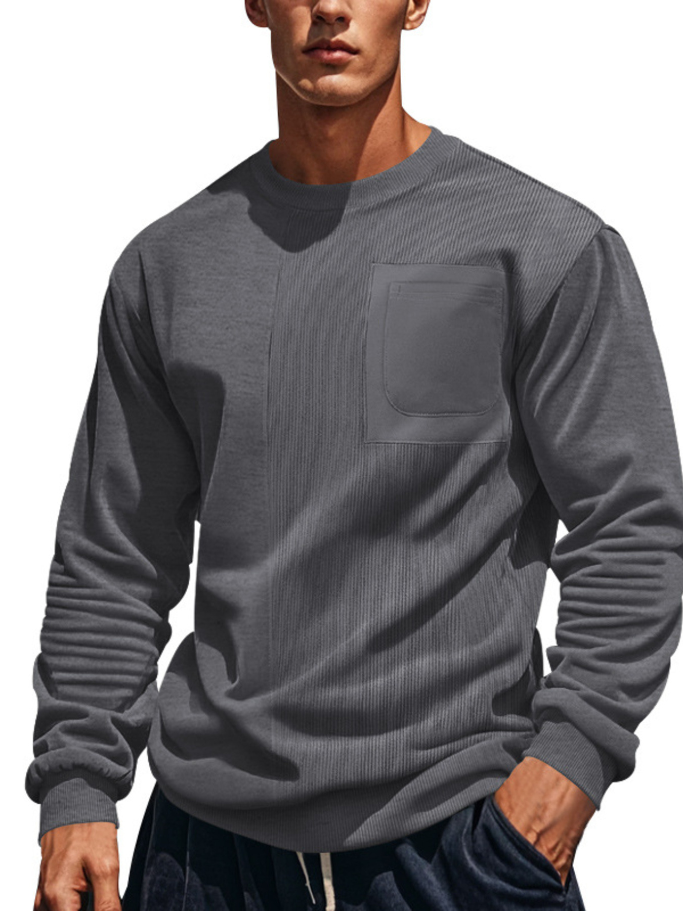 Men's Full Size Round Neck Long Sleeve Sweatshirt Plus Size
