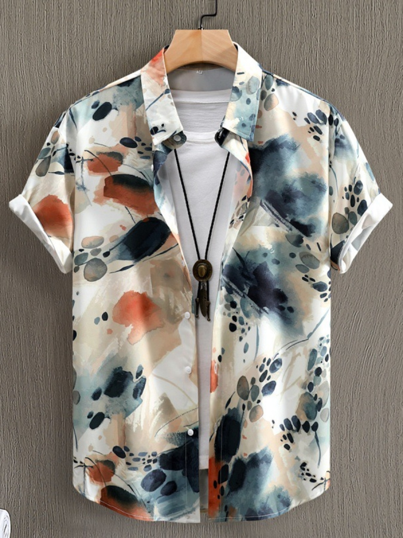 Men's Printed Button Up Short Sleeve Shirt