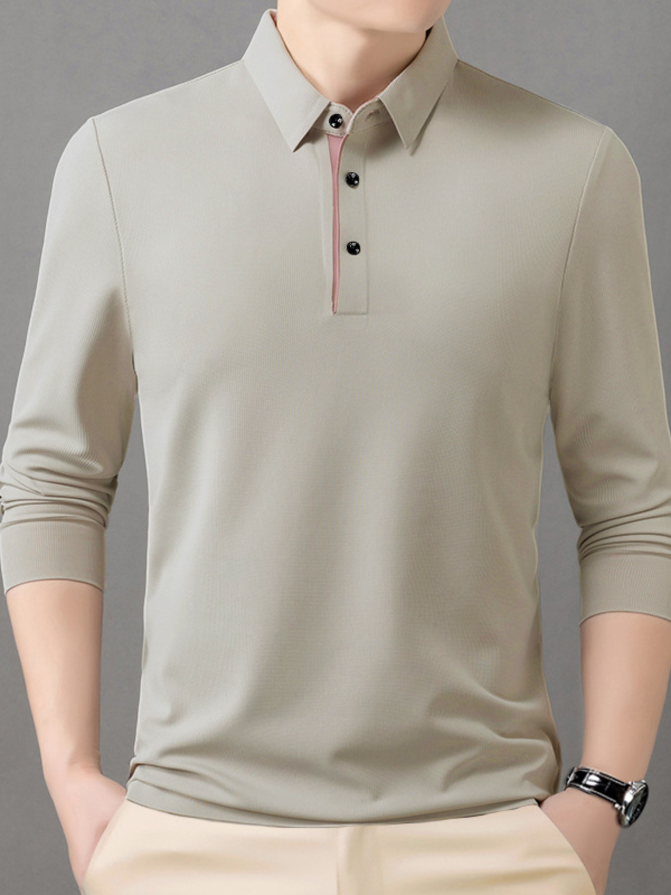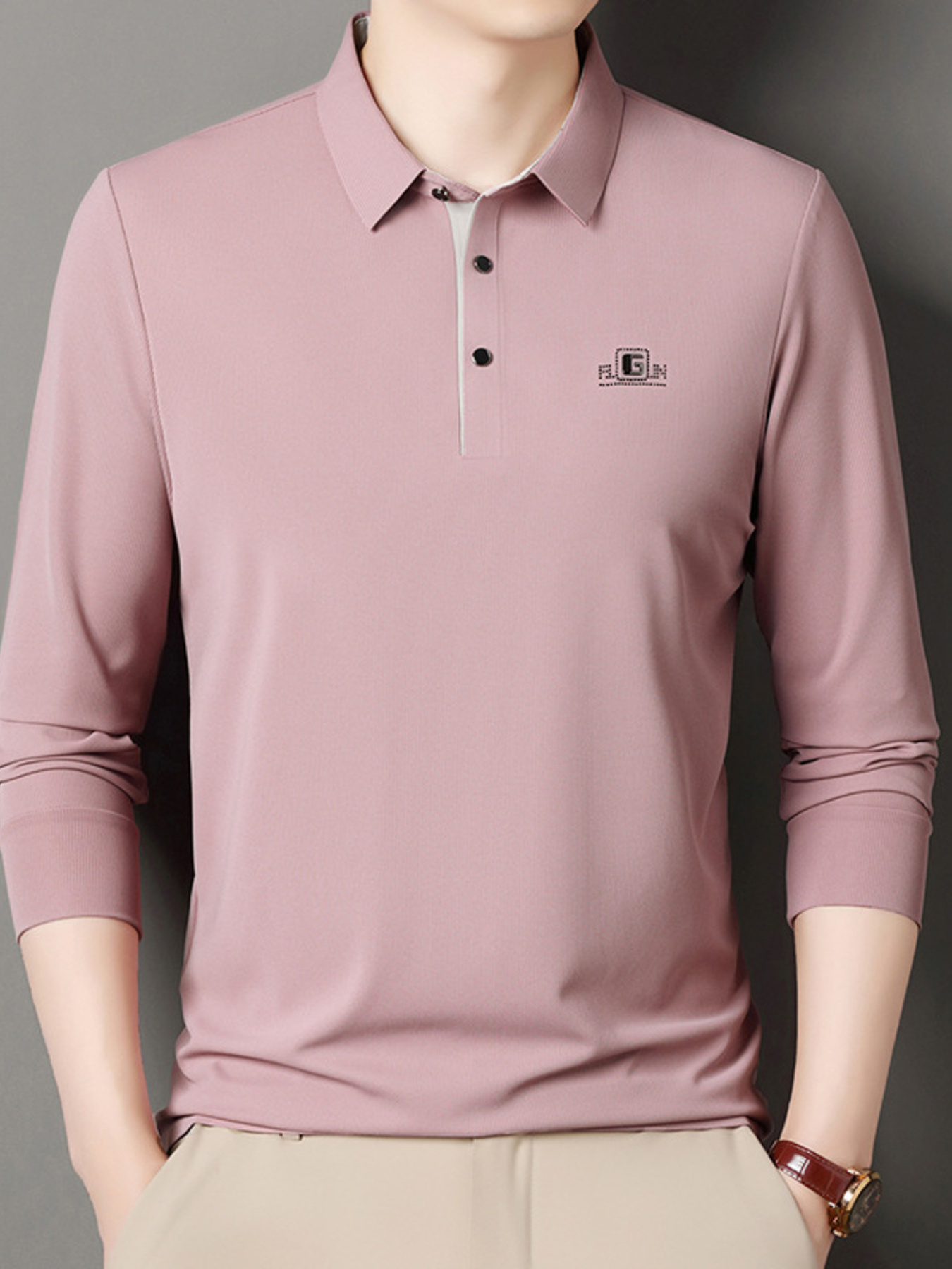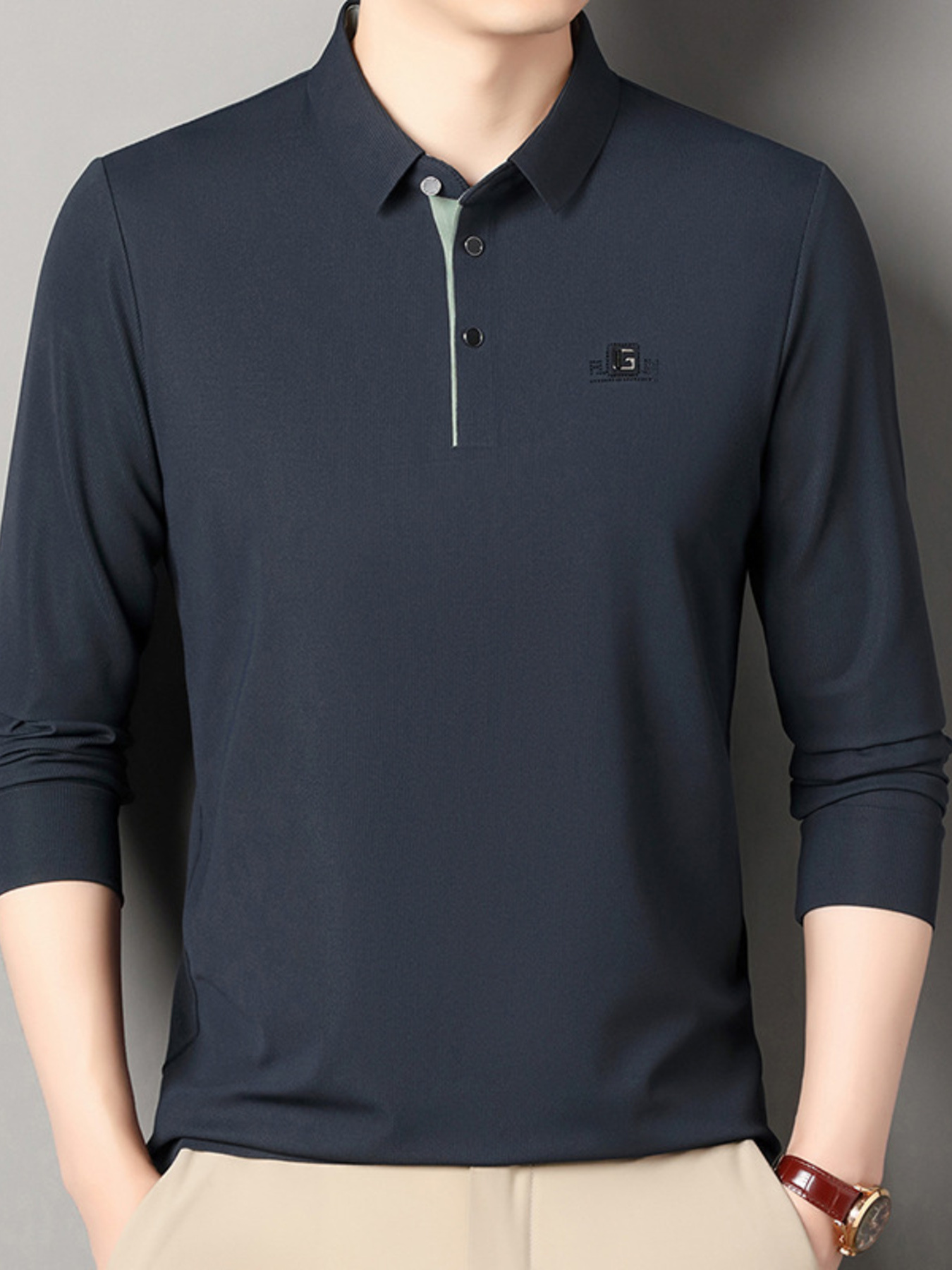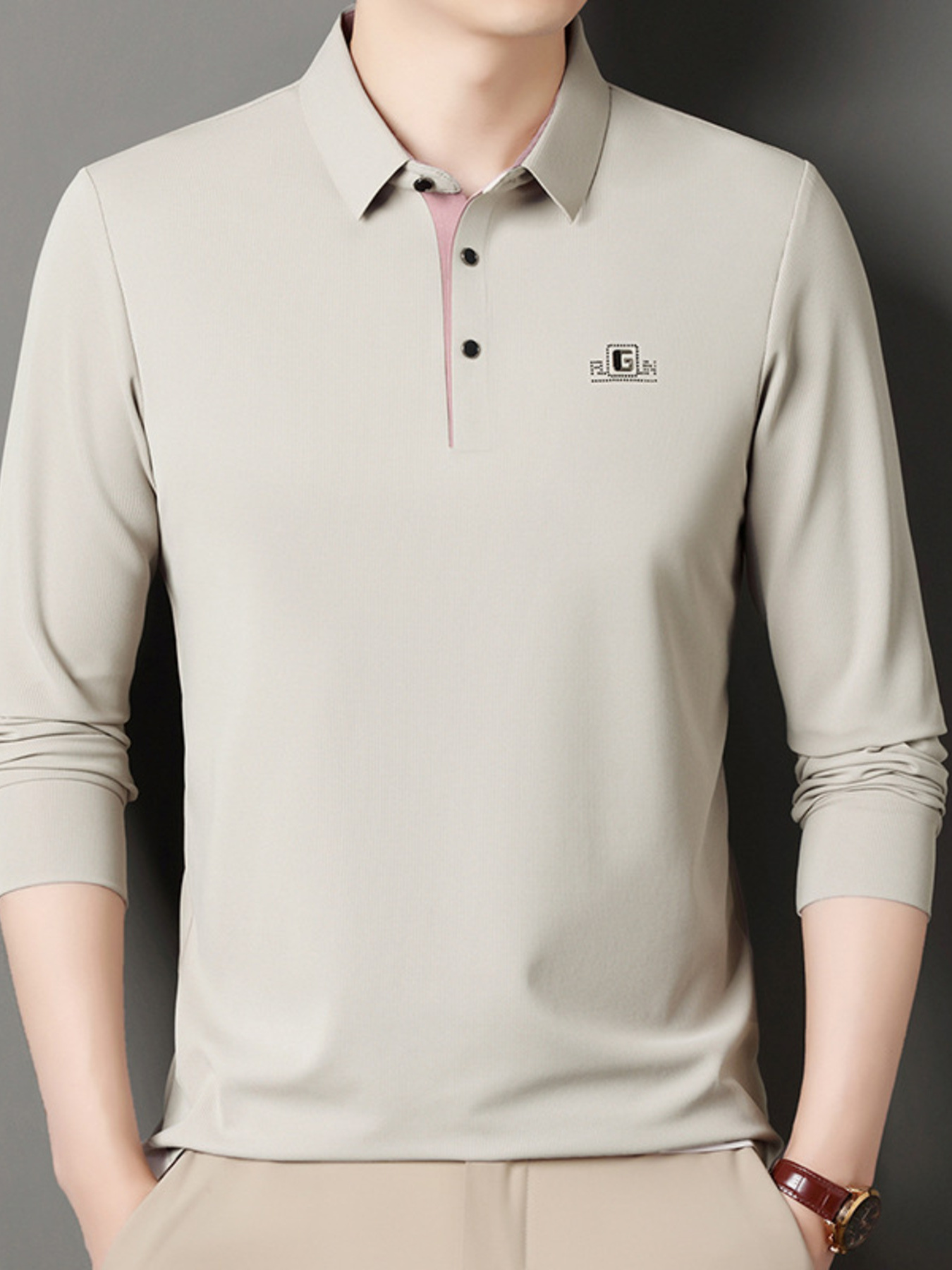 Men's Plus Size Collared Neck Long Sleeve Polo