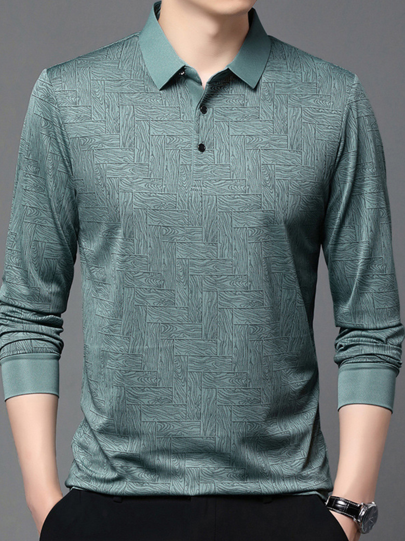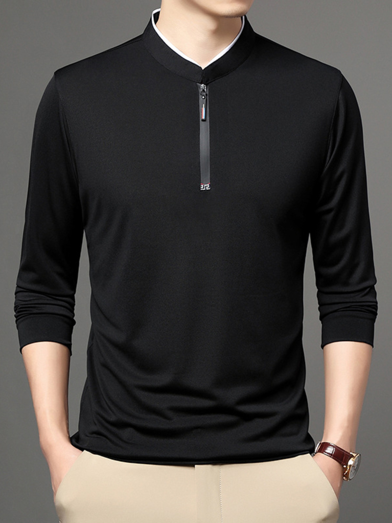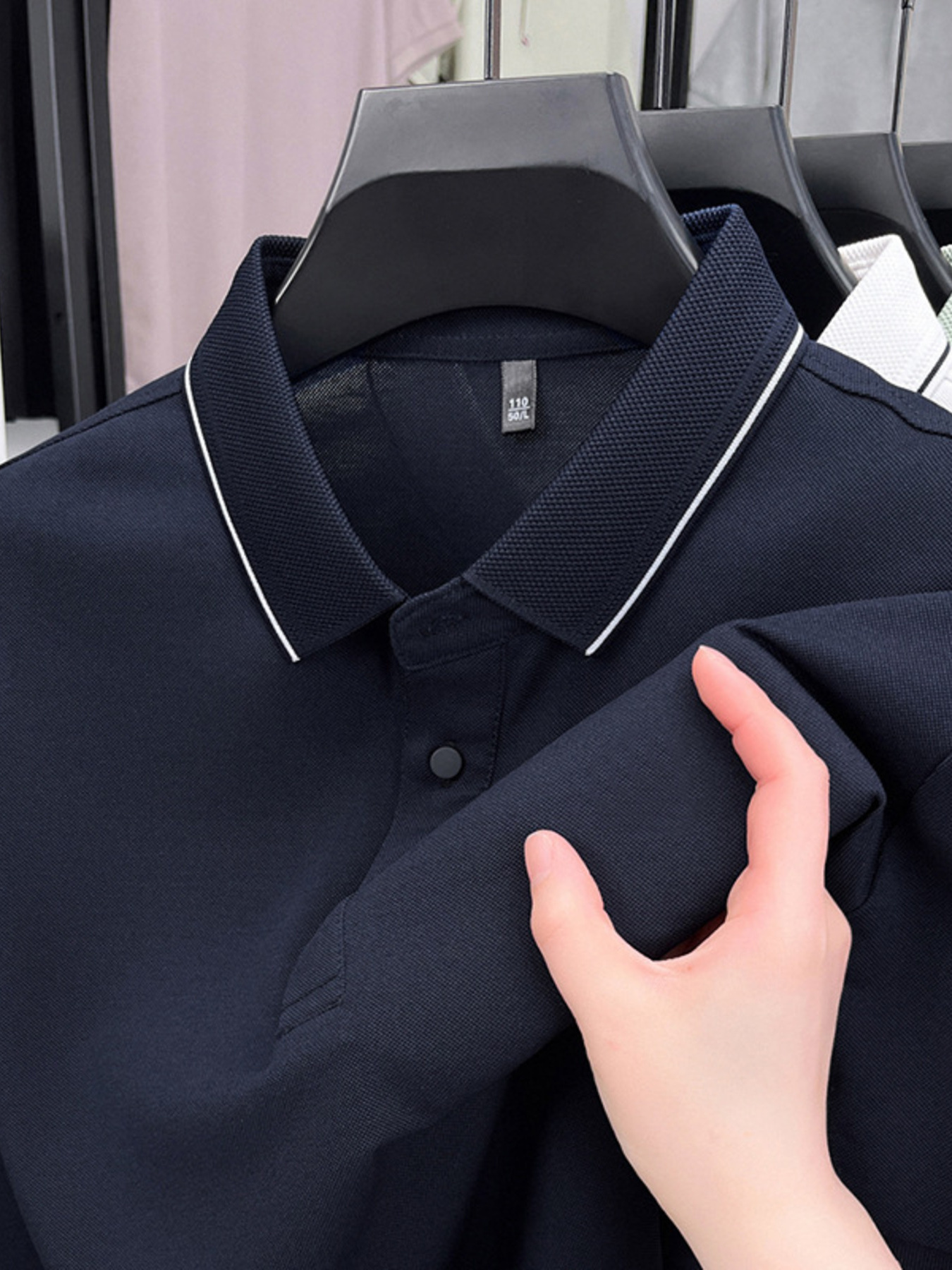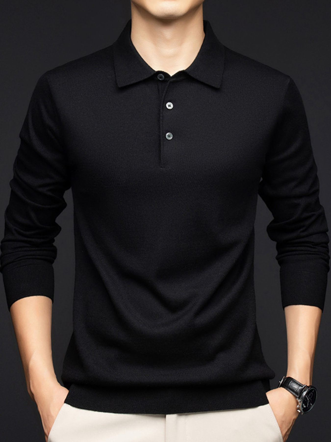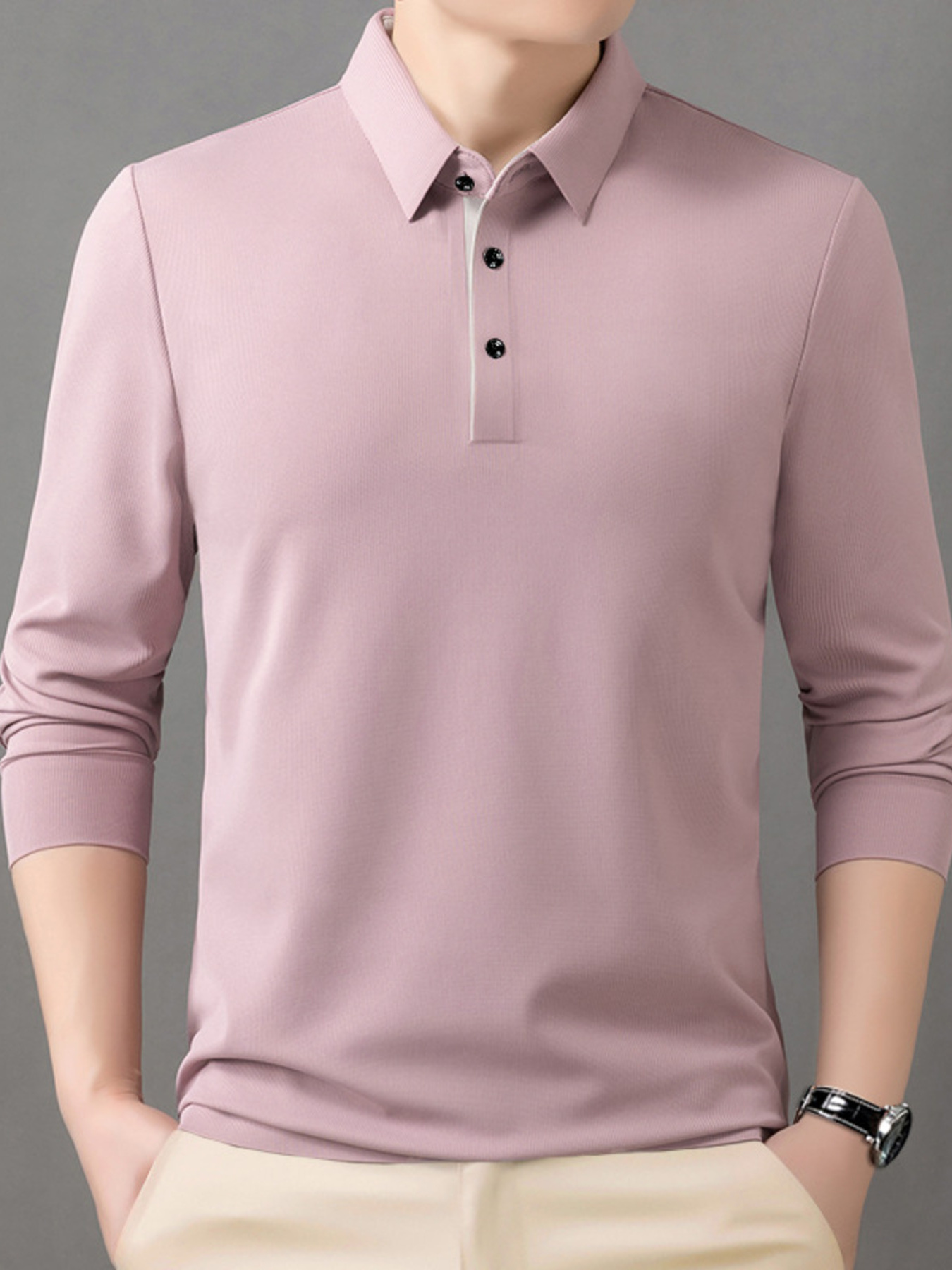 Men's Plus Size Collared Neck Long Sleeve Polo