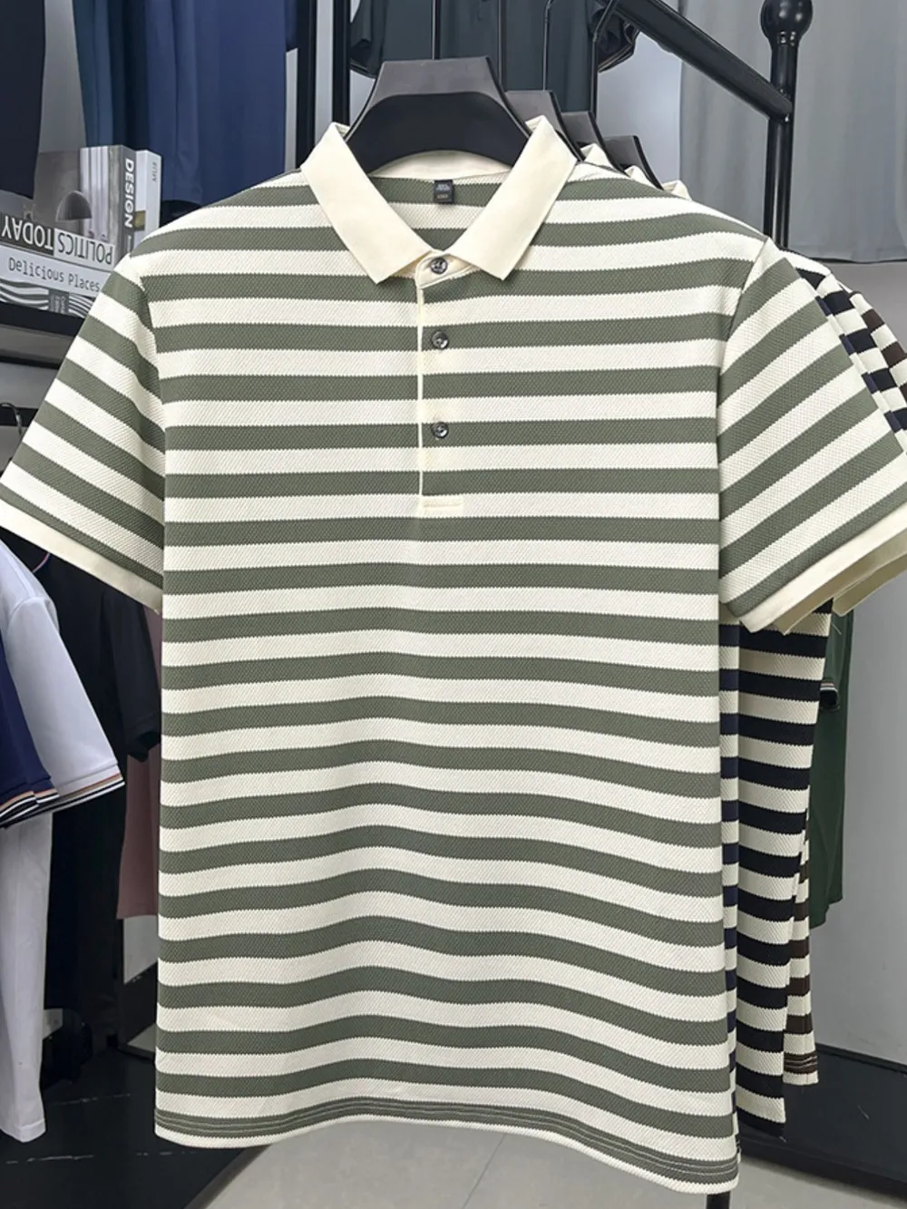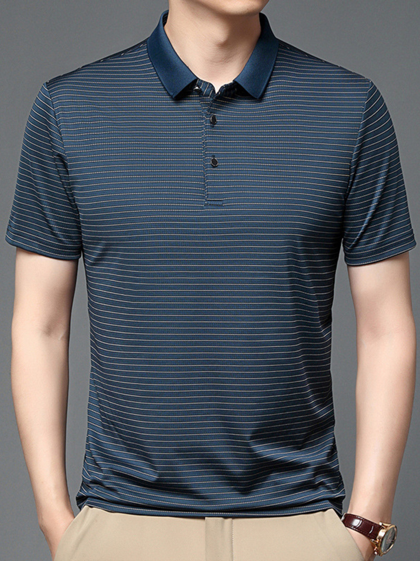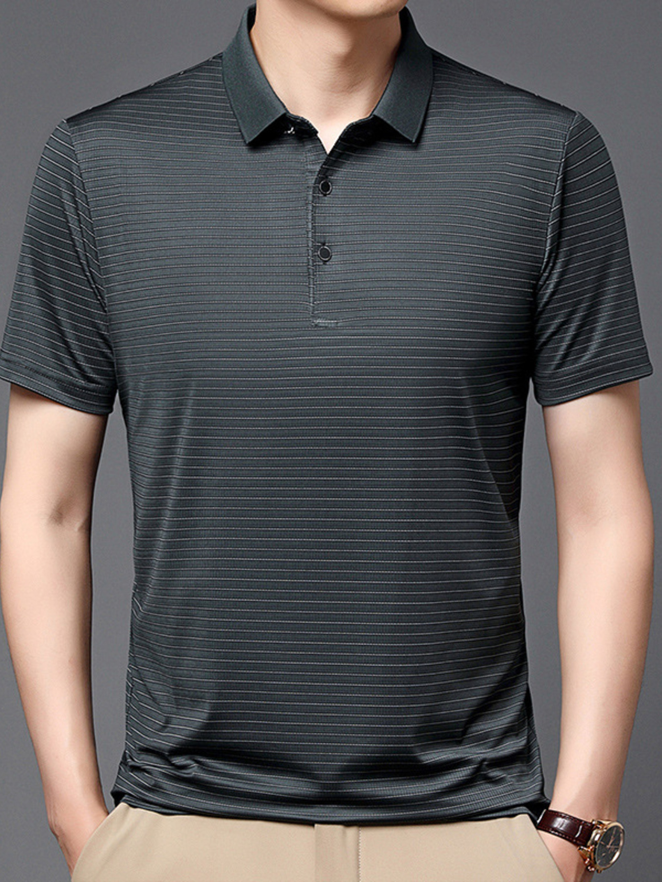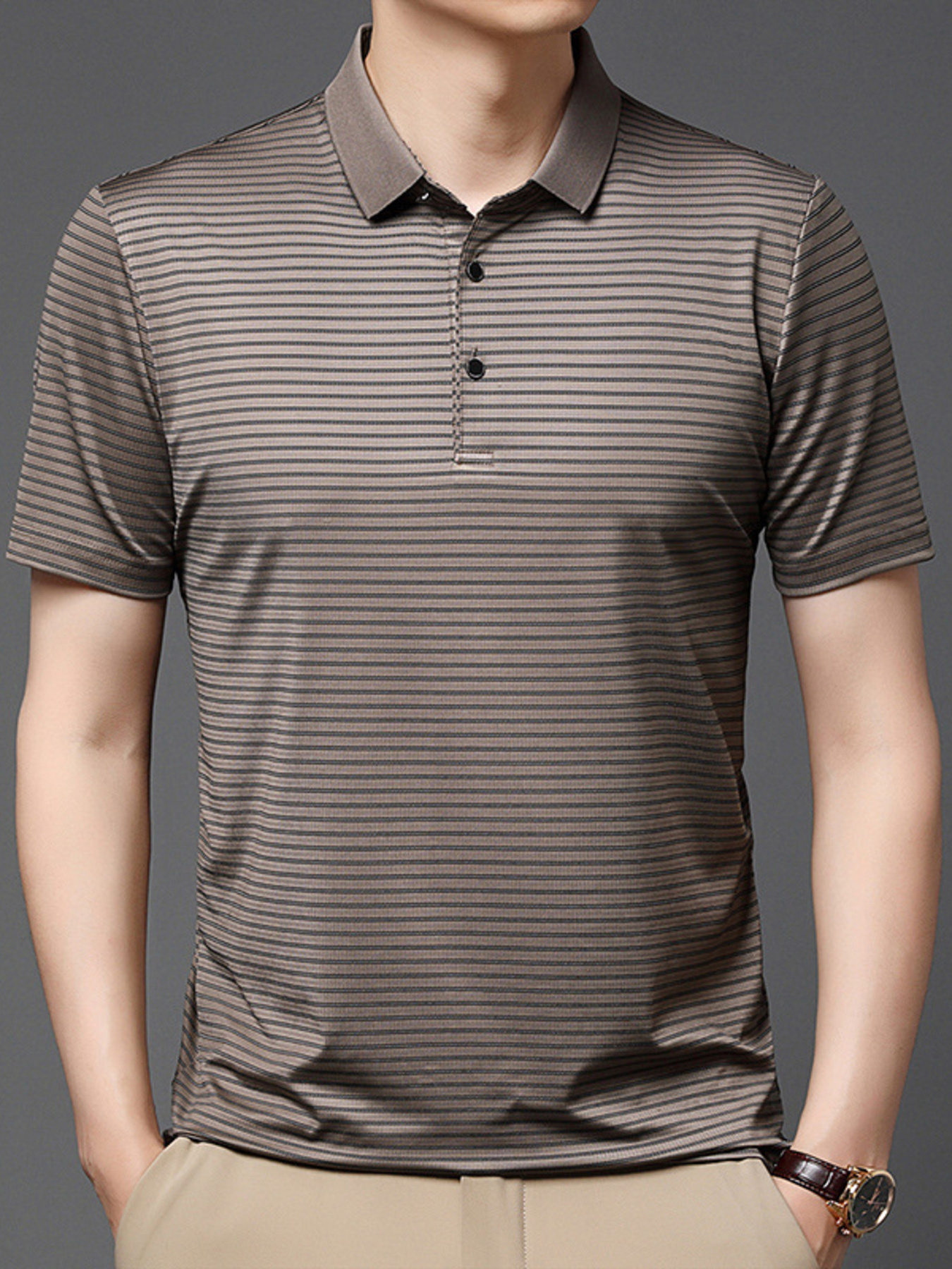 Men's Full Size Striped Short Sleeve Polo Plus Size