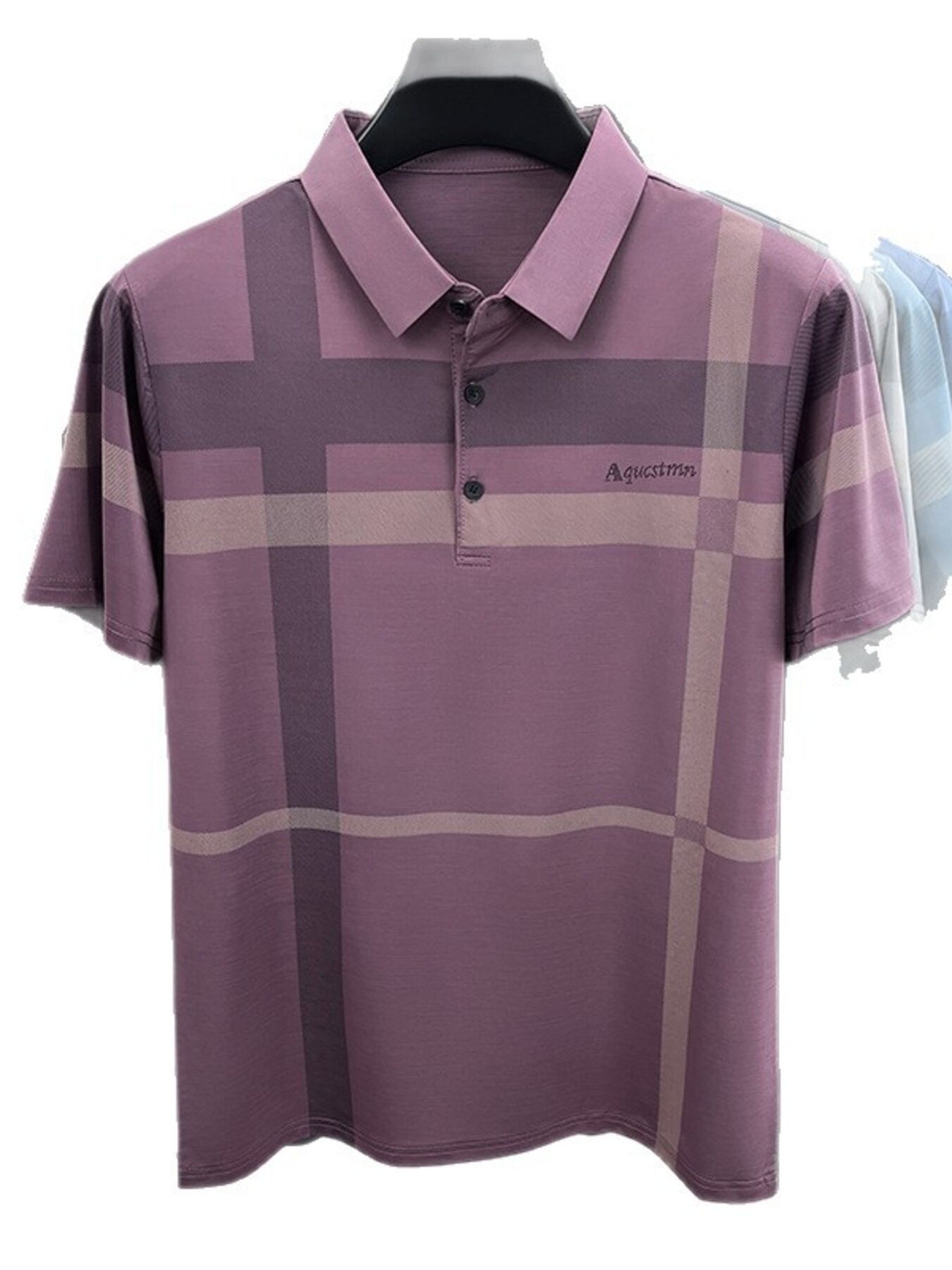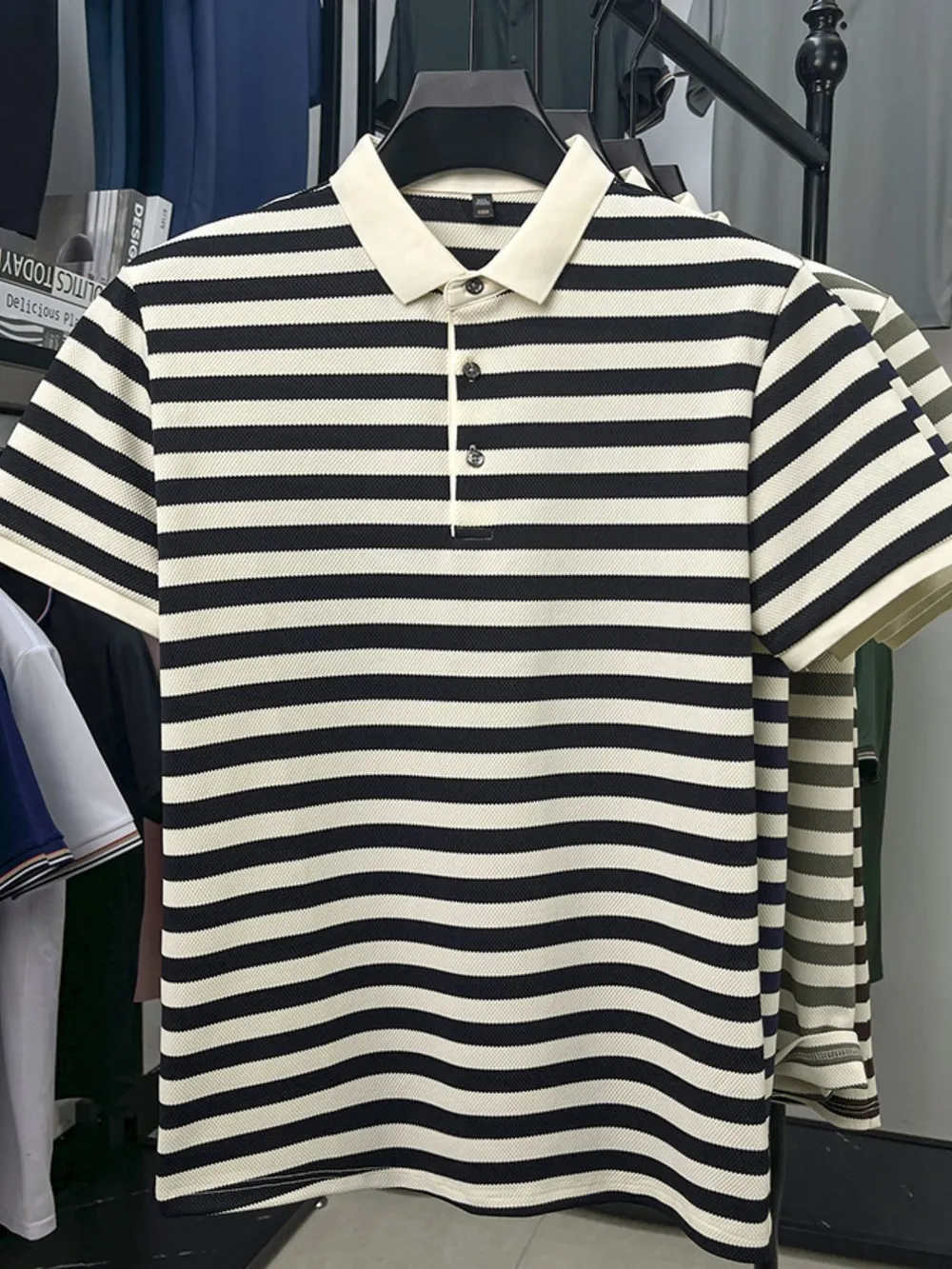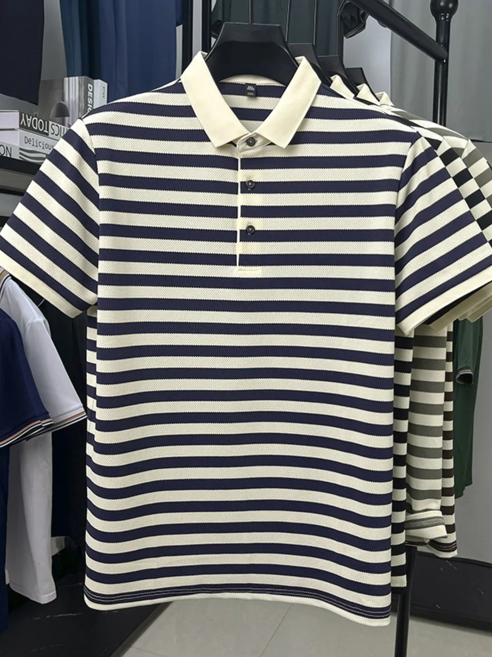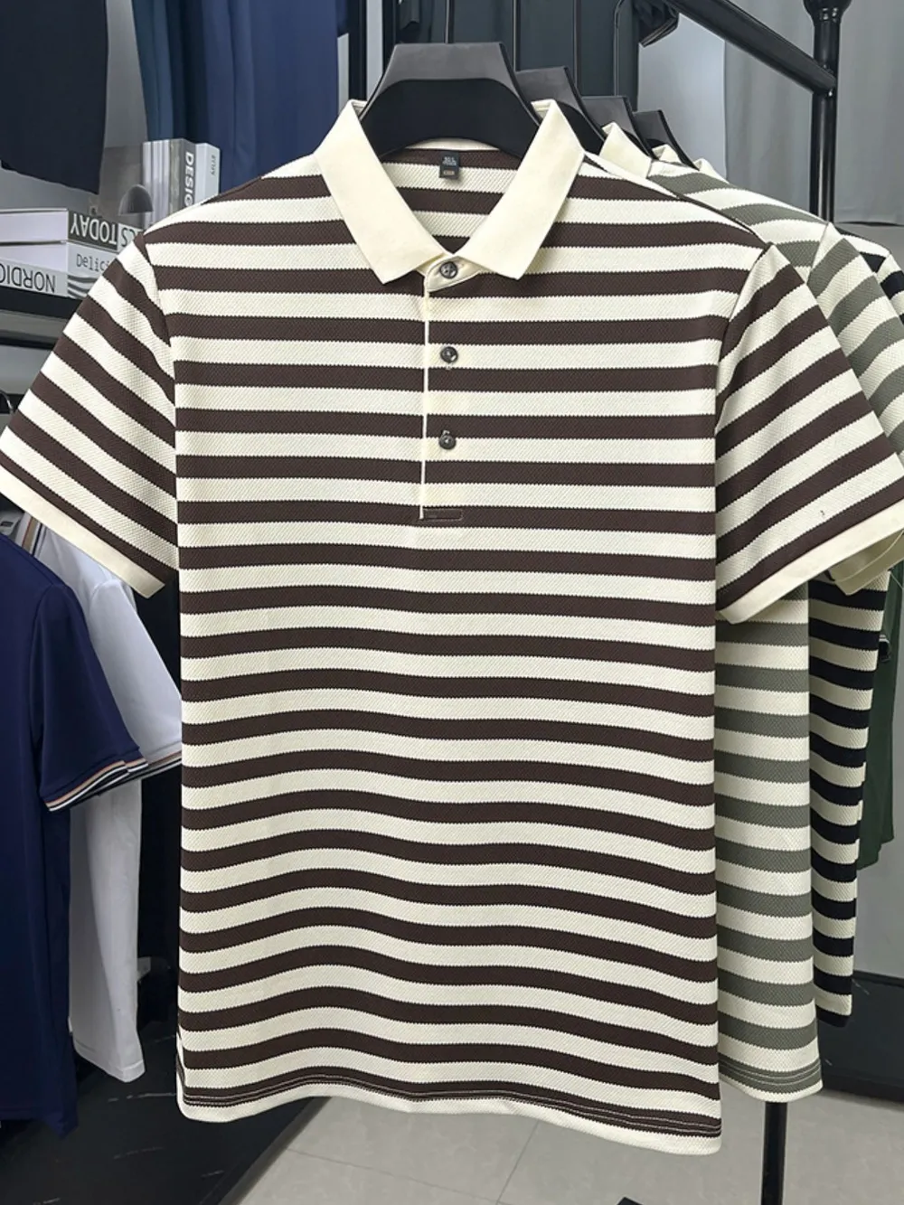 Men's Full Size Striped Short Sleeve Polo Plus Size