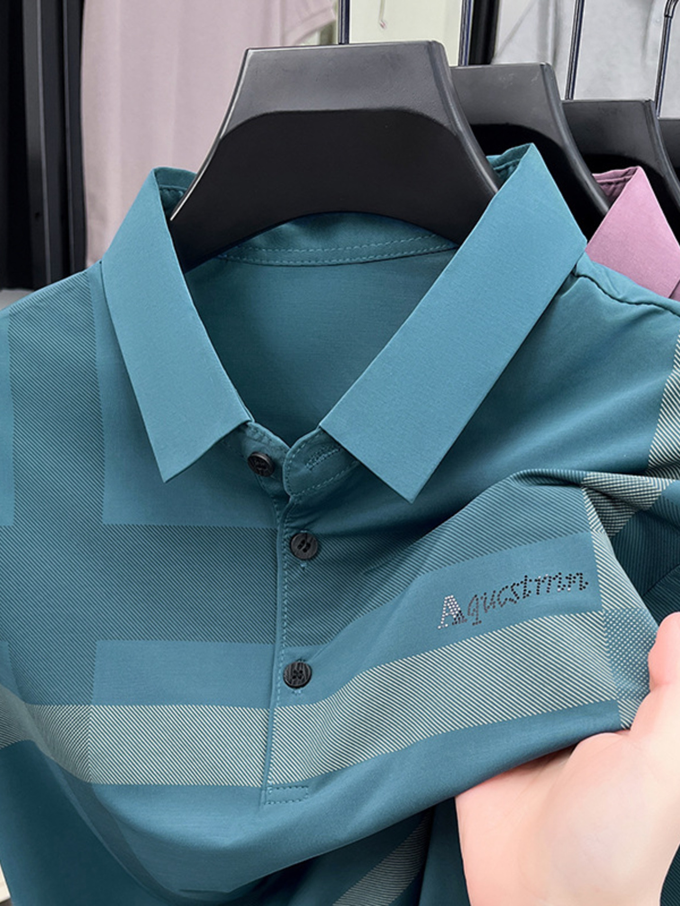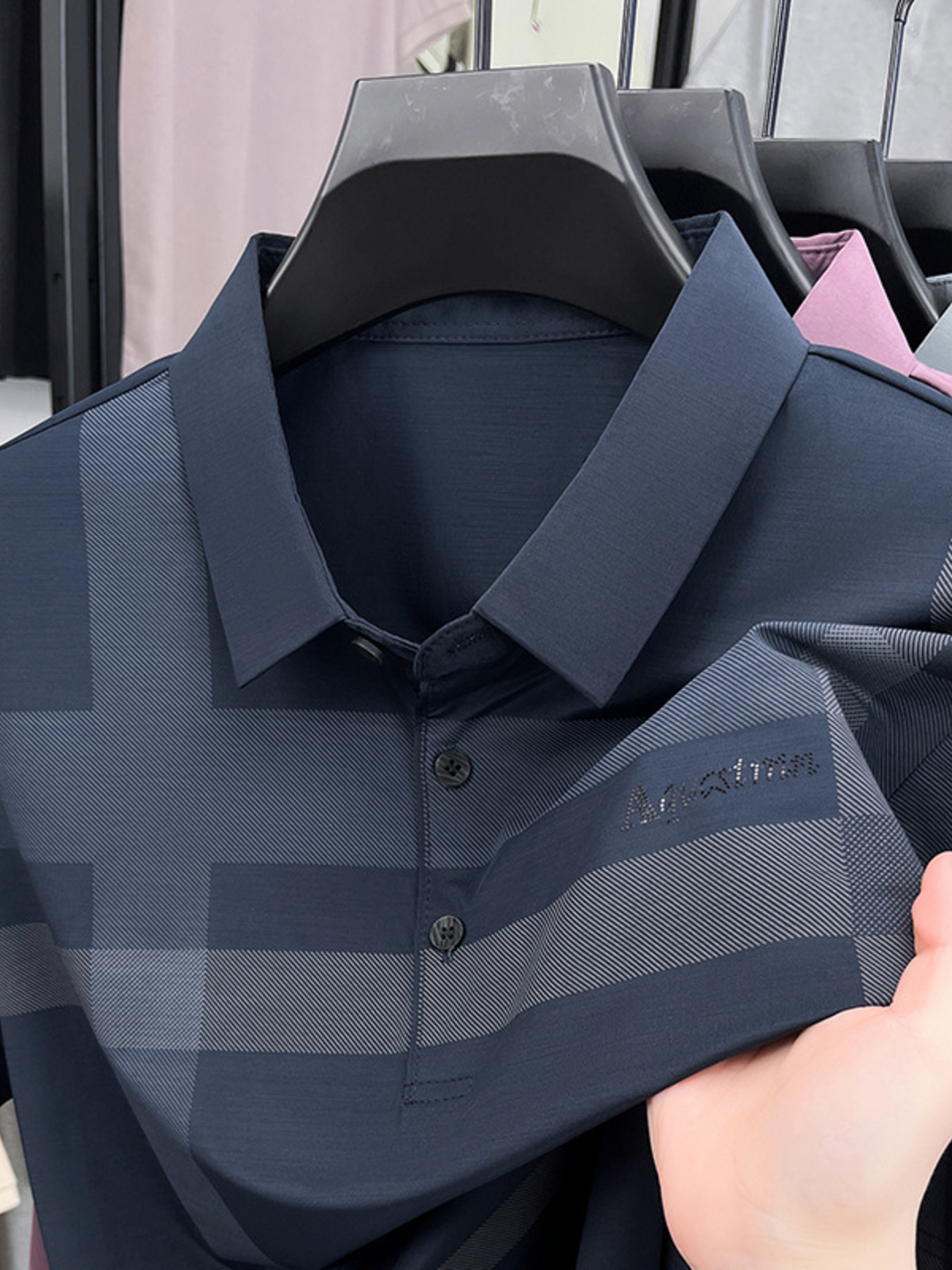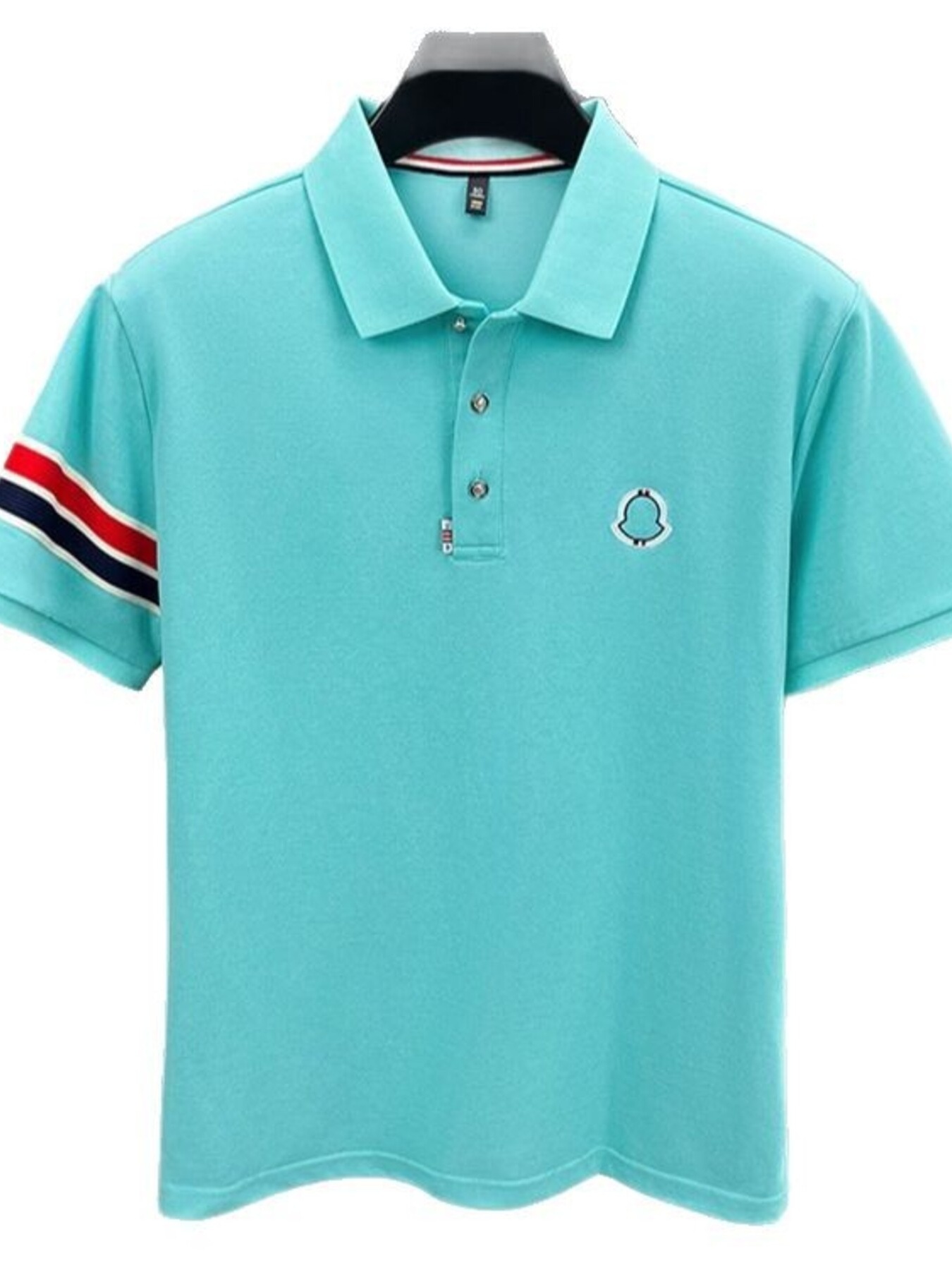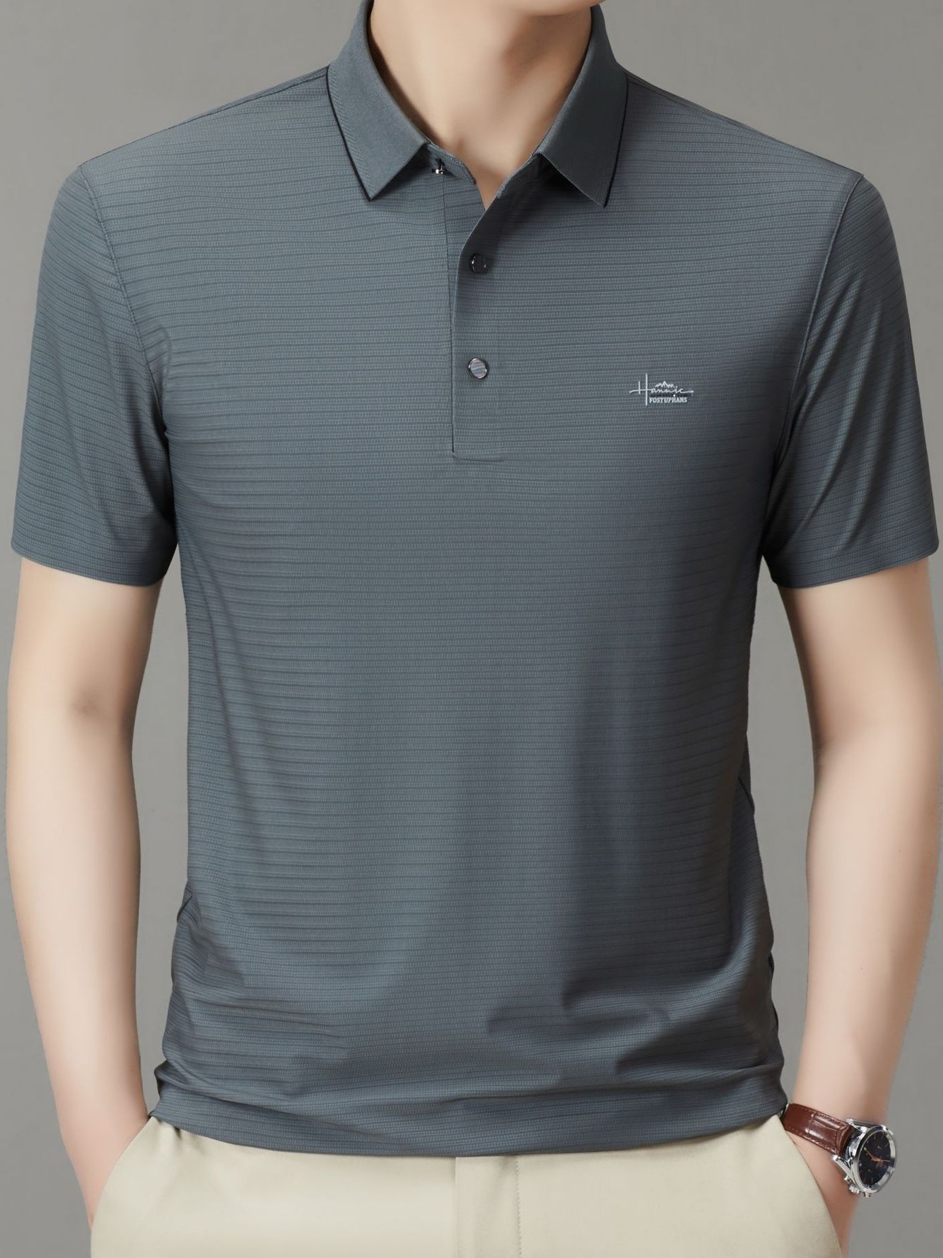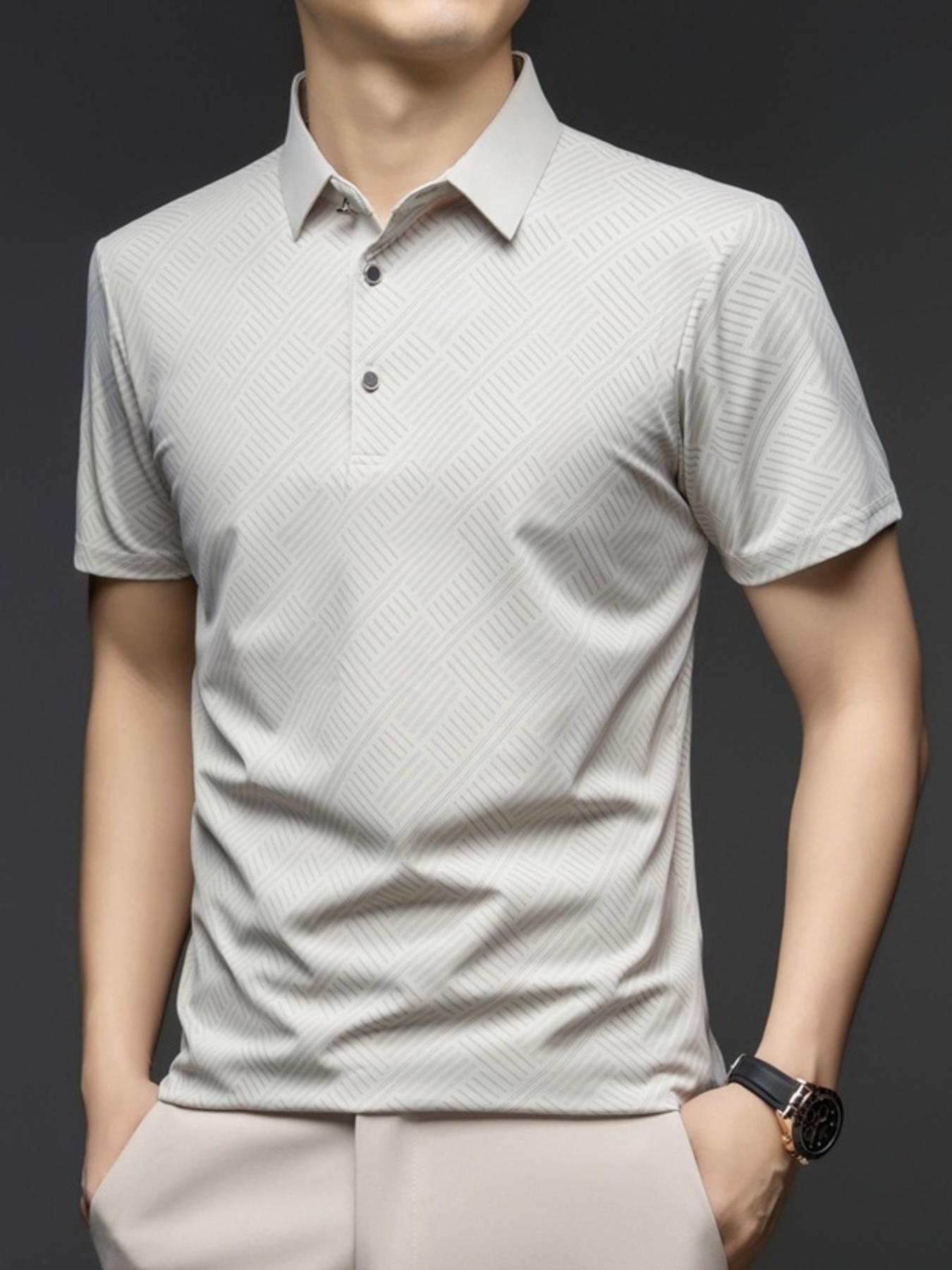 Men's Full Size Striped Short Sleeve Polo Plus Size