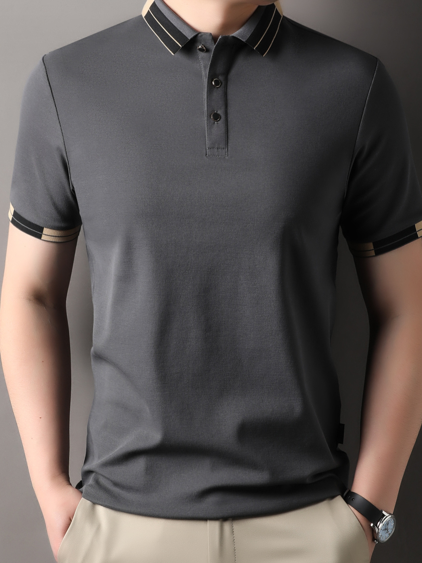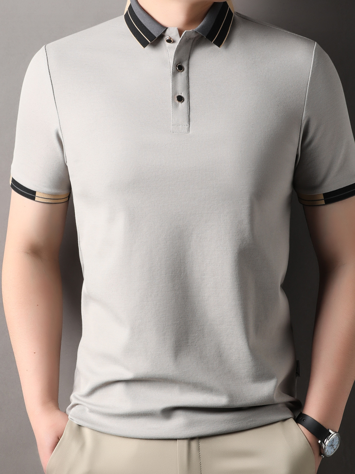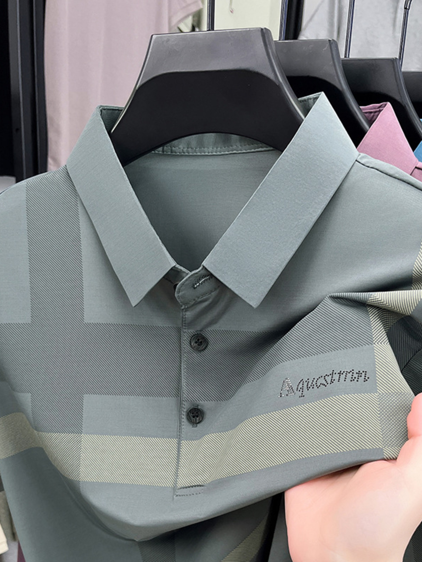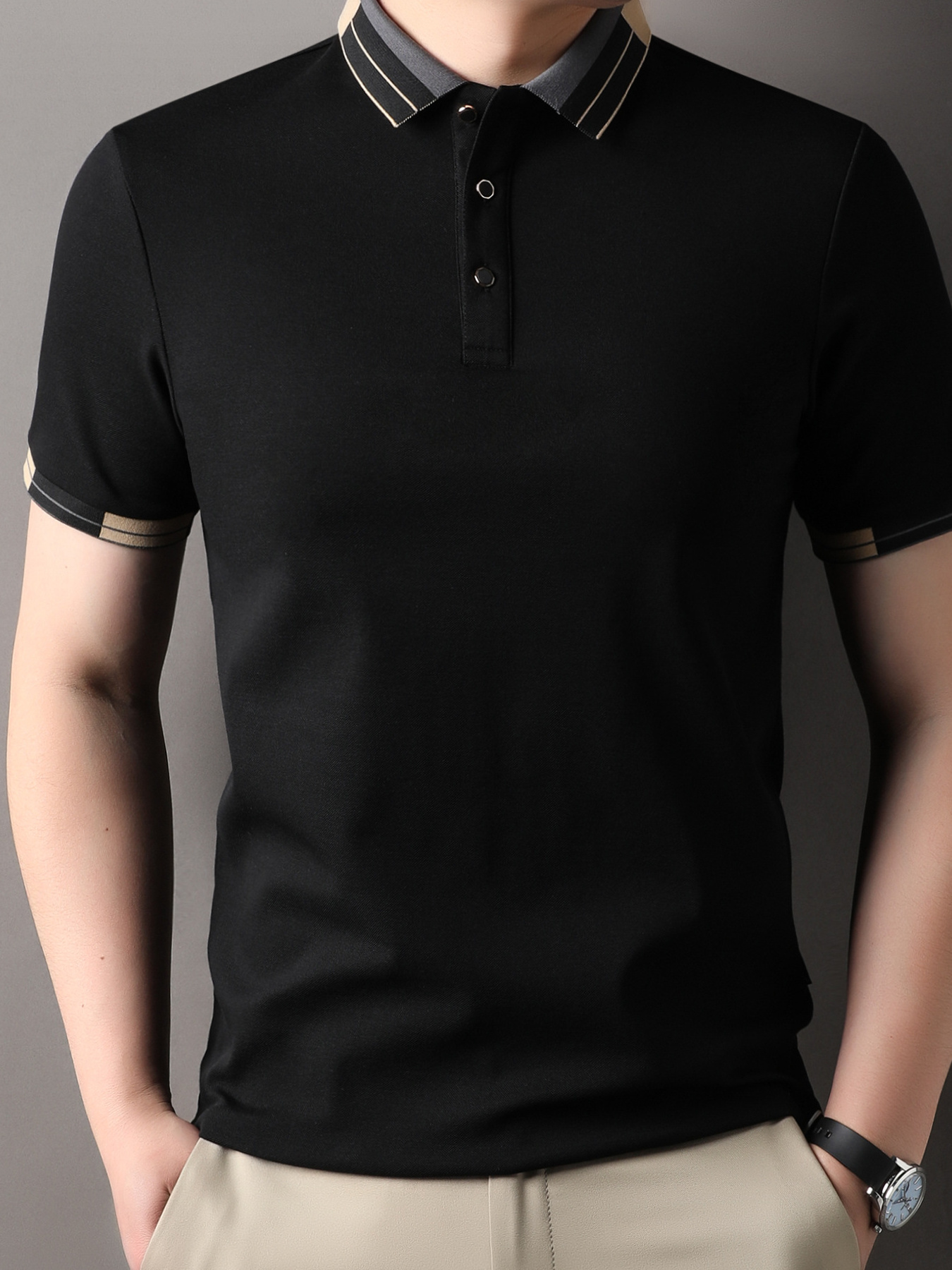 Men's Full Size Striped Short Sleeve Polo Plus Size