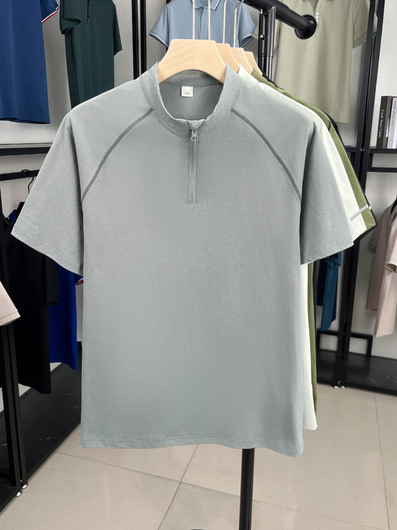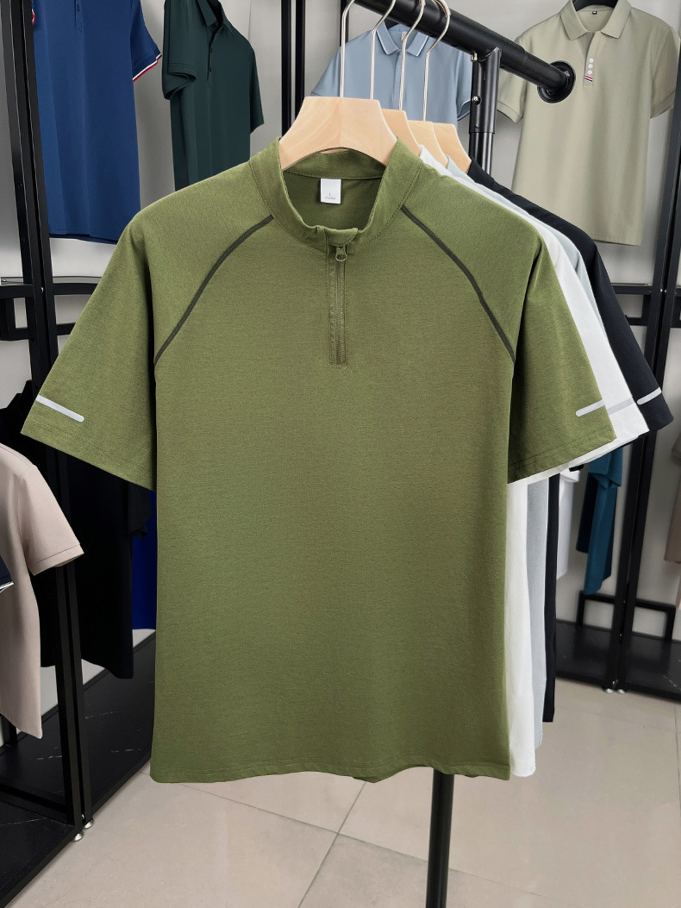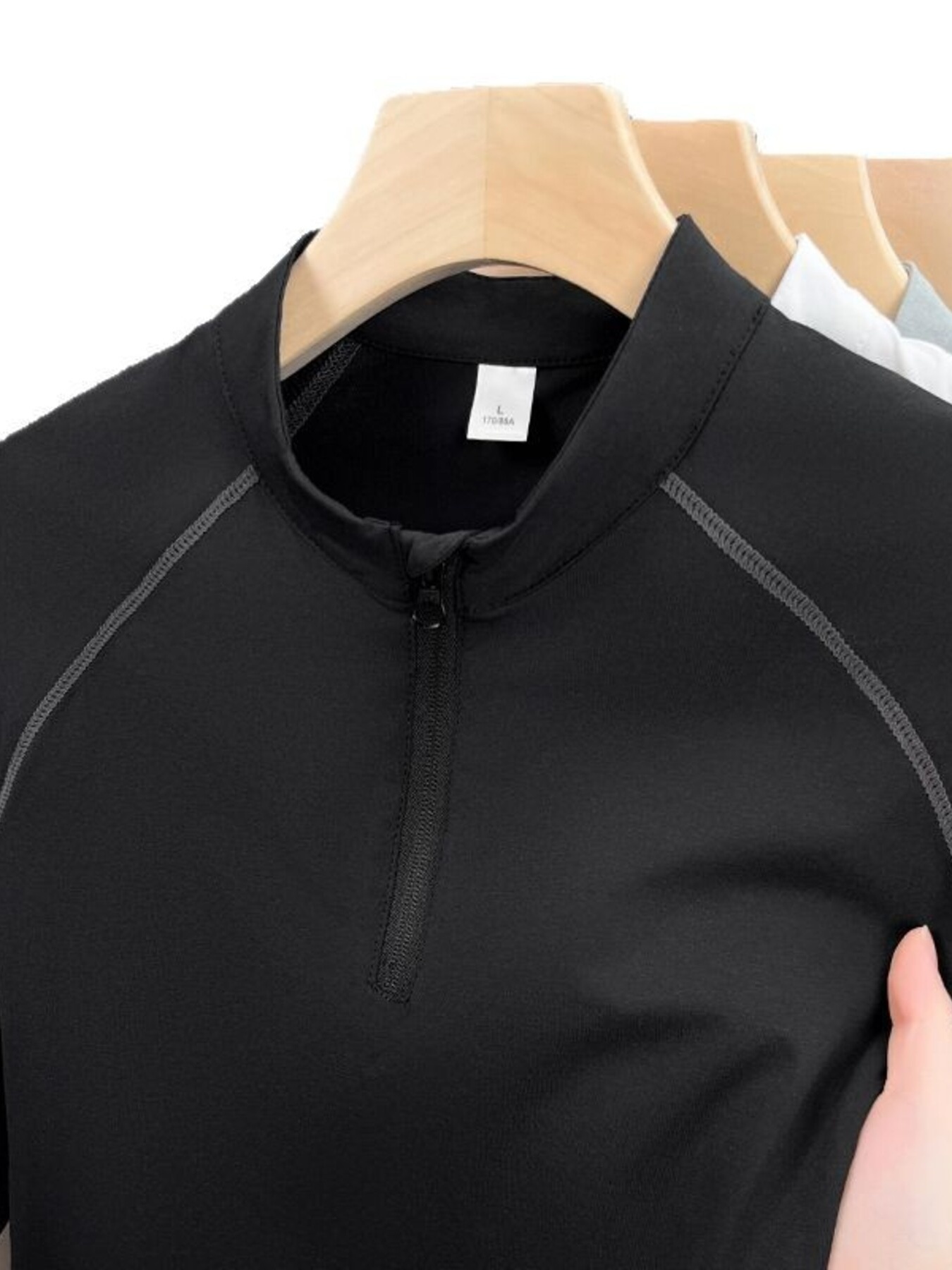 Men's Plus Size Quarter Zip Short Sleeve Top