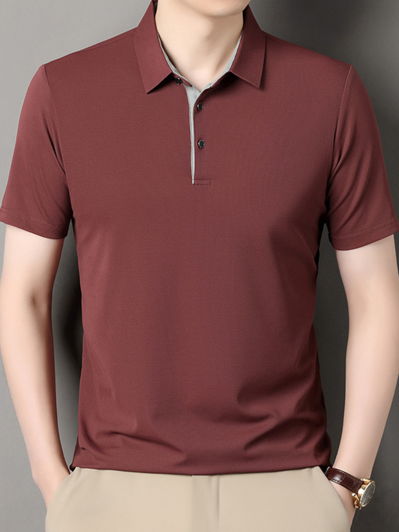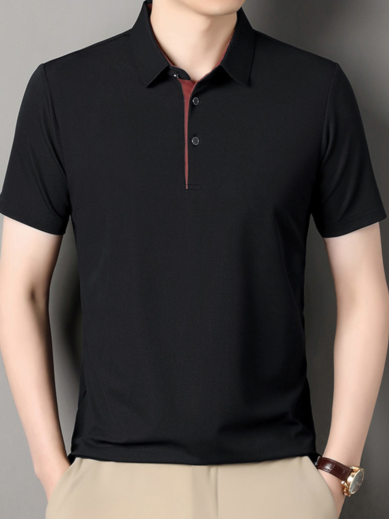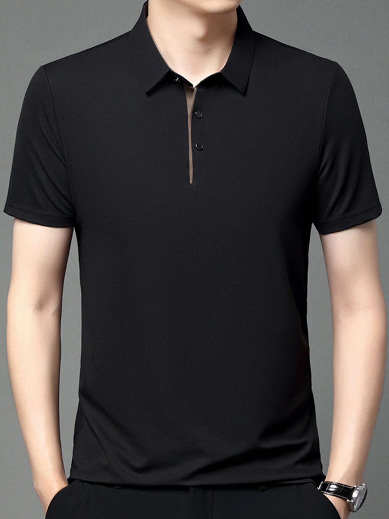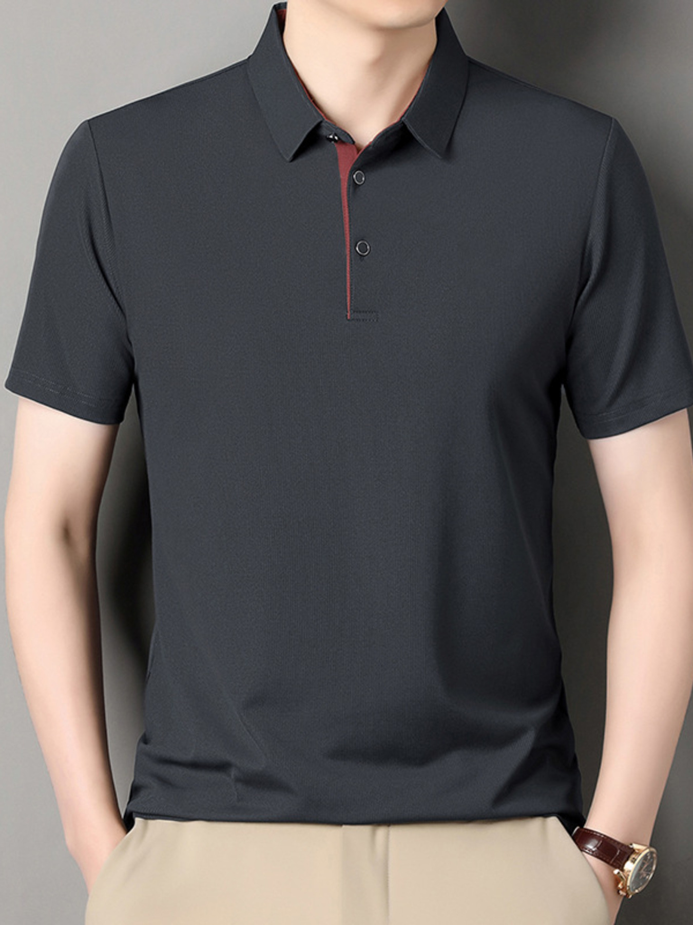 Men's Full Size Button Detail Short Sleeve Polo Plus Size