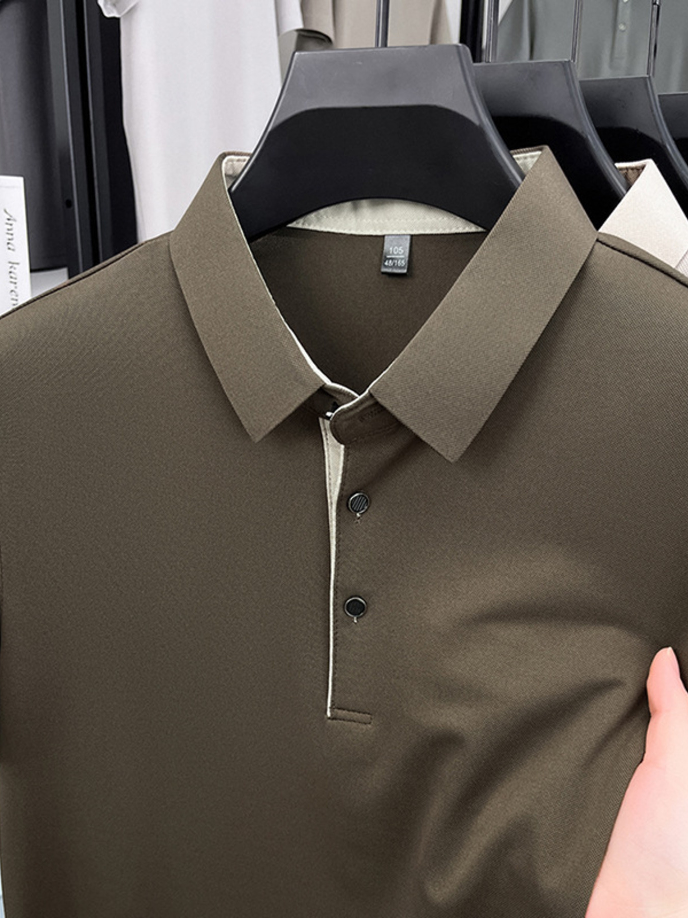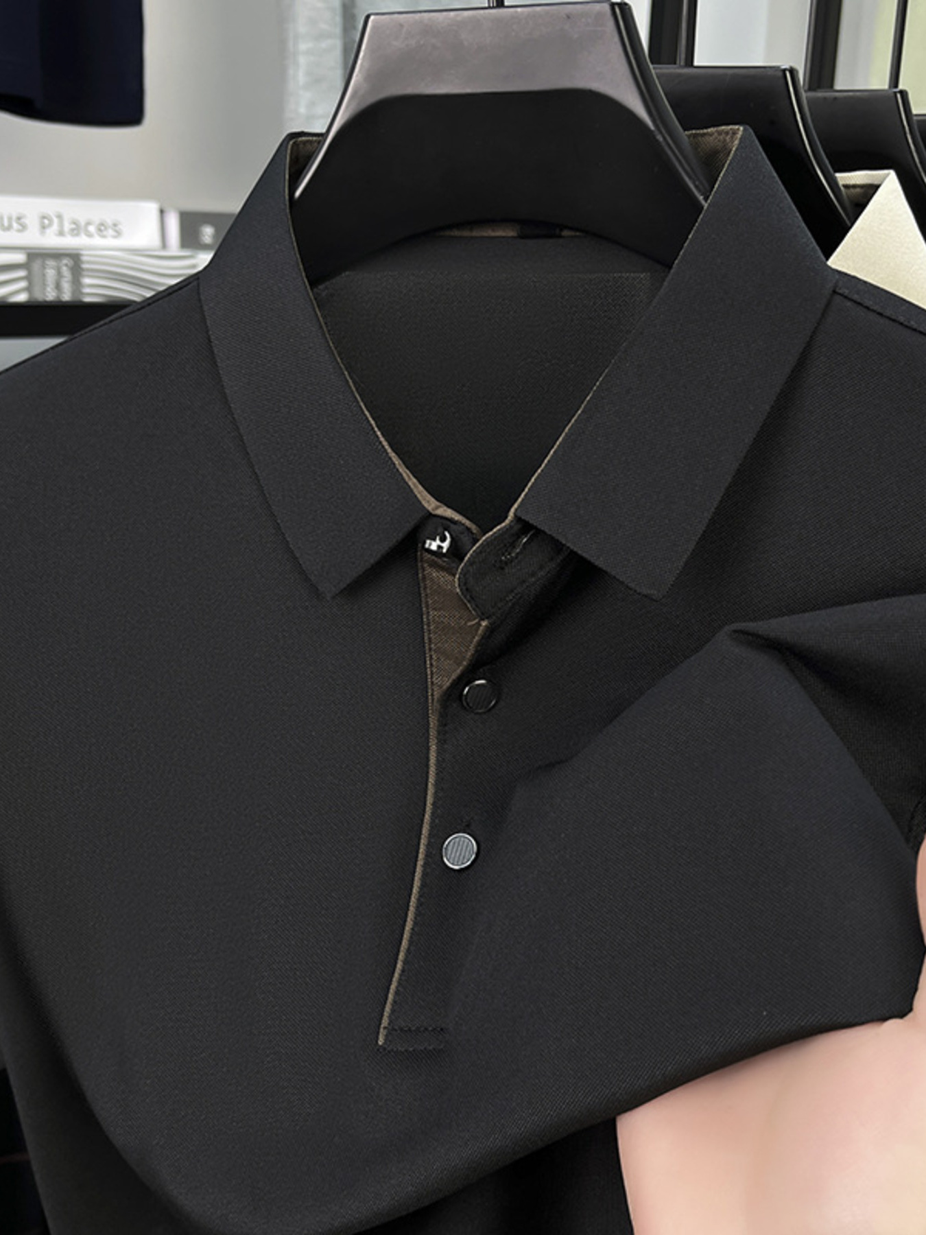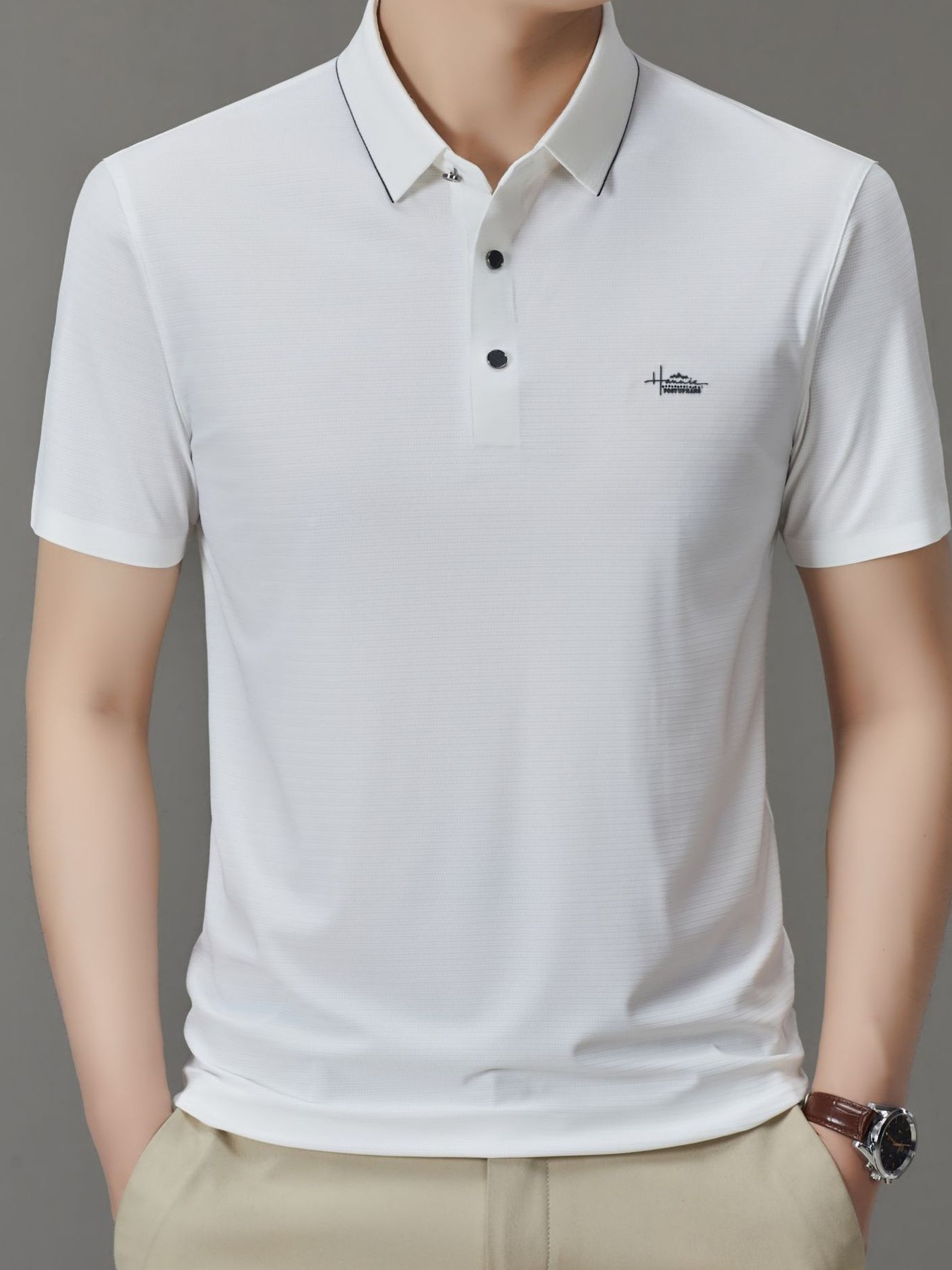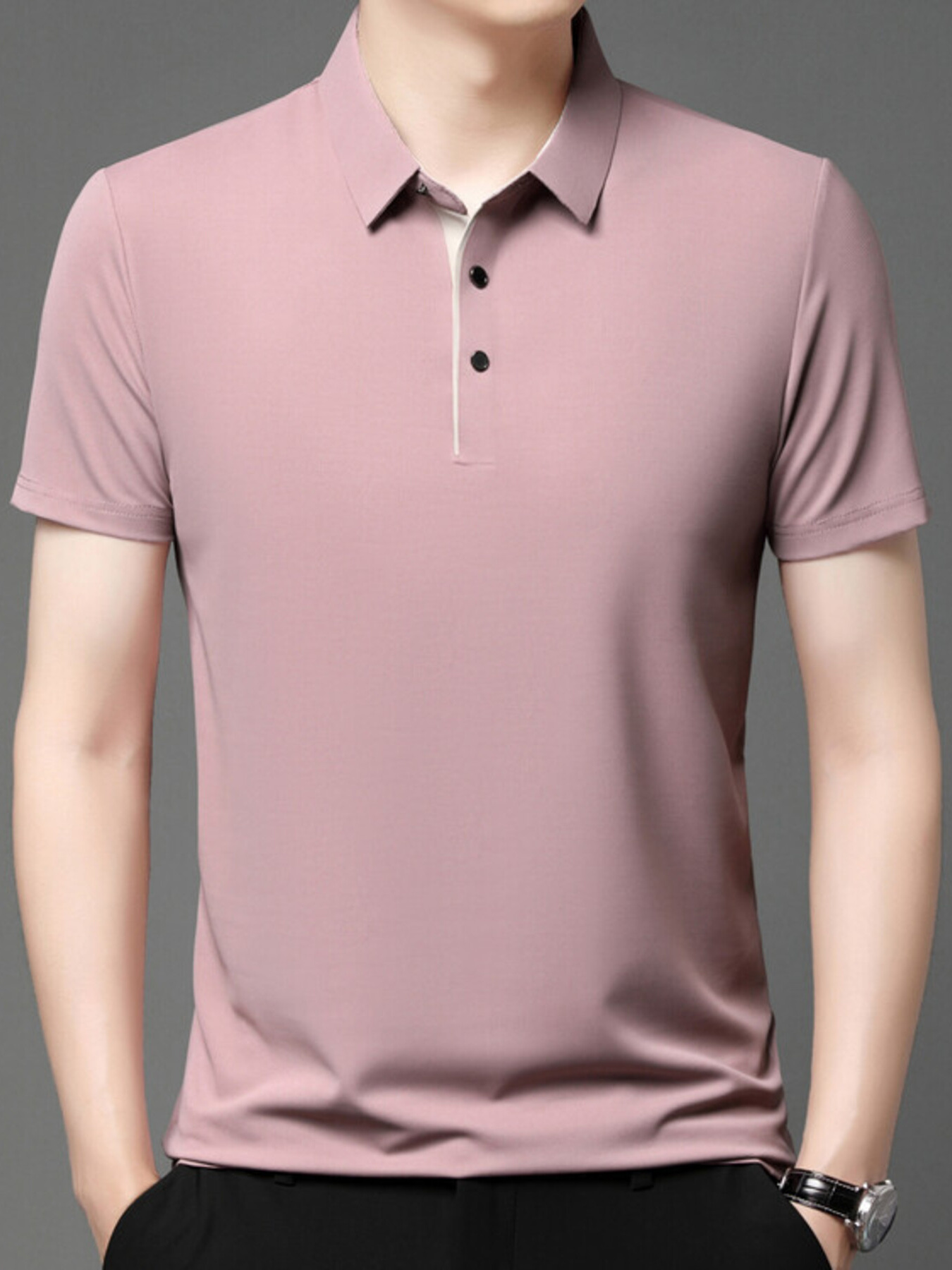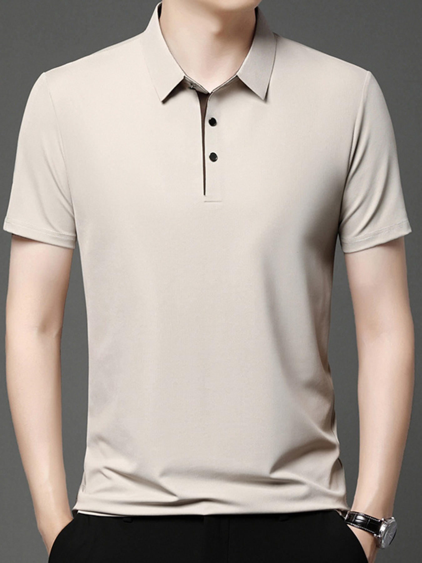 Men's Full Size Button Detail Short Sleeve Polo Plus Size