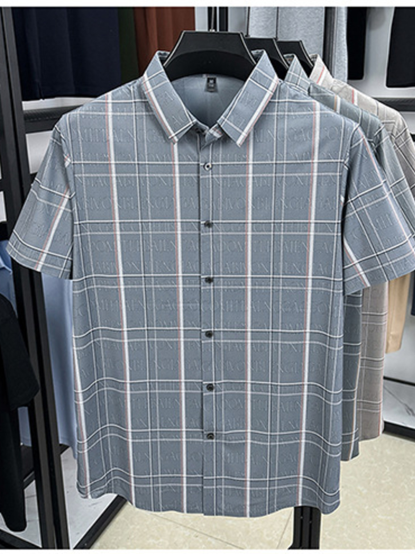 Men's Plus Size Plaid Button Up Short Sleeve Shirt