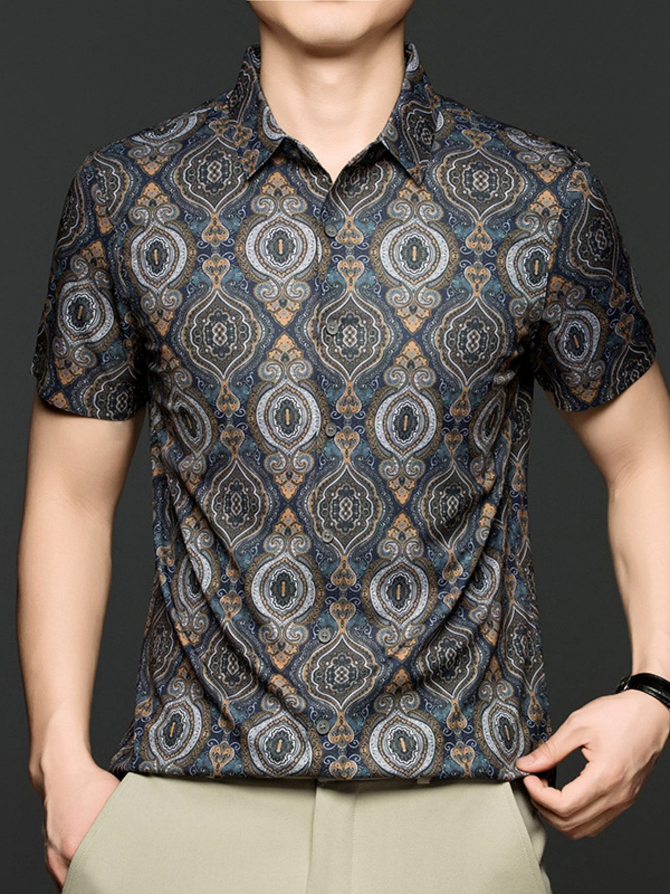 Men's Plus Size Short Sleeve Button-Up Casual Shirt