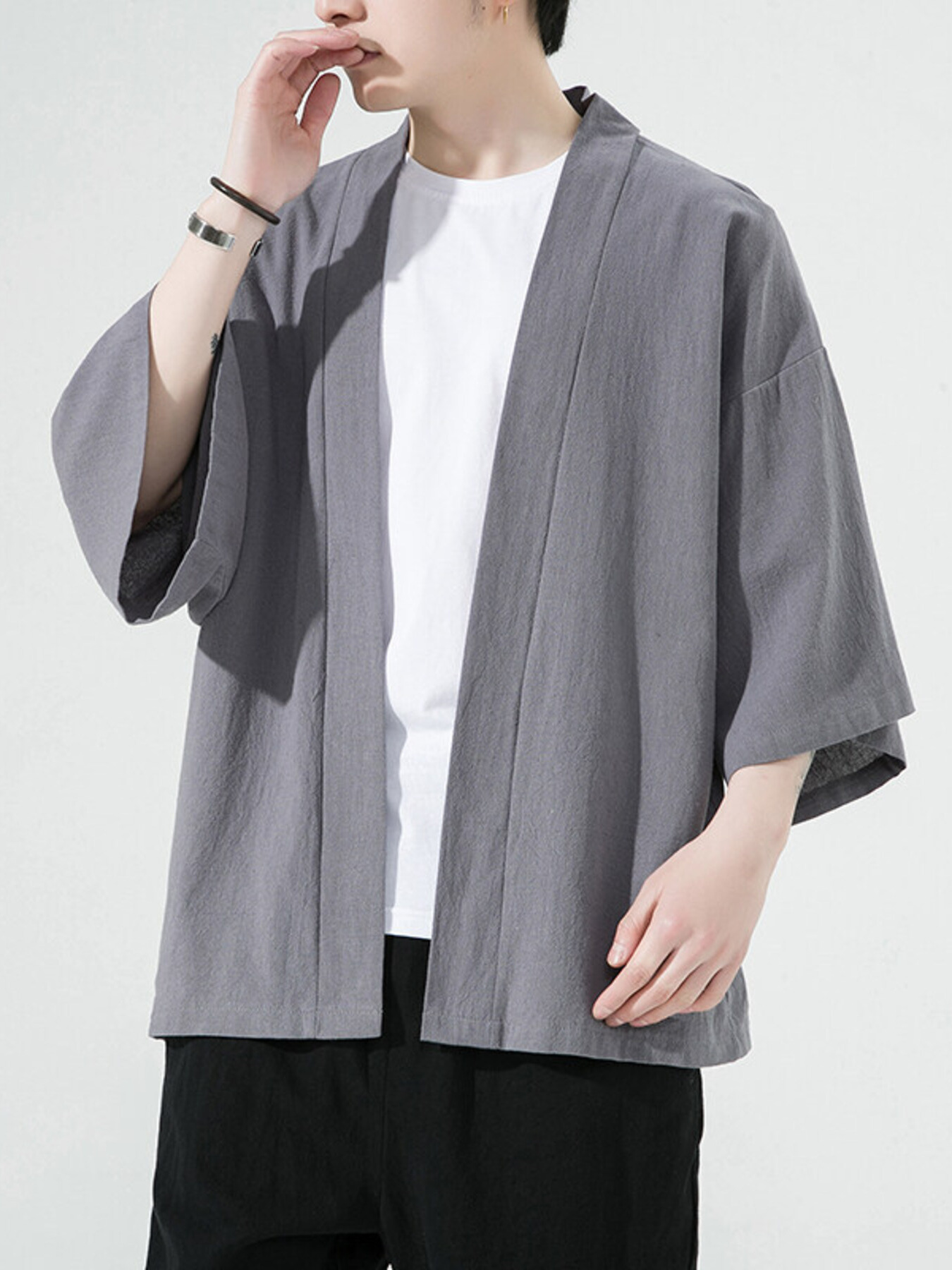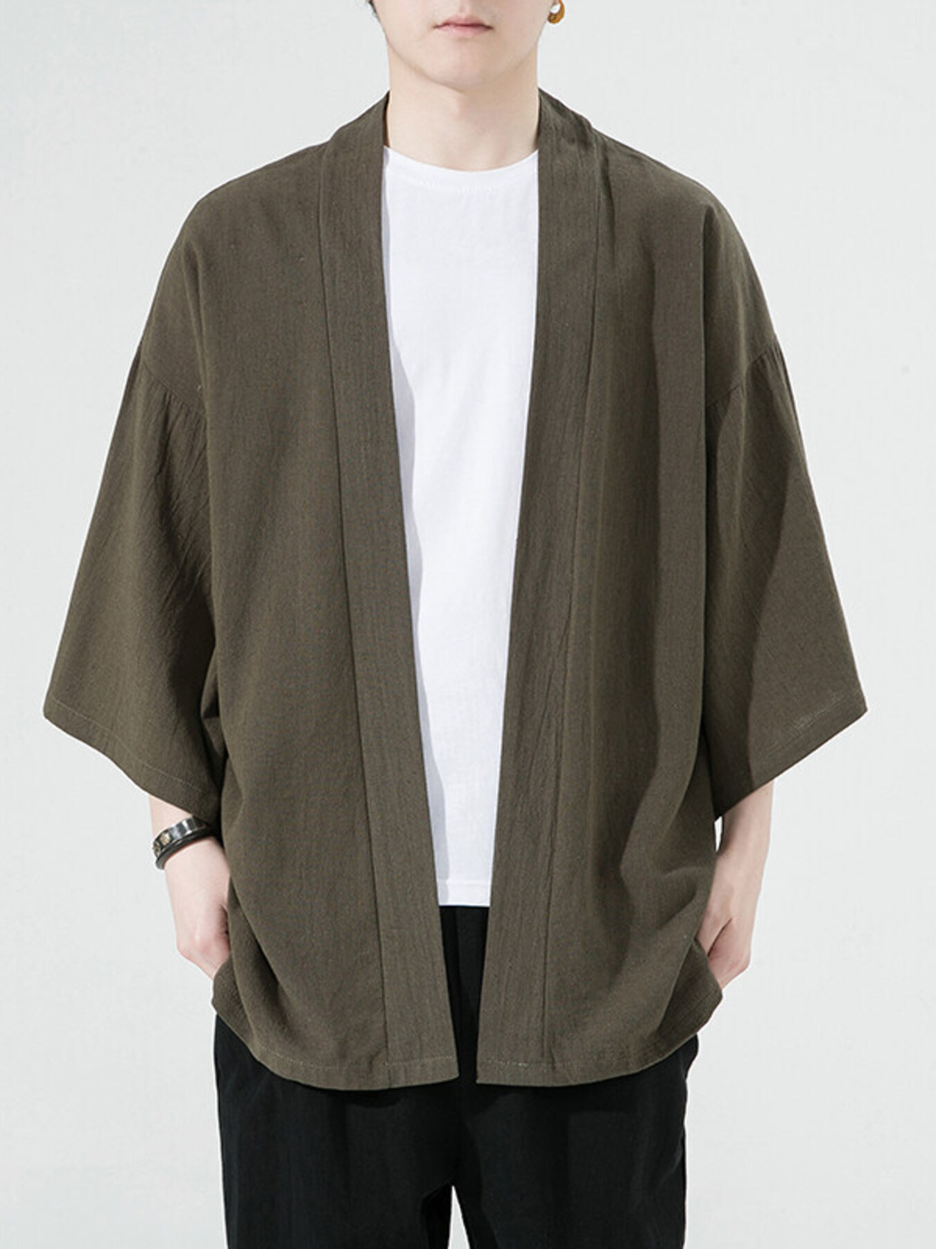 Men's Plus Size Open Front 3/4 Sleeve Cover Up